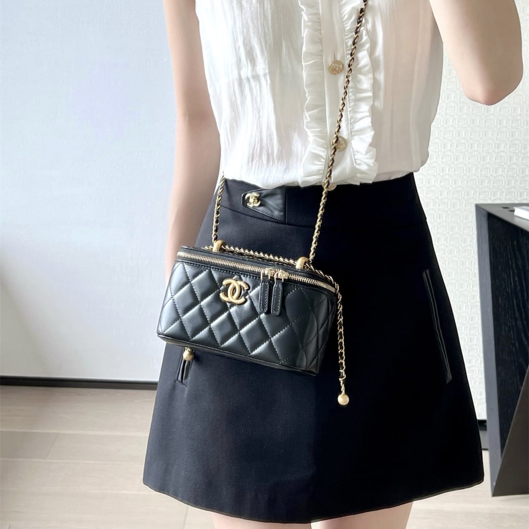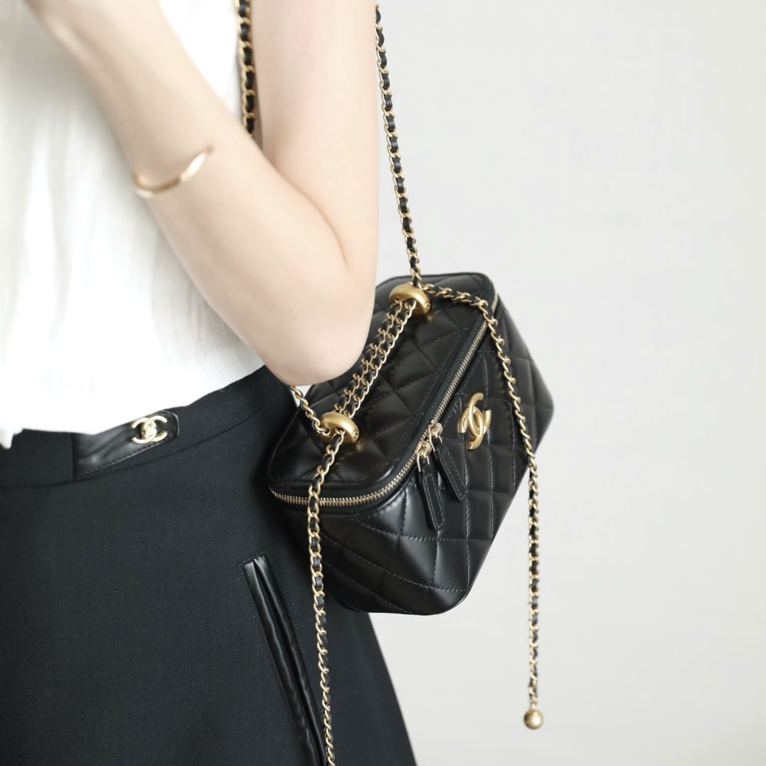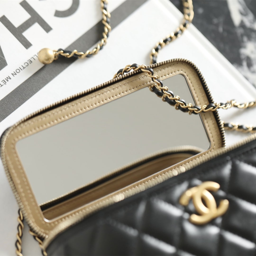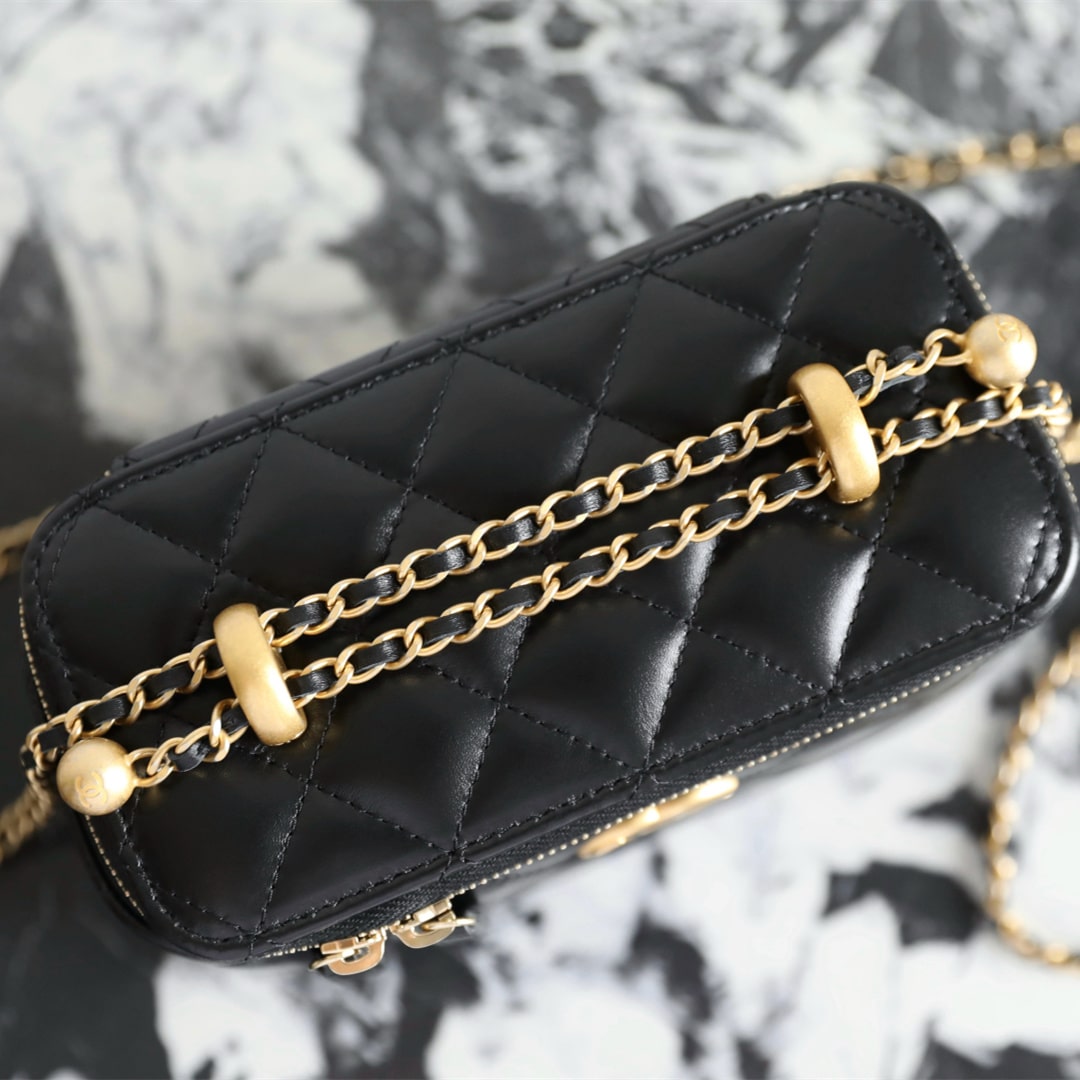 新版到貨高仿Chanel 24C系列雙金珠化妝盒子,金珠吊墜雙鏈設計魅力無敵抽繩式調節設計鏈條長短〰️輕松駕馭各種背法隨心所向.斜挎,單肩,腋下包簡直絕了.