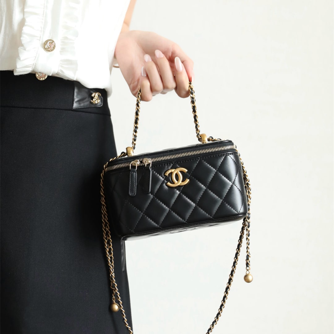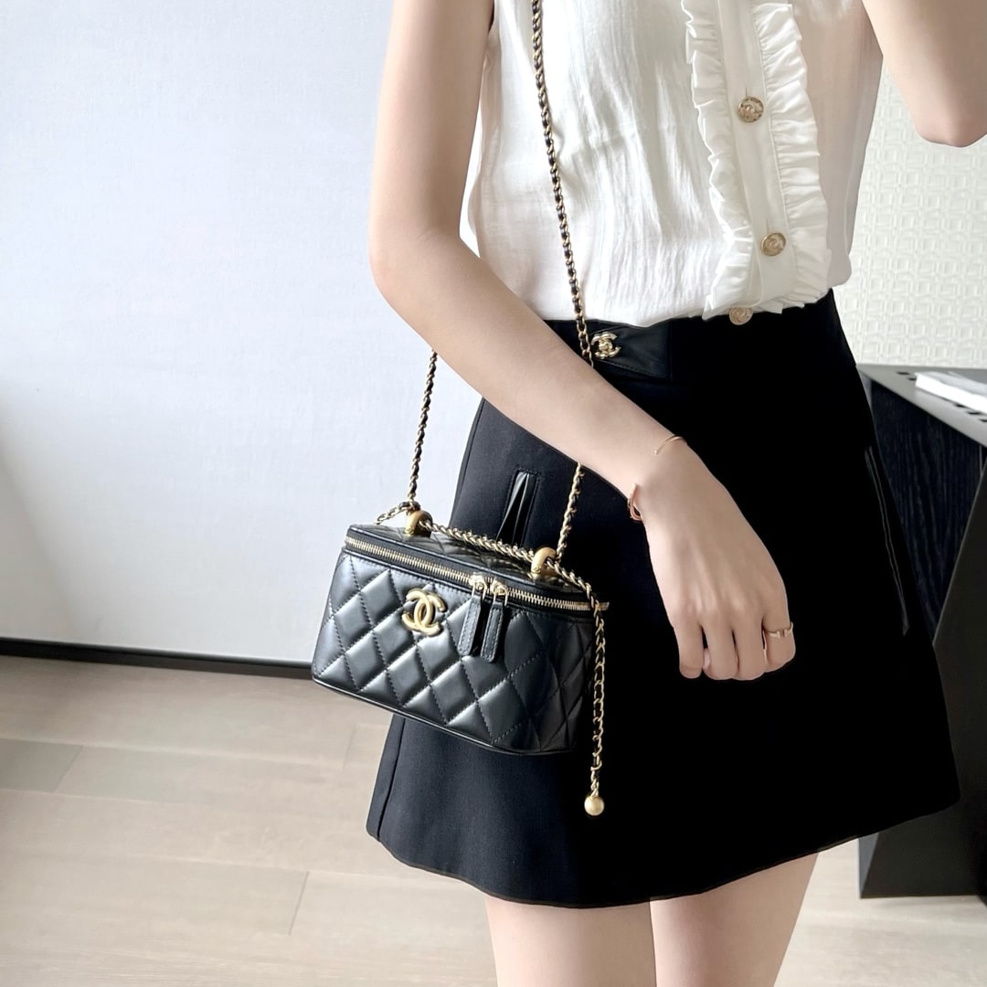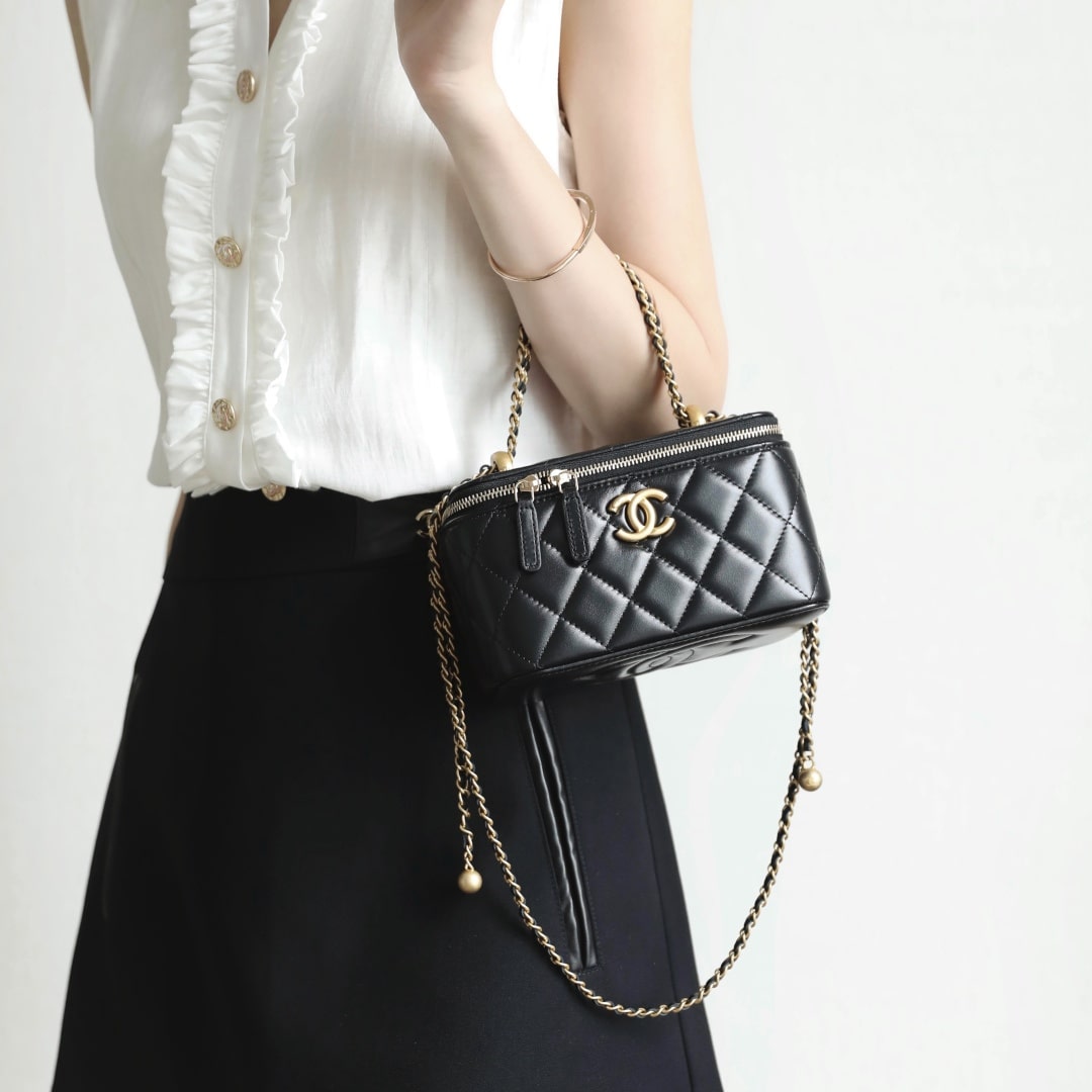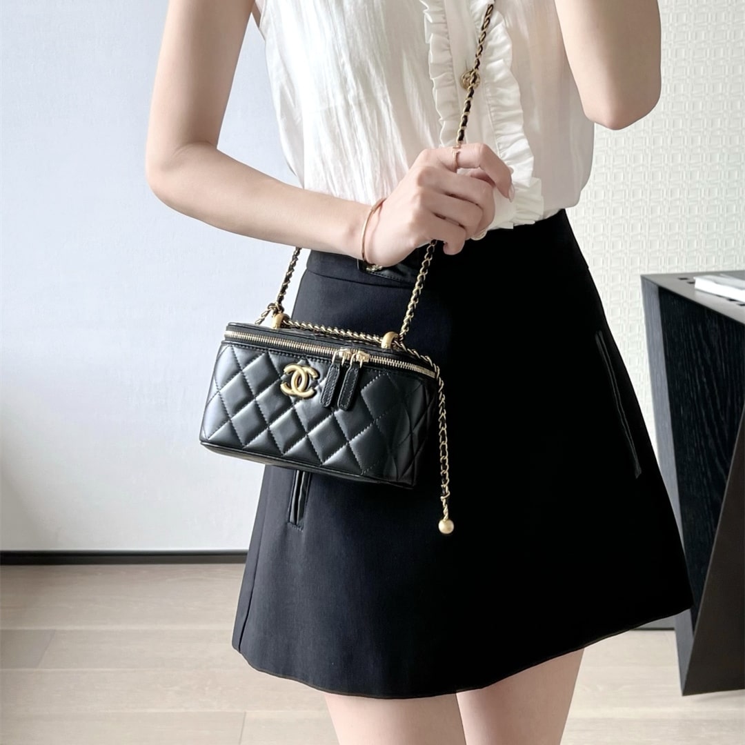 新版到貨高仿Chanel 24C系列雙金珠化妝盒子,金珠吊墜雙鏈設計魅力無敵抽繩式調節設計鏈條長短〰️輕松駕馭各種背法隨心所向.斜挎,單肩,腋下包簡直絕了.