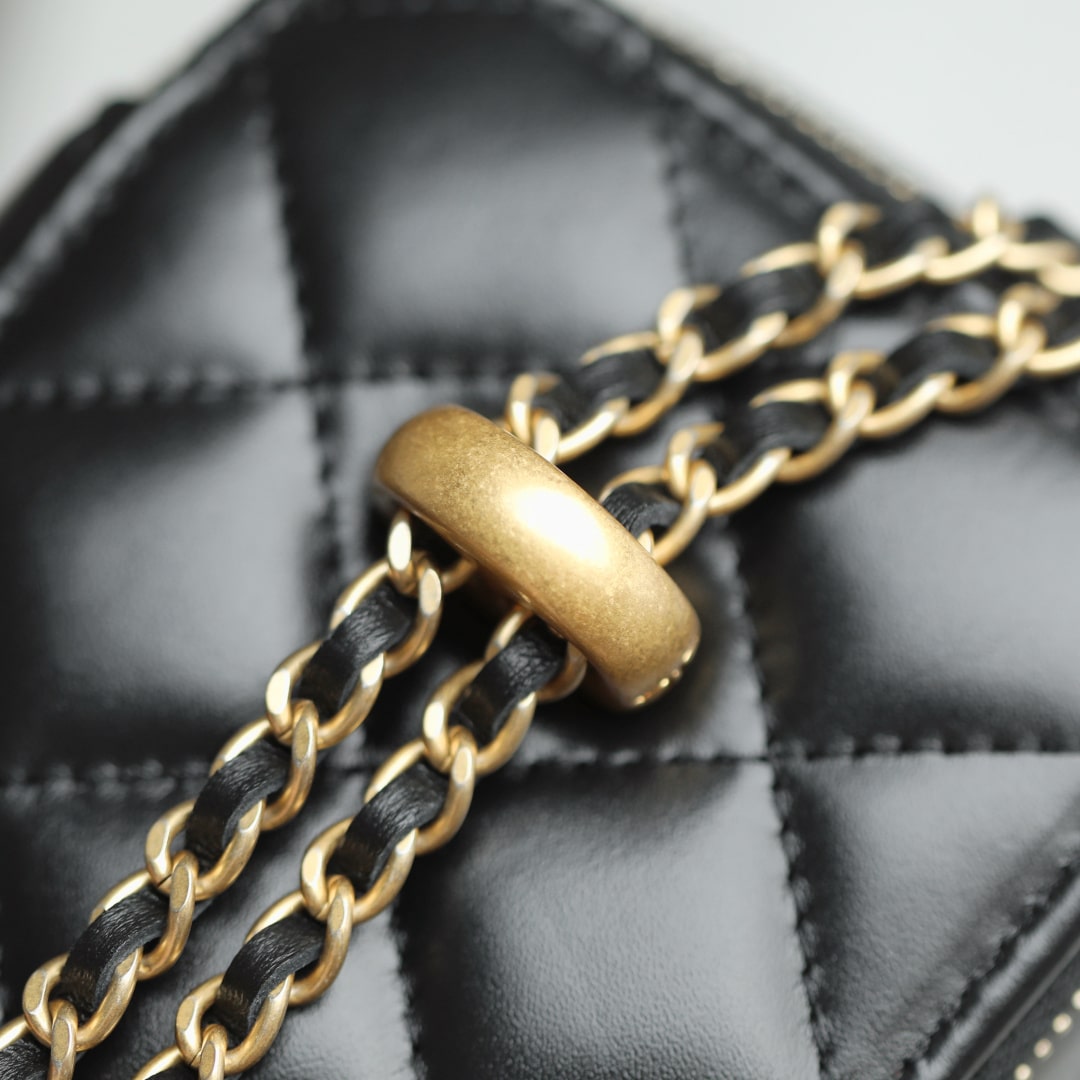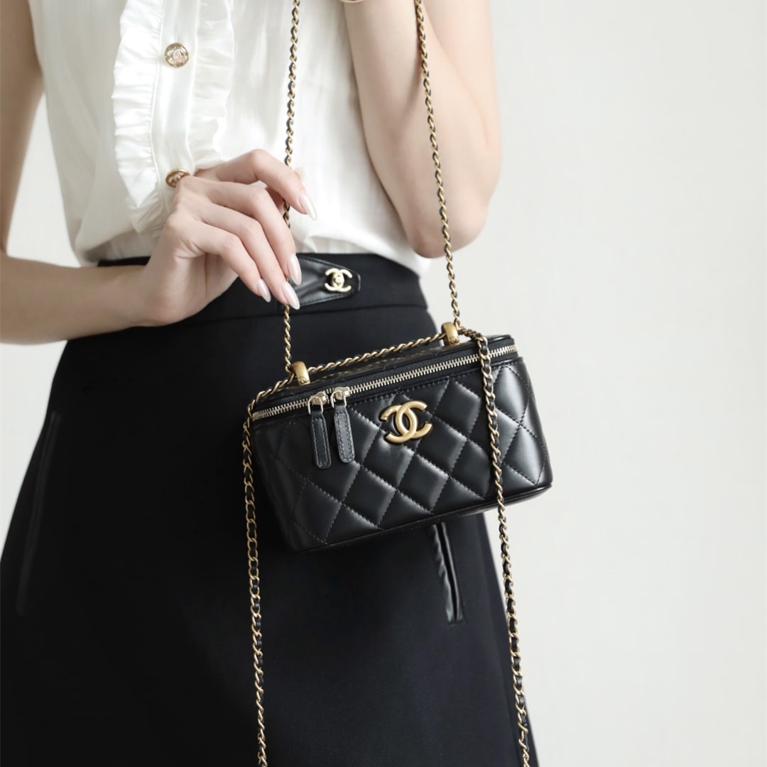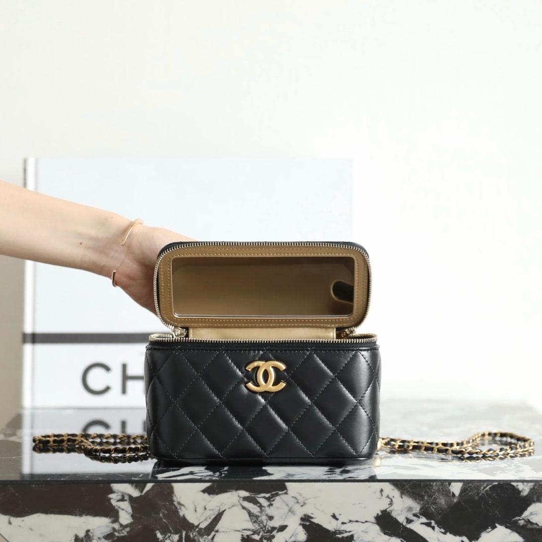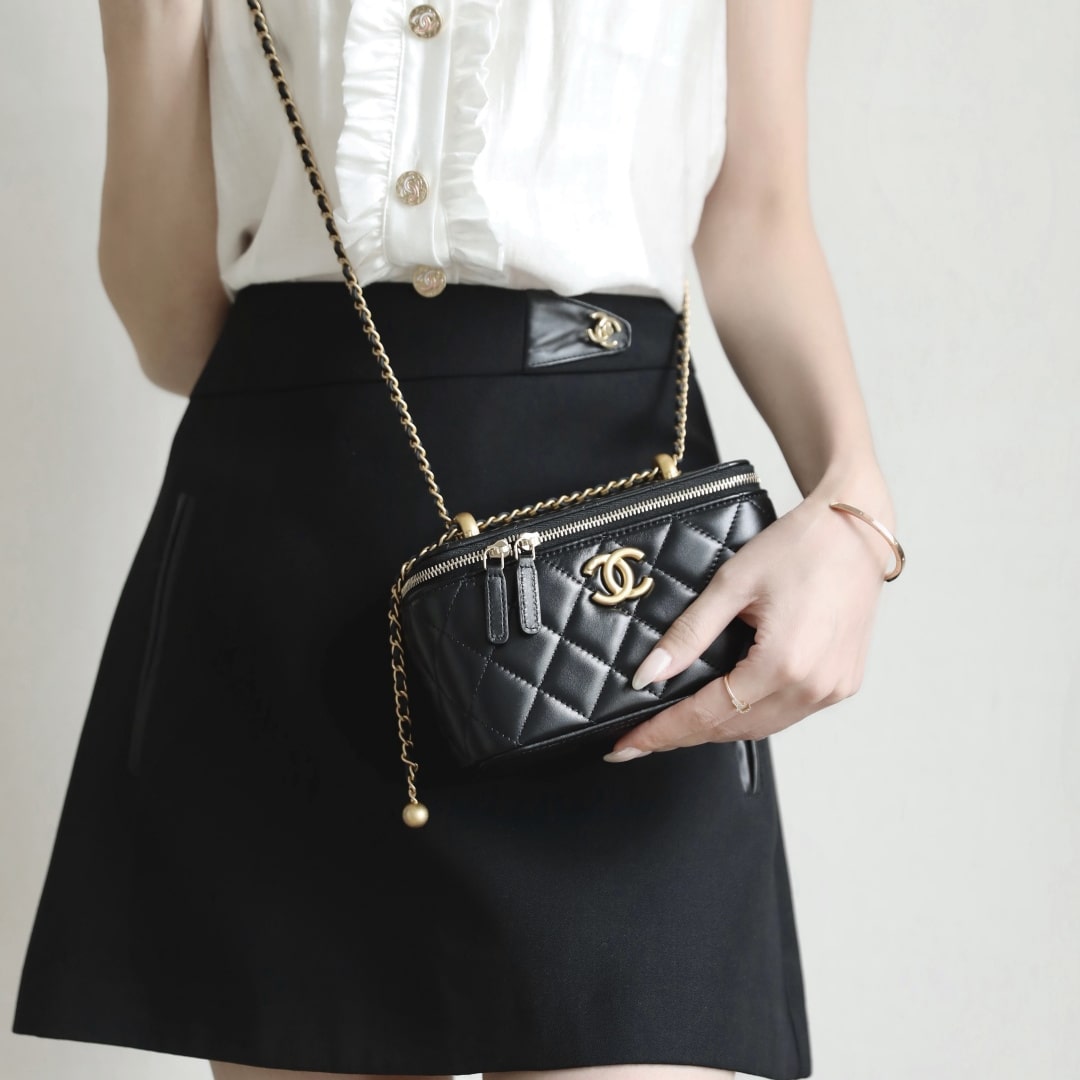 新版到貨高仿Chanel 24C系列雙金珠化妝盒子,金珠吊墜雙鏈設計魅力無敵抽繩式調節設計鏈條長短〰️輕松駕馭各種背法隨心所向.斜挎,單肩,腋下包簡直絕了.