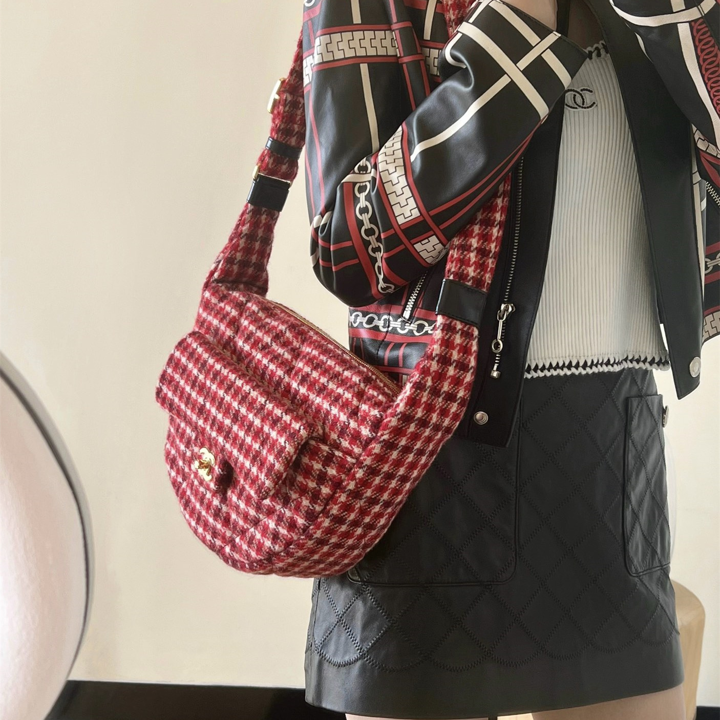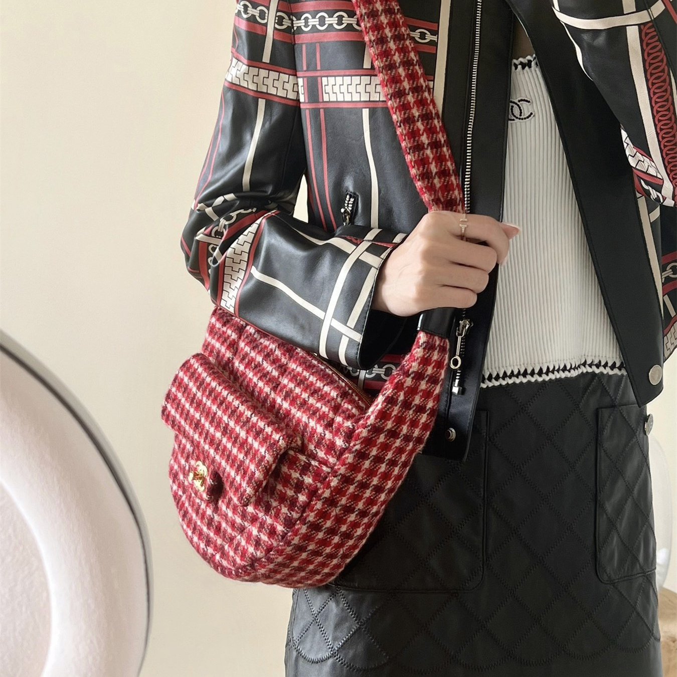 高仿Chanel*24N系列AS5052/Cocomeige Hobo半月包千鳥格免檢版