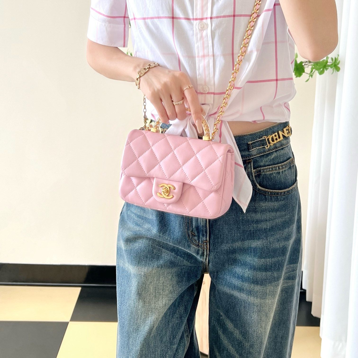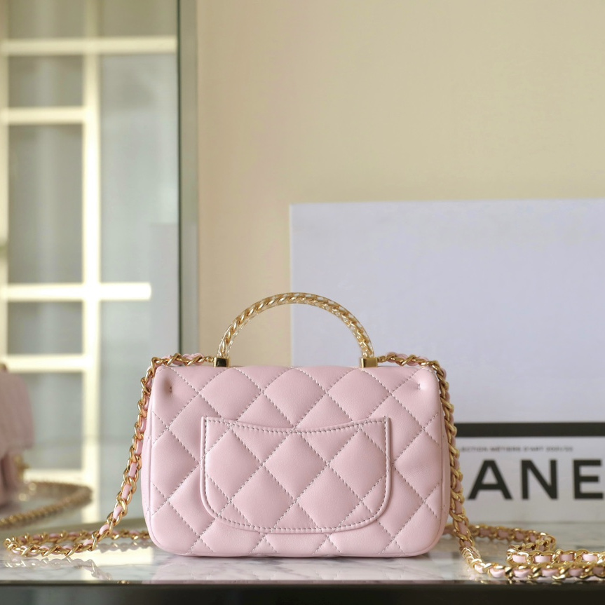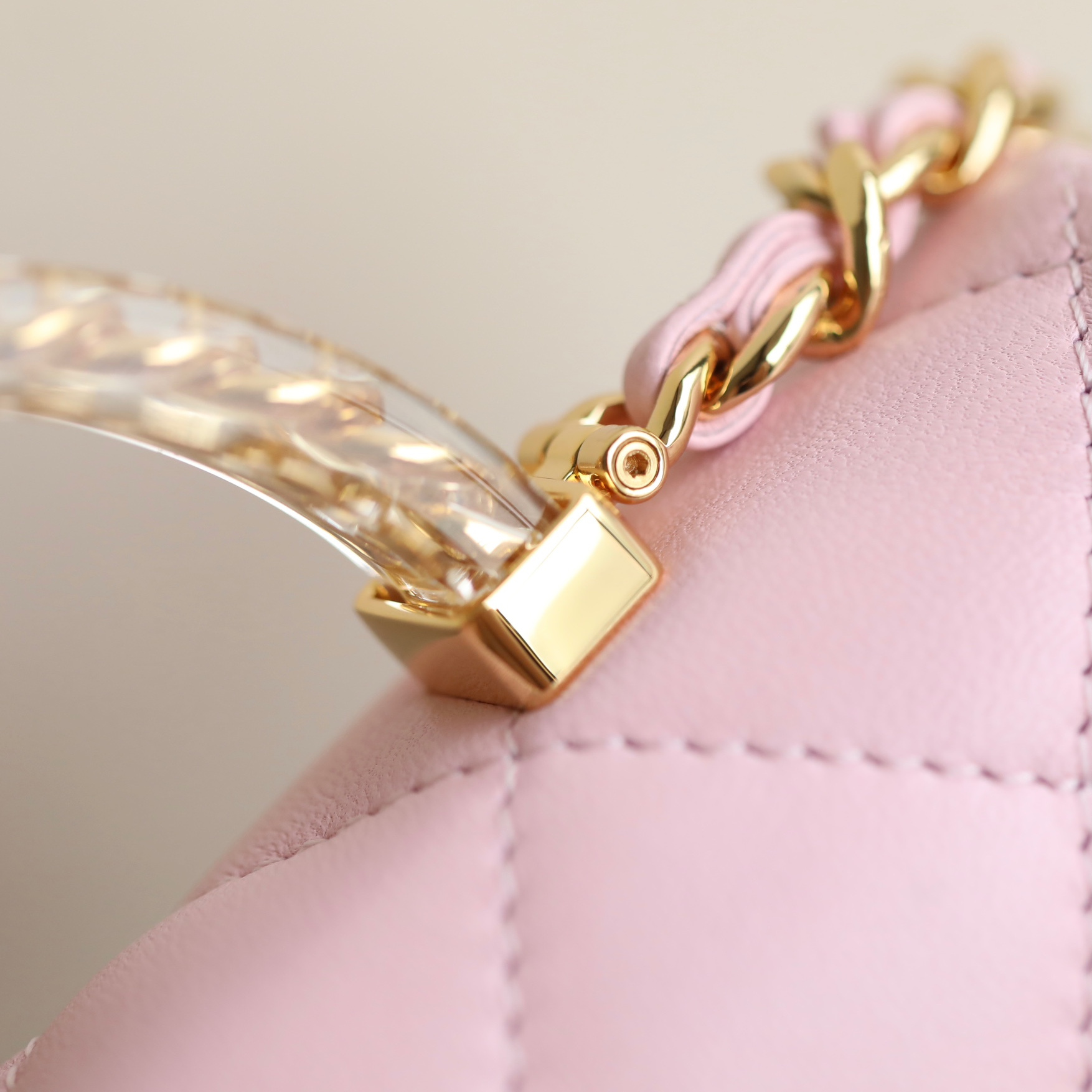 全新發售高仿 春夏繫列單肩包,透明手柄 粉色,全新樹脂透明手柄 口蓋包 每一季度都有驚喜的被這個小心機手柄美到了水晶透明內含經典金色鏈子〰️優雅高級符合氣質穿搭很絕配❕