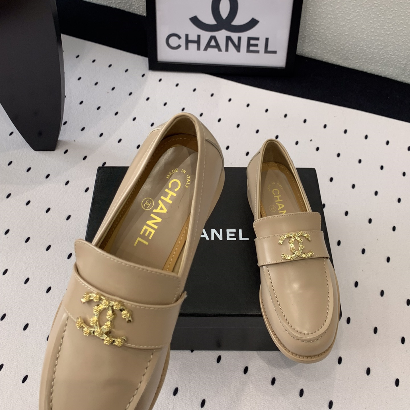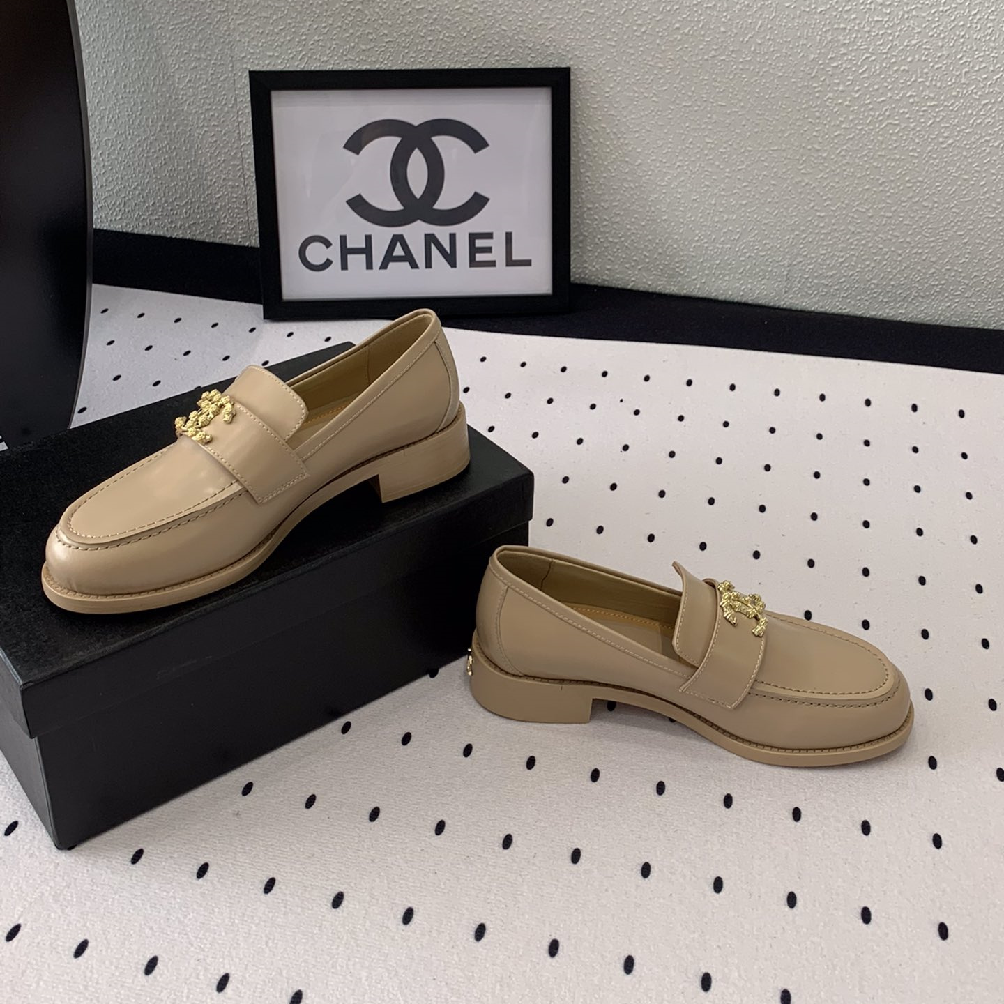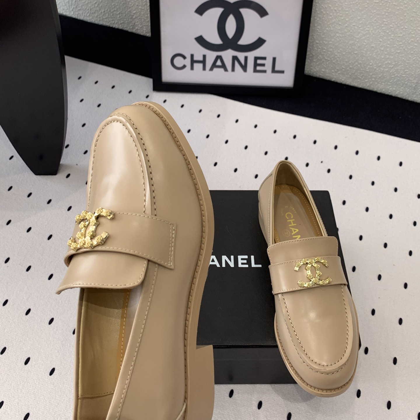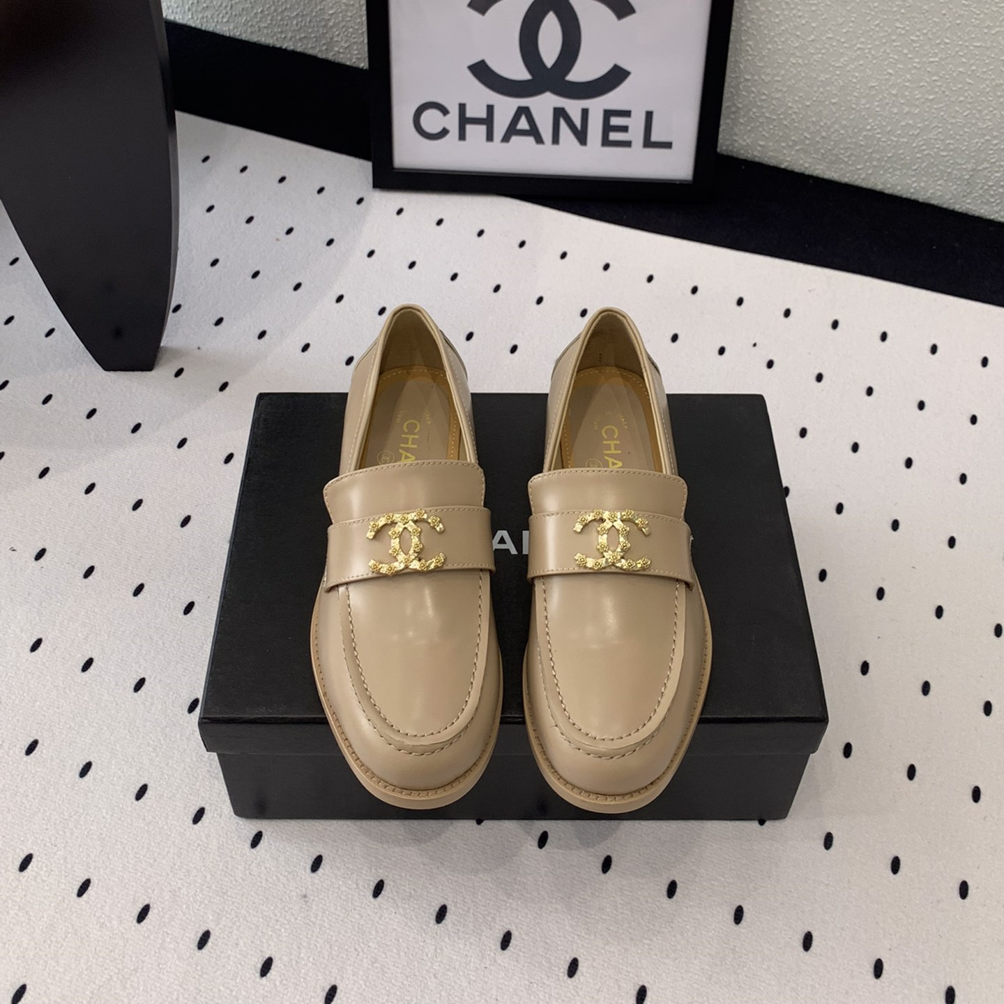 高仿Chanel*24S系列G45663D牛皮革樂福鞋沙色3CM免檢版