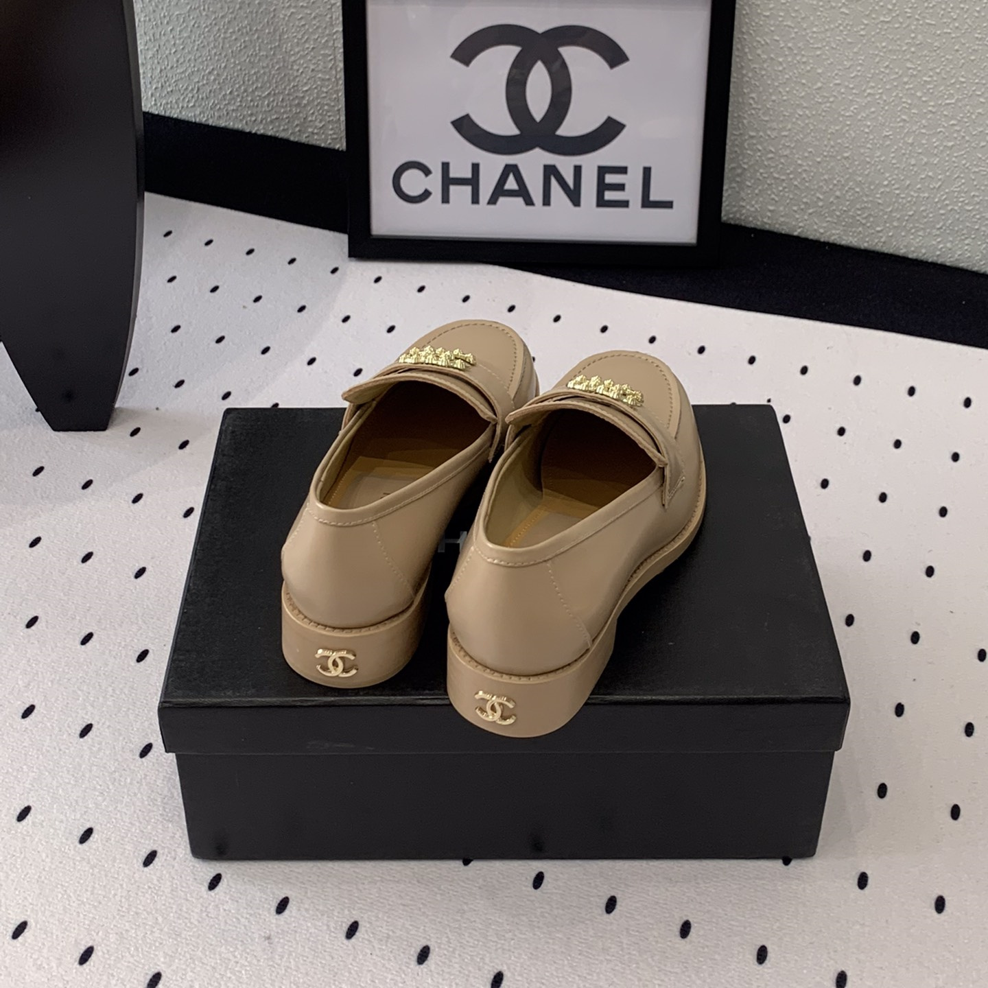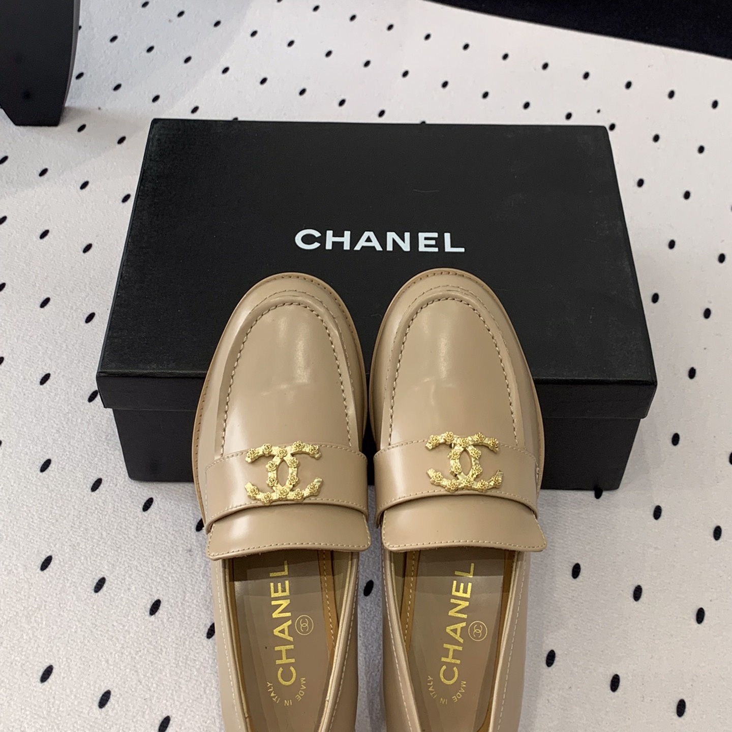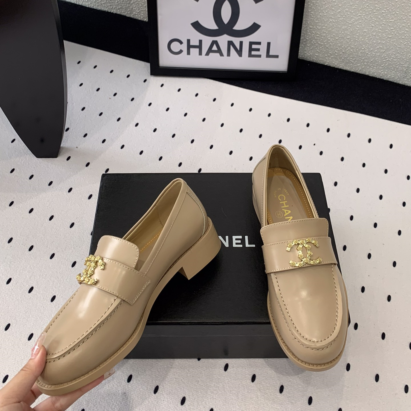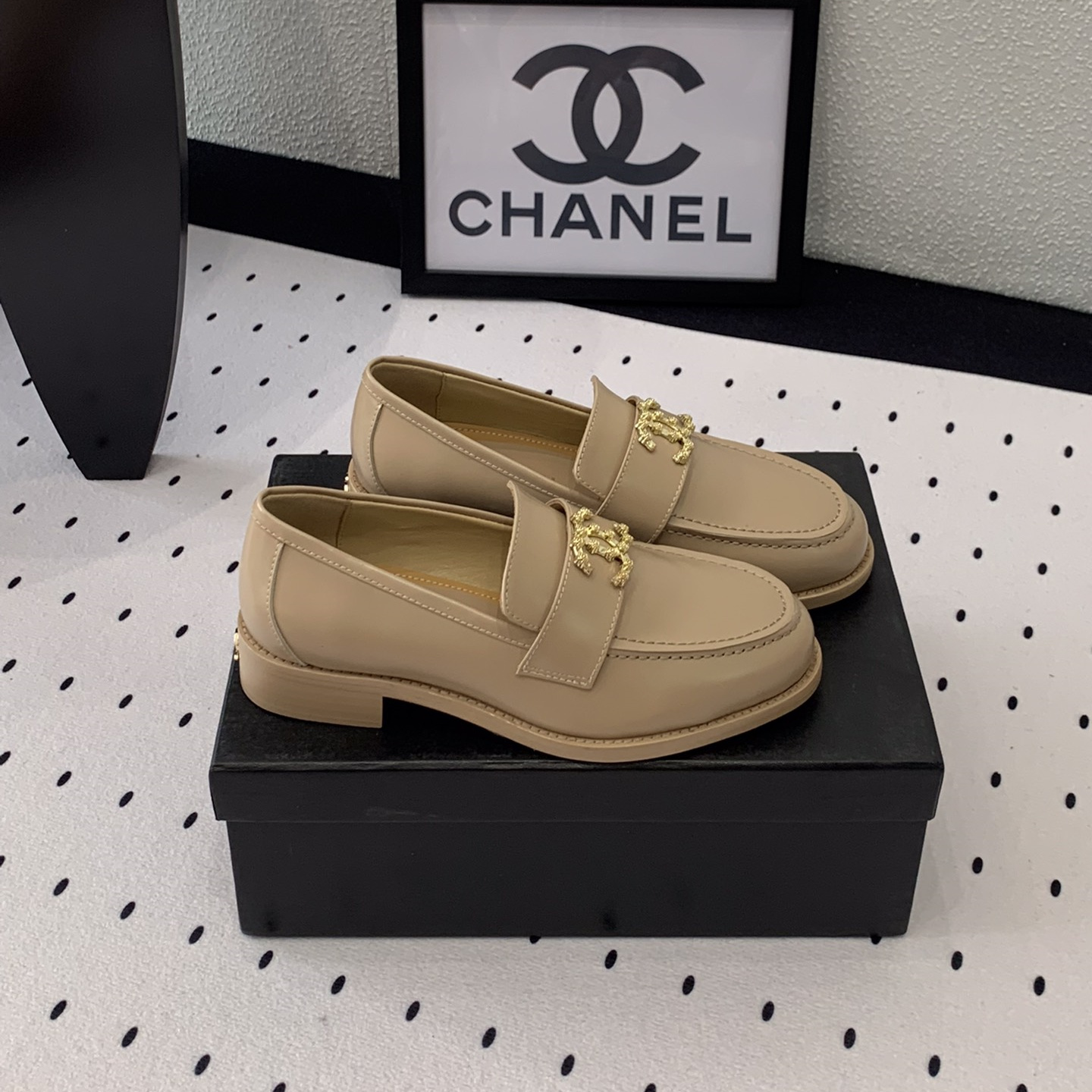 高仿Chanel*24S系列G45663D牛皮革樂福鞋沙色3CM免檢版