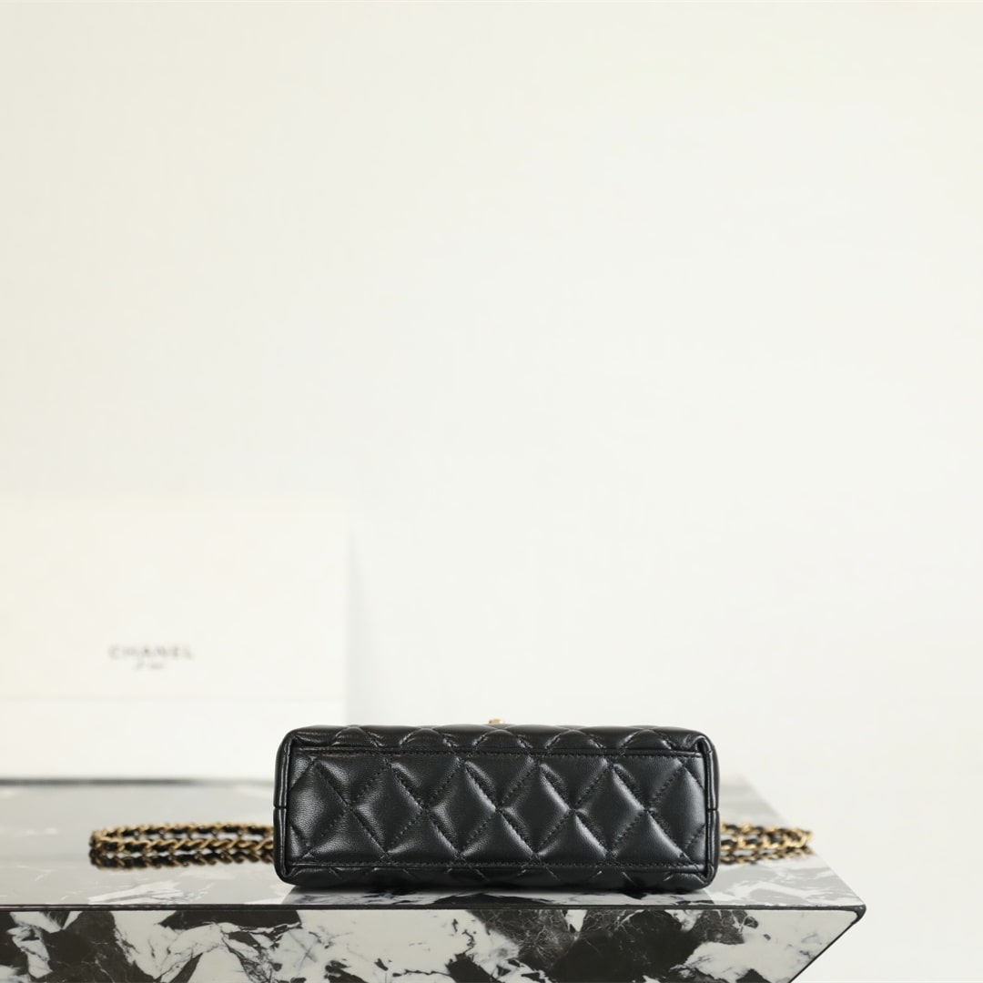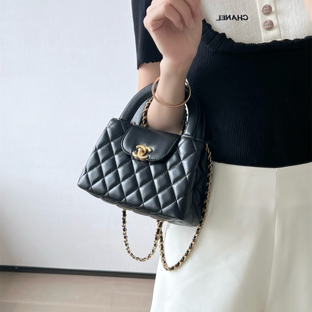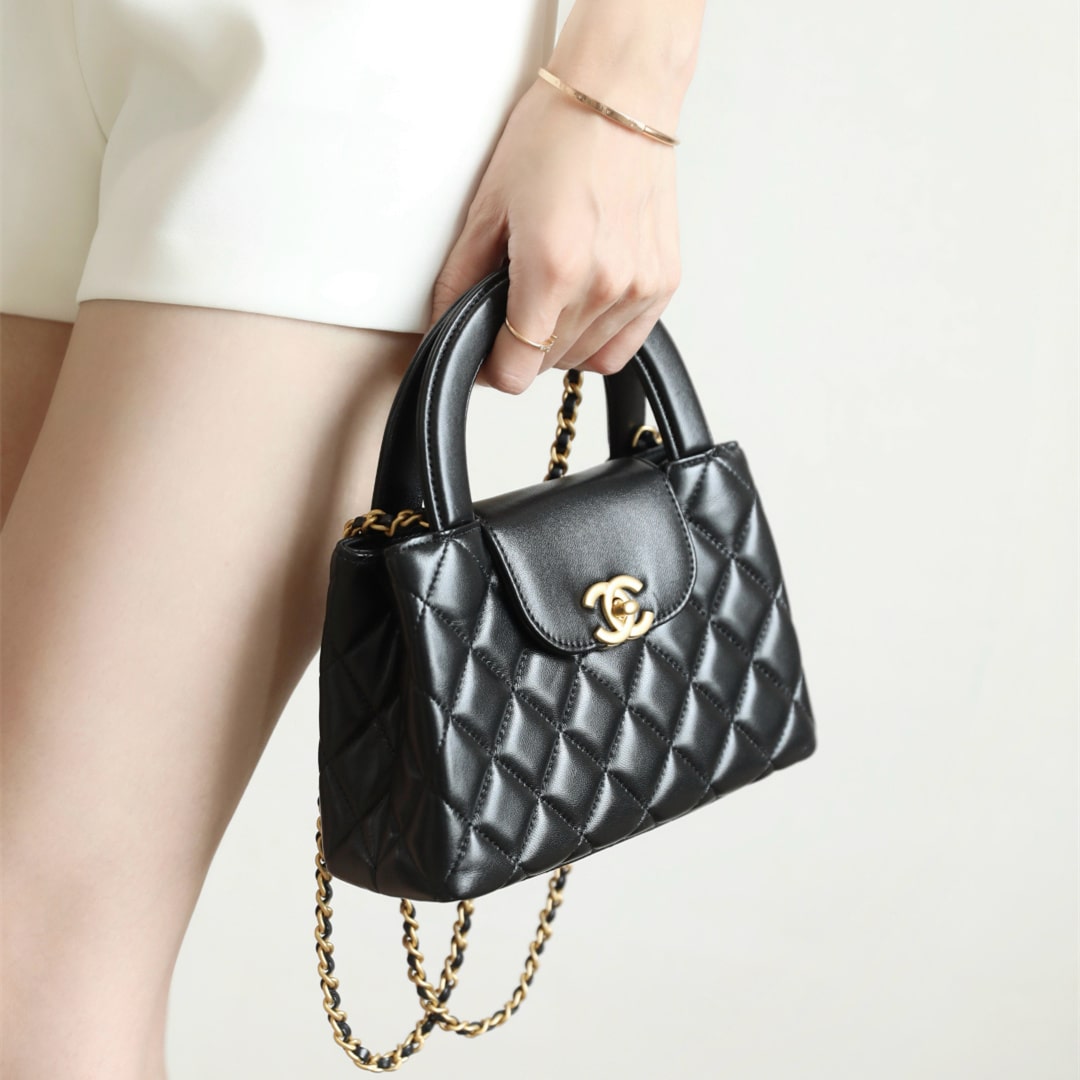 最新發售高仿Chanel*25A系列Kelly小羊皮鏈條手提包Mini款黑色.全網火爆款鏈條 手提包叱咤整個秀場,簡直美絕了.這季更新采用細膩小羊皮質感簡約即復古的小手提質感很舒適又乖又耐看,實在絕對愛不釋手啊!