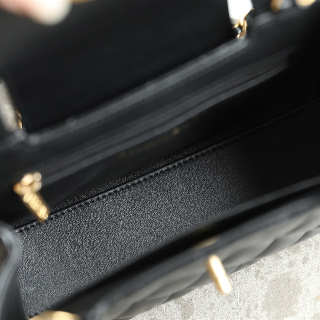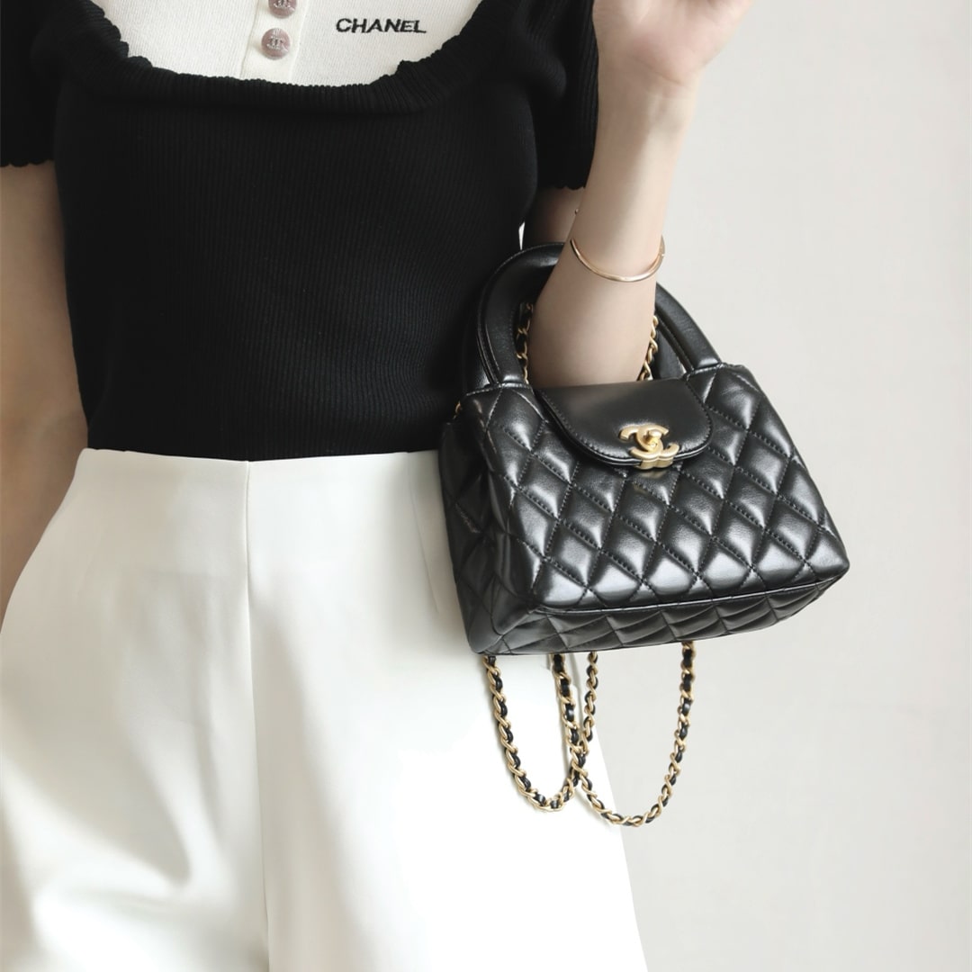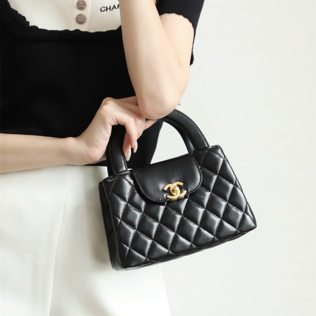 最新發售高仿Chanel*25A系列Kelly小羊皮鏈條手提包Mini款黑色.全網火爆款鏈條 手提包叱咤整個秀場,簡直美絕了.這季更新采用細膩小羊皮質感簡約即復古的小手提質感很舒適又乖又耐看,實在絕對愛不釋手啊!
