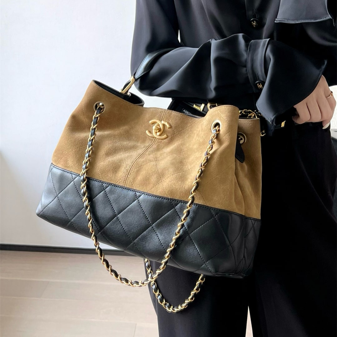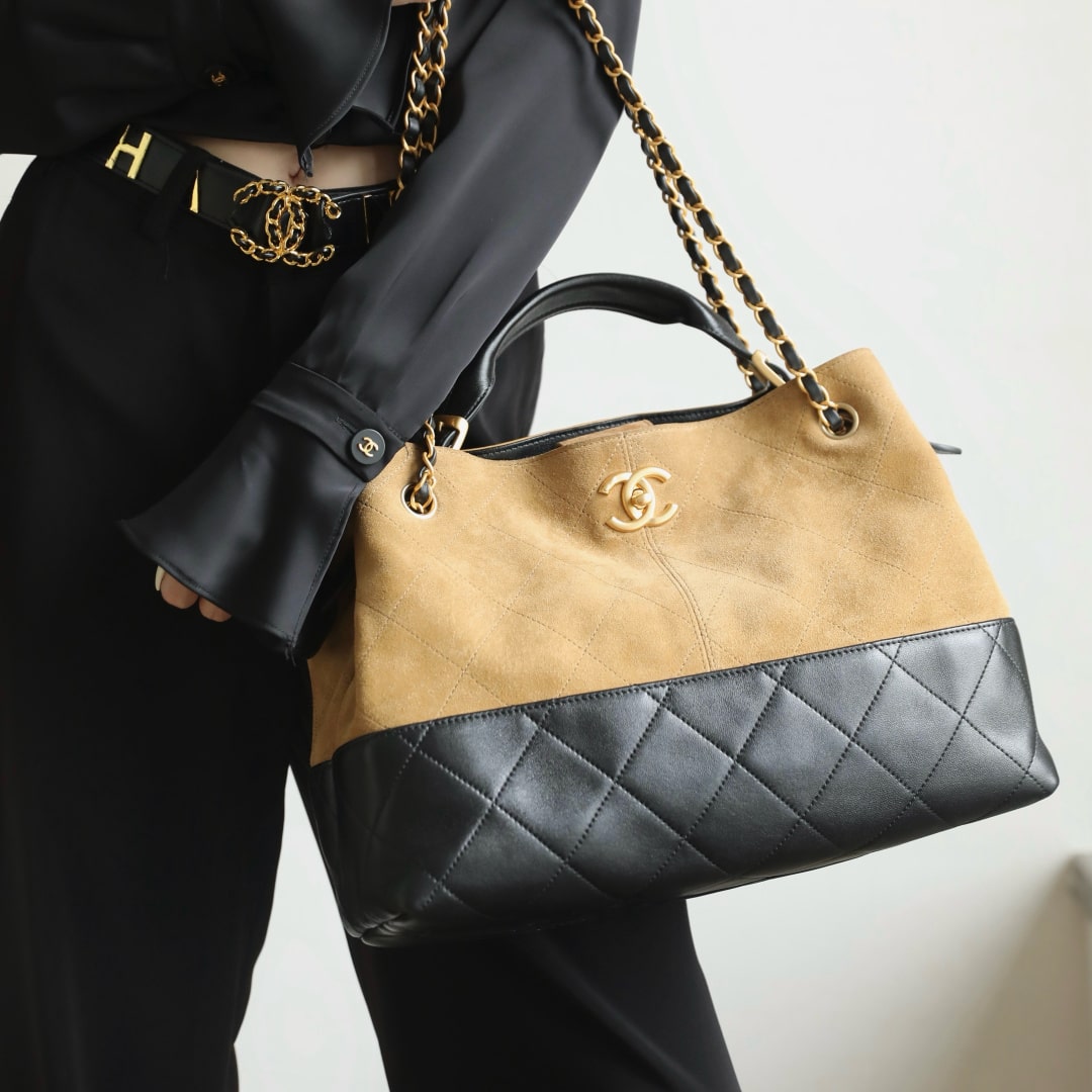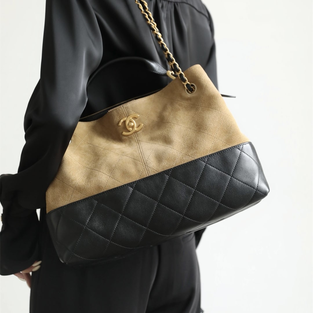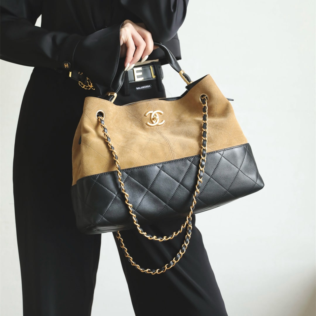 全新到貨高仿Chanel*25A系列最新款橫款購物包麂皮紋棕色專櫃售價60000港幣購入開.爆款上新 麂皮紋 購物袋比經典款更有故事感,復古風跟緊這只麂皮效果和小羊皮質感摸一次就忘不了!這時尚回潮,背出大容量的獨特高級感.
