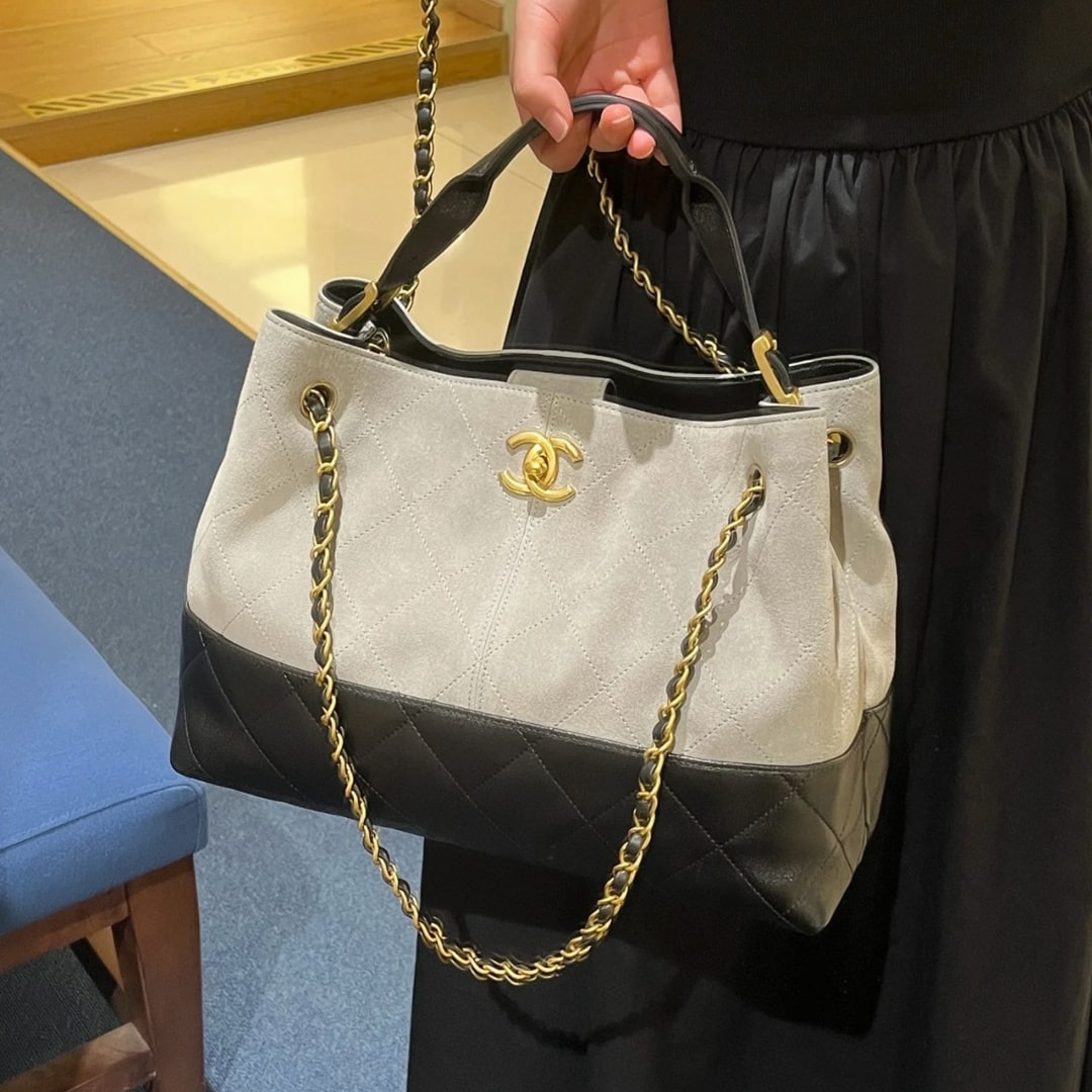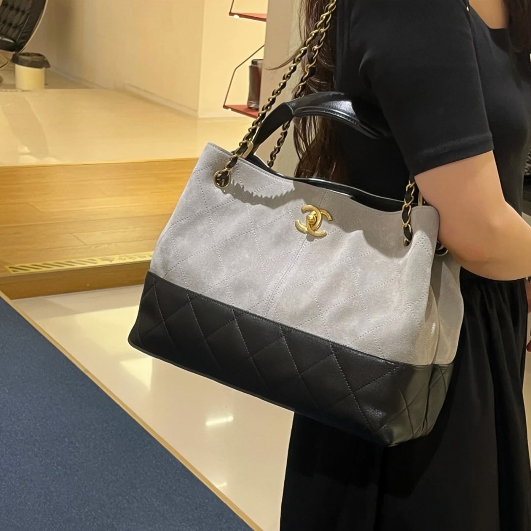 全新到貨高仿Chanel*25A系列最新款橫款購物包麂皮紋棕色專櫃售價60000港幣購入開.爆款上新 麂皮紋 購物袋比經典款更有故事感,復古風跟緊這只麂皮效果和小羊皮質感摸一次就忘不了!這時尚回潮,背出大容量的獨特高級感.
