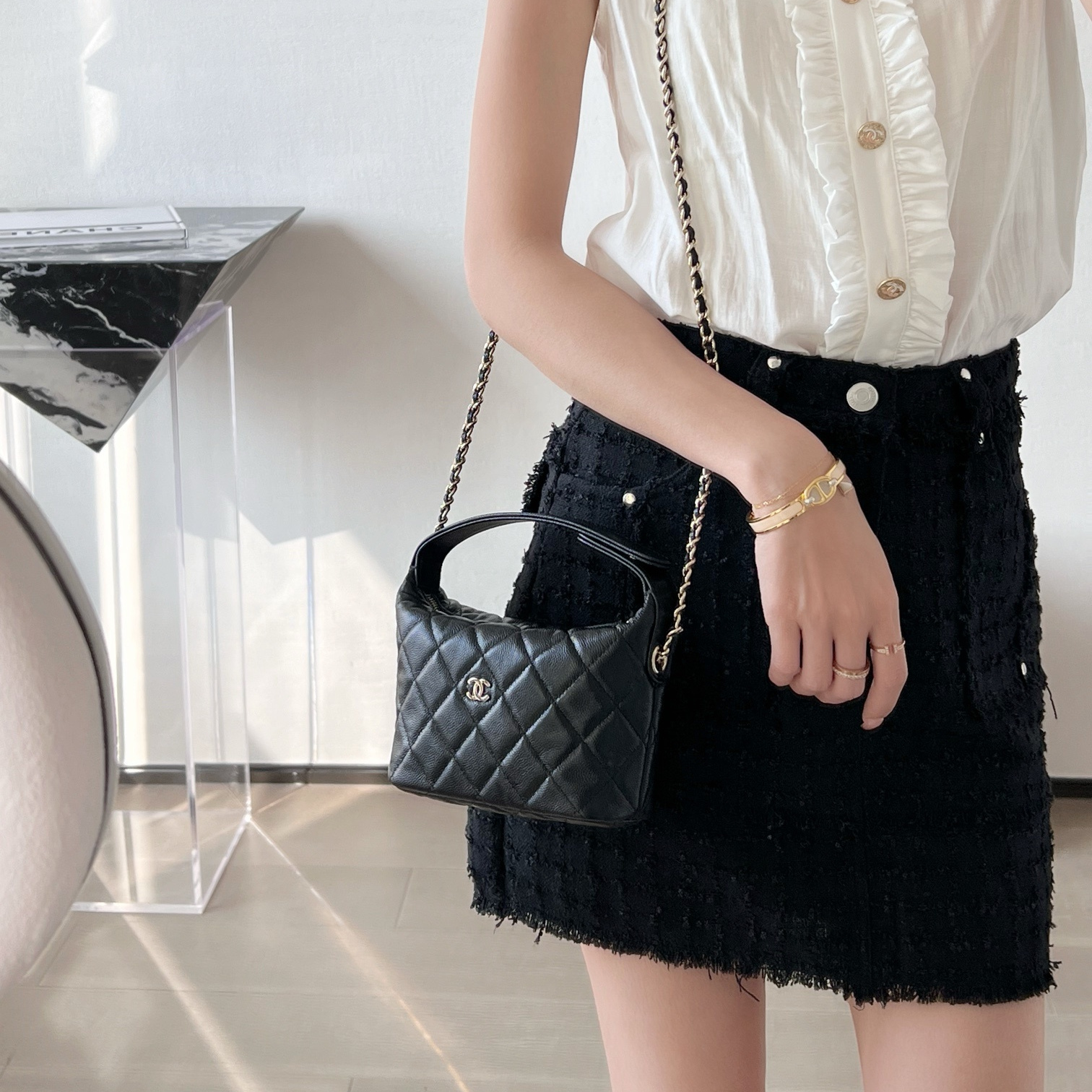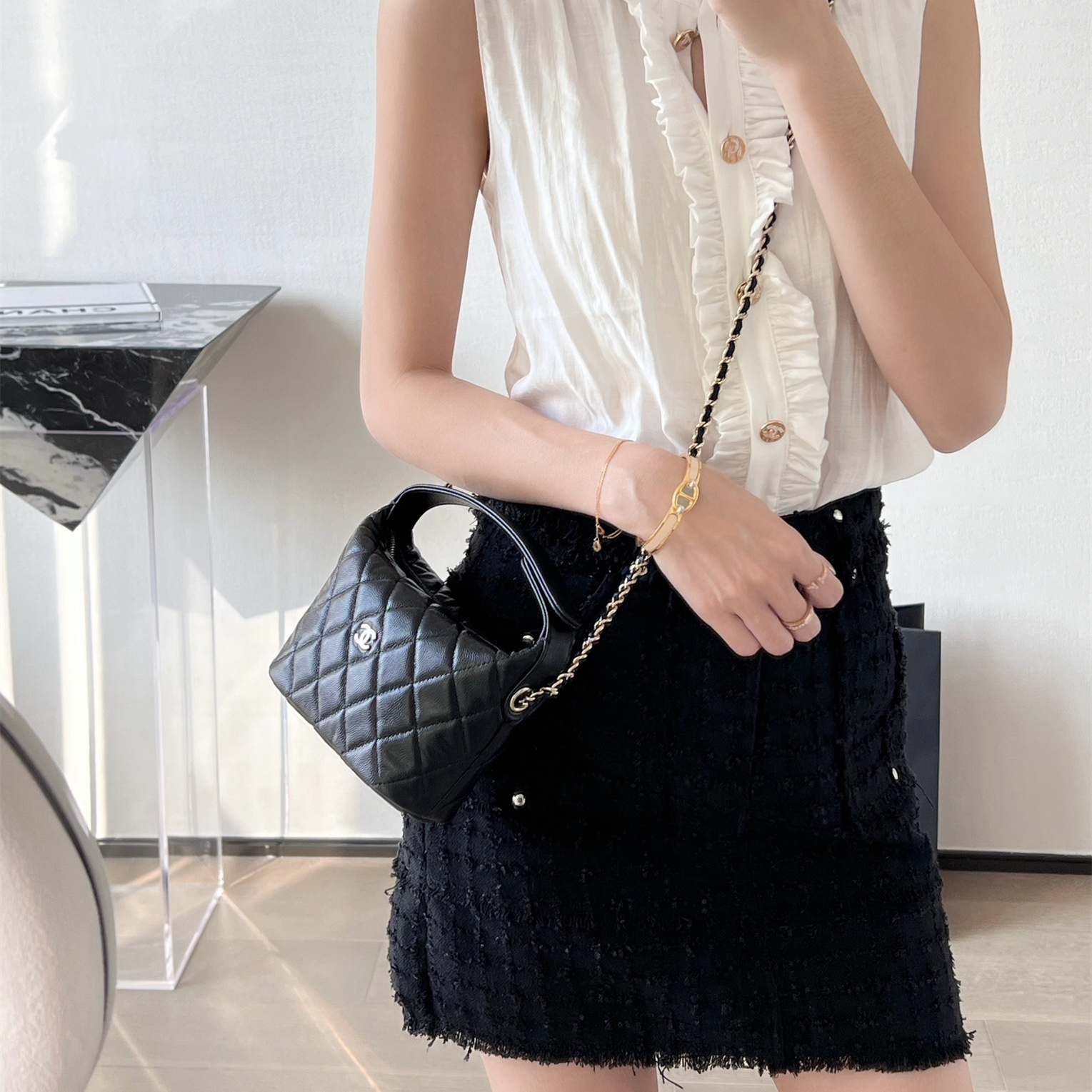 高仿Chanel*25C系列AS4386顆粒面小牛皮飯盒包黑色免檢版