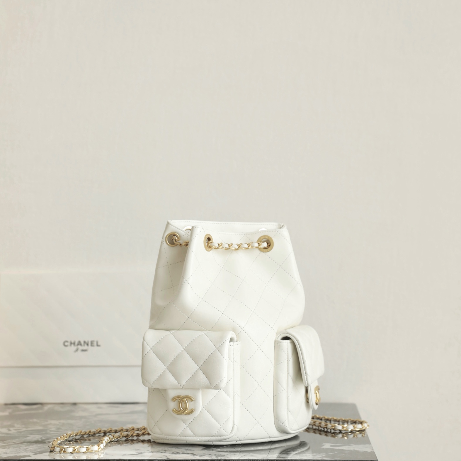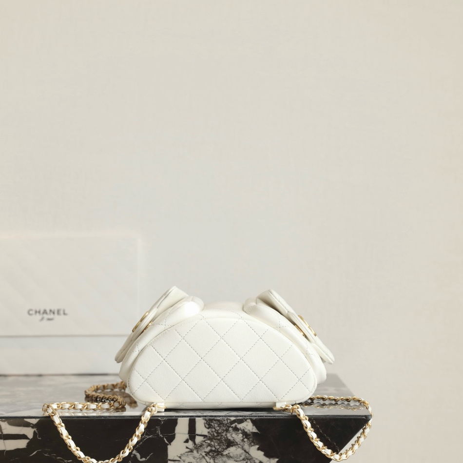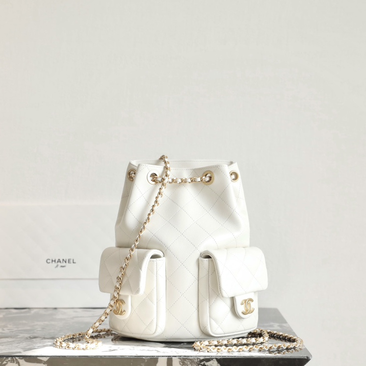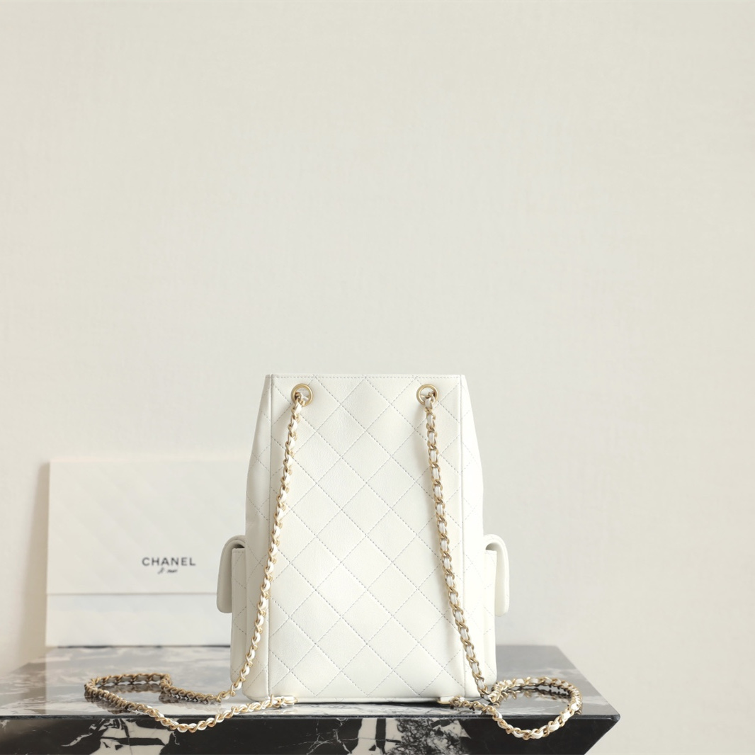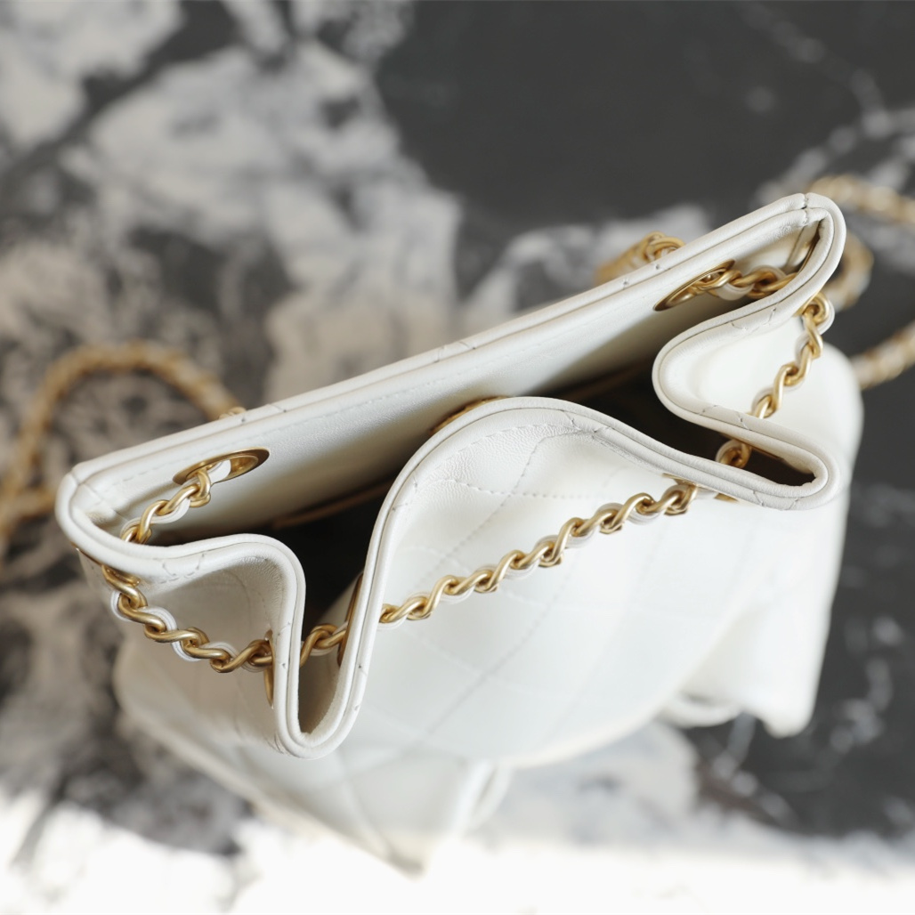 高仿Chanel*25C系列AS5305小羊皮雙肩袋白色免檢版