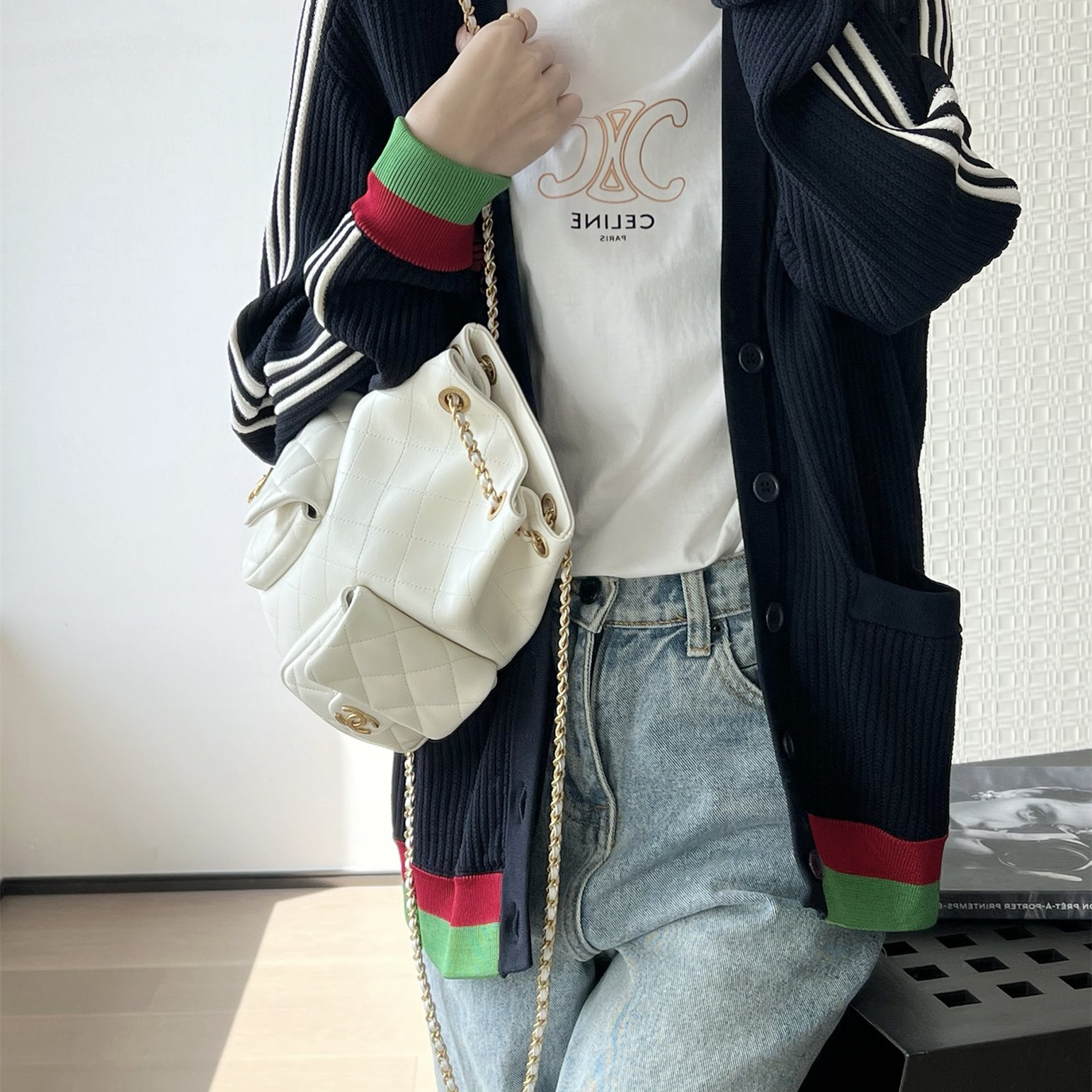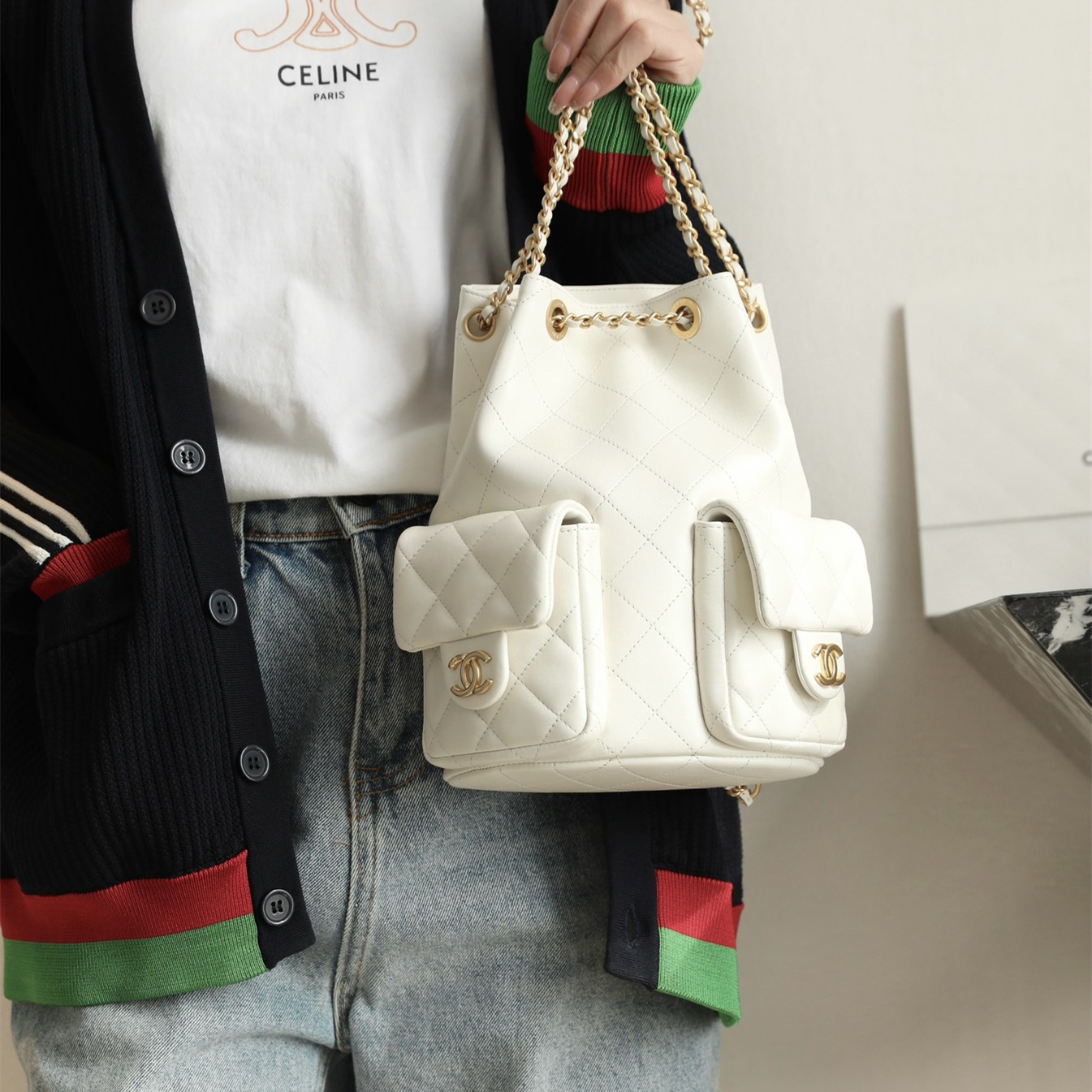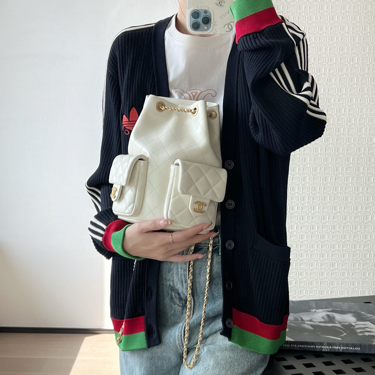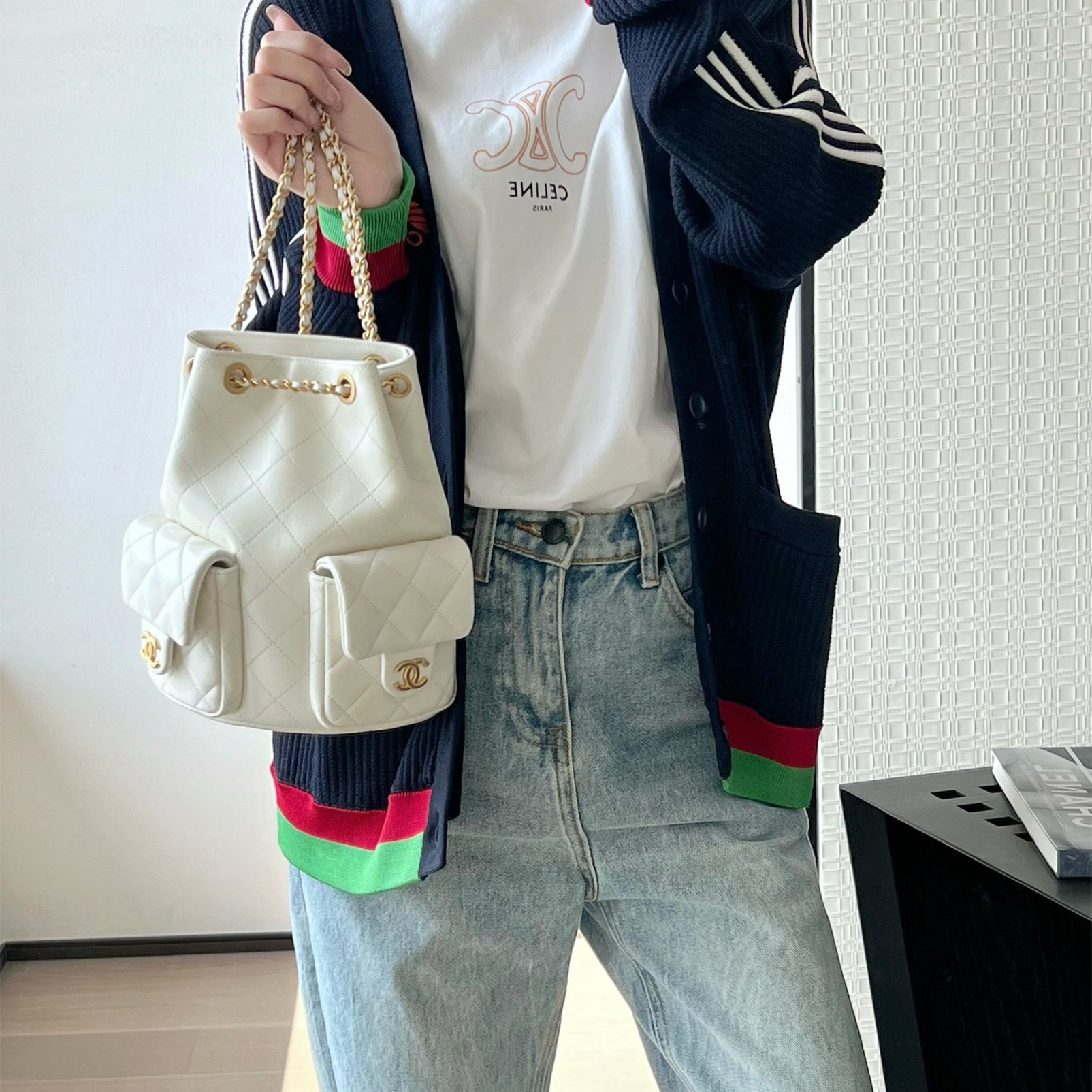 高仿Chanel*25C系列AS5305小羊皮雙肩袋白色免檢版