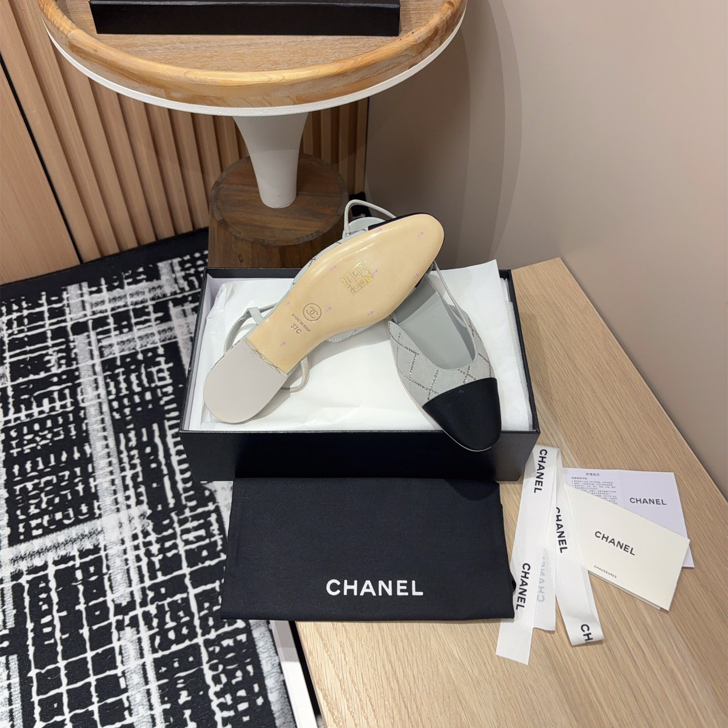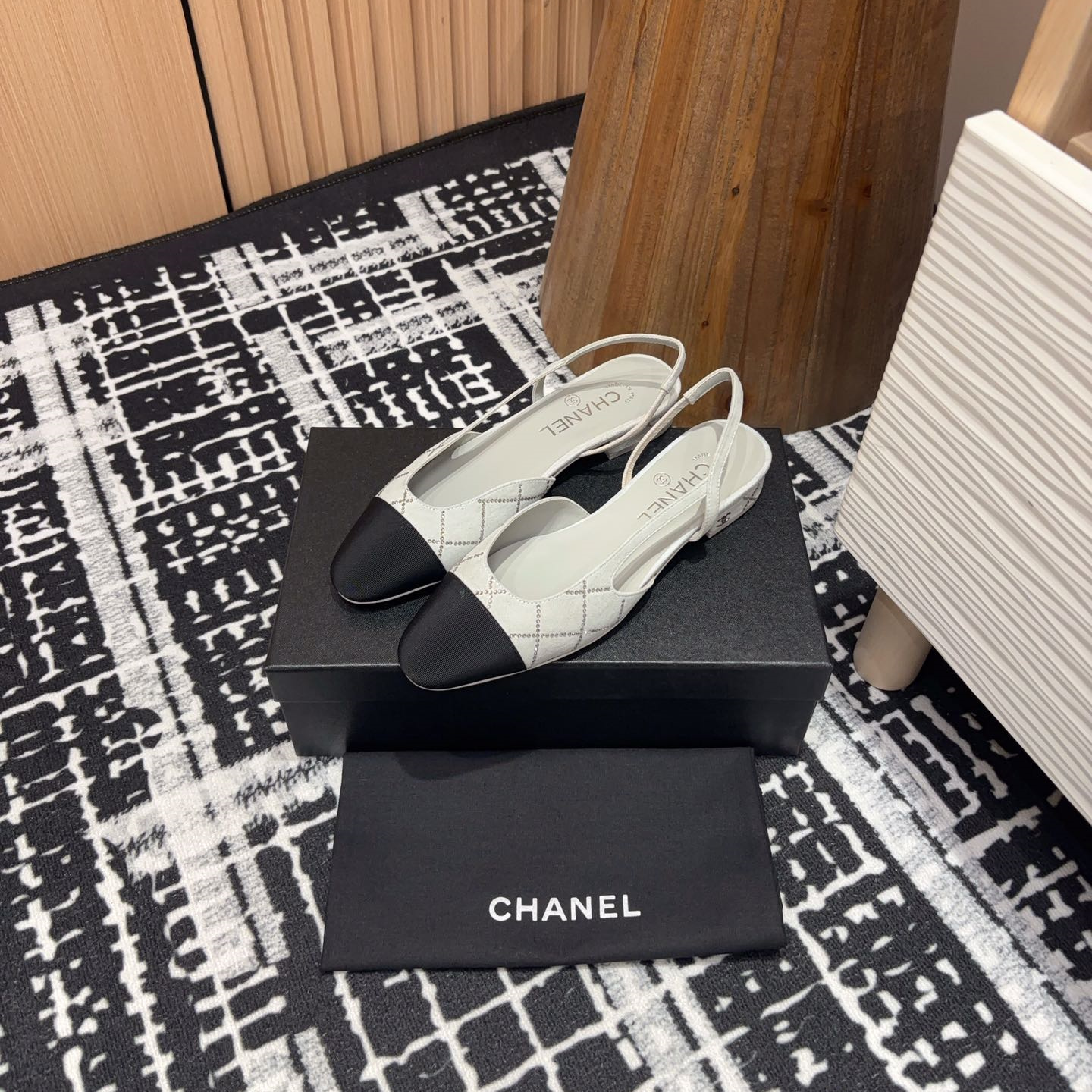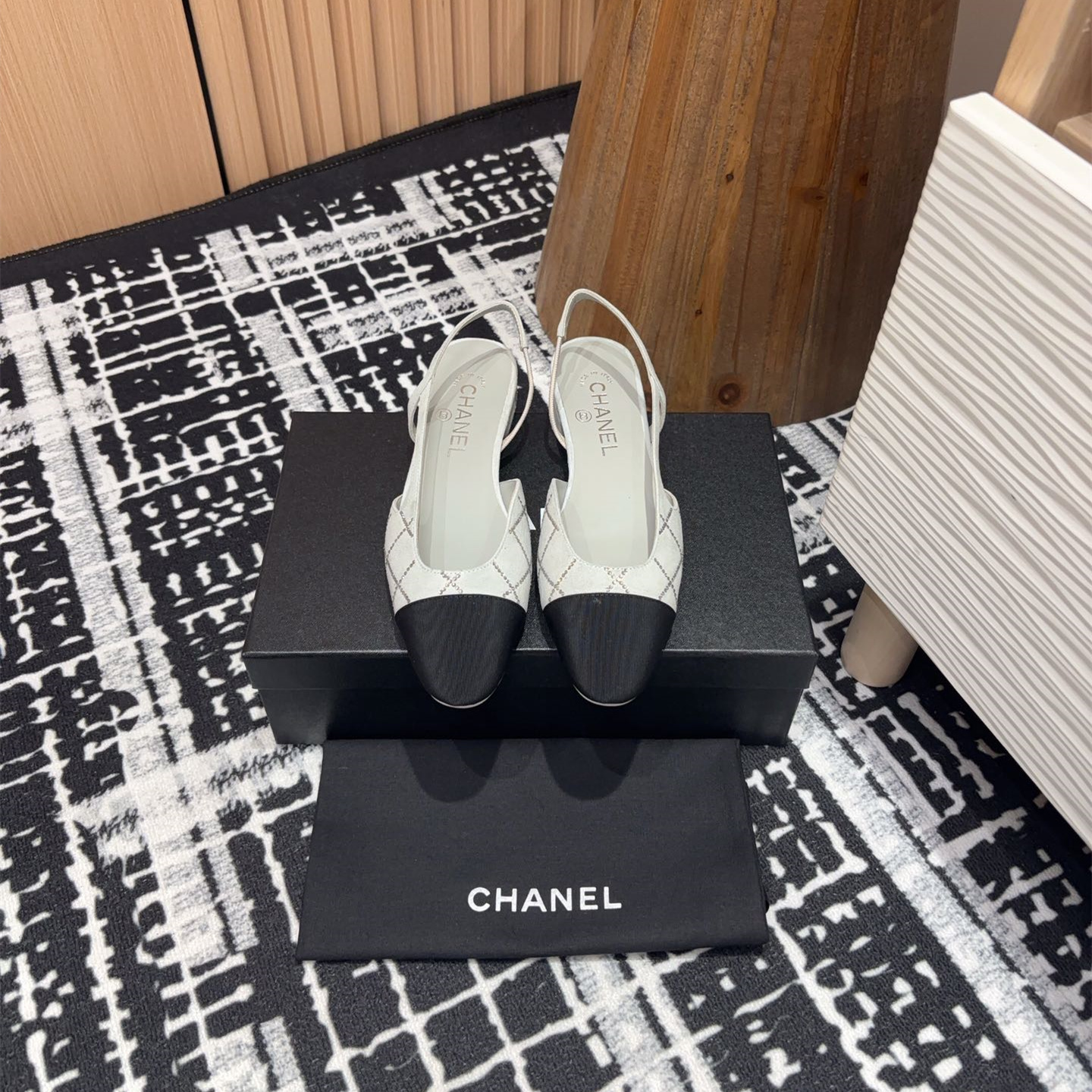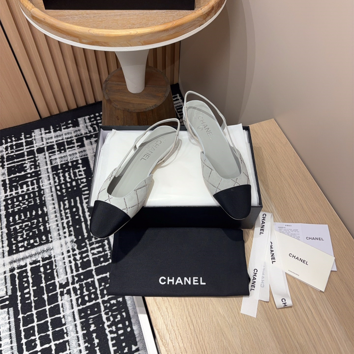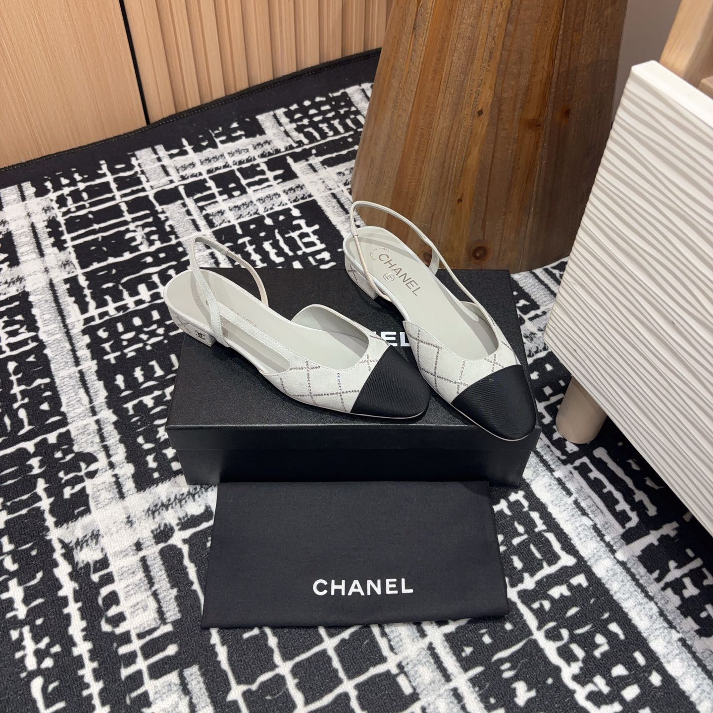 新款高仿Chanel小香燙鉆後空Sling-back涼鞋平底/粗跟.Sling-back於1957年問世,之後two-tone設計成為chane*經典之作!最新羊猄燙鉆鞋面超完美的細節