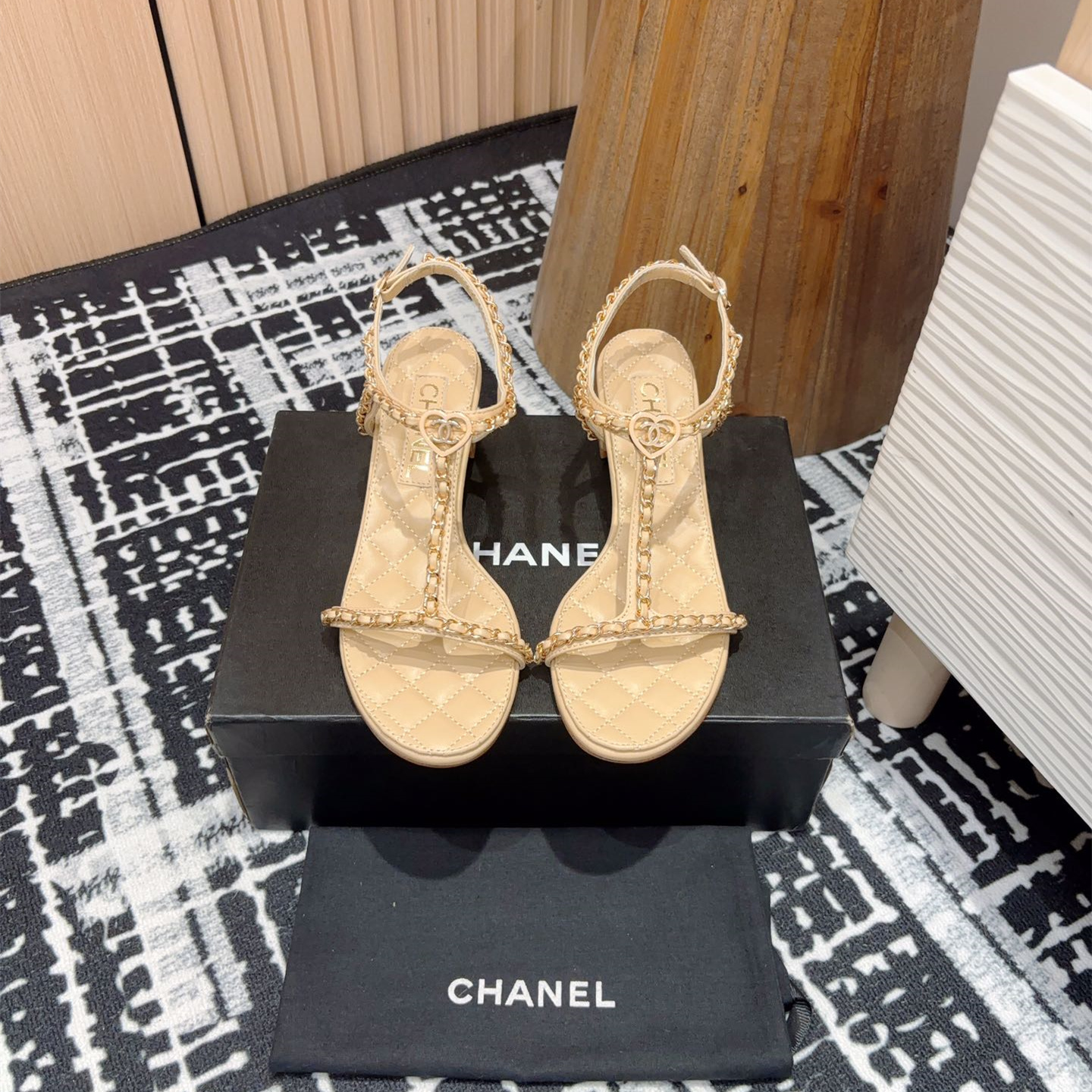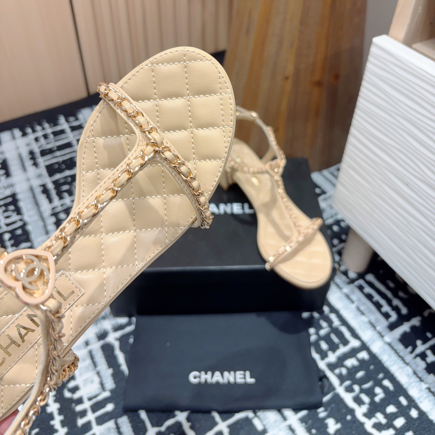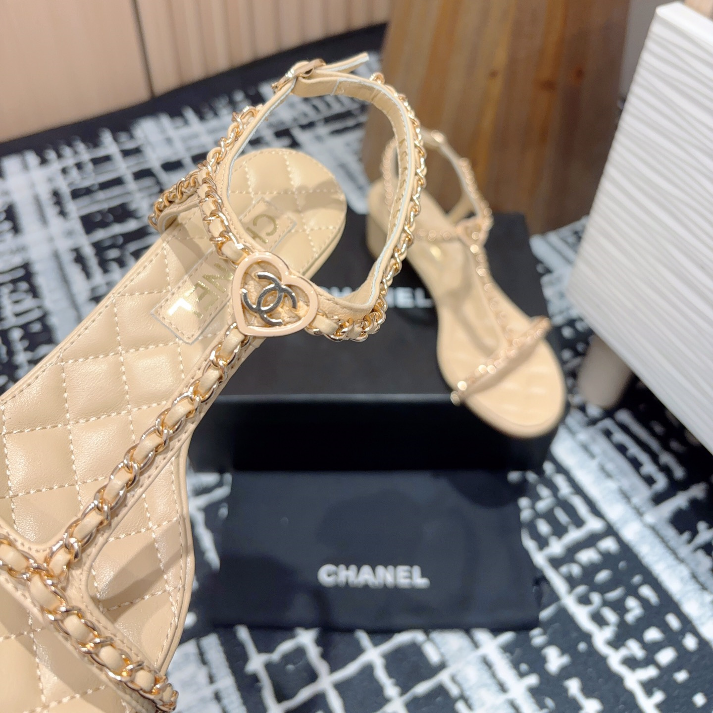 高仿Chanel小香2025春夏新款愛心鏈條涼鞋,平底/粗跟/高跟.