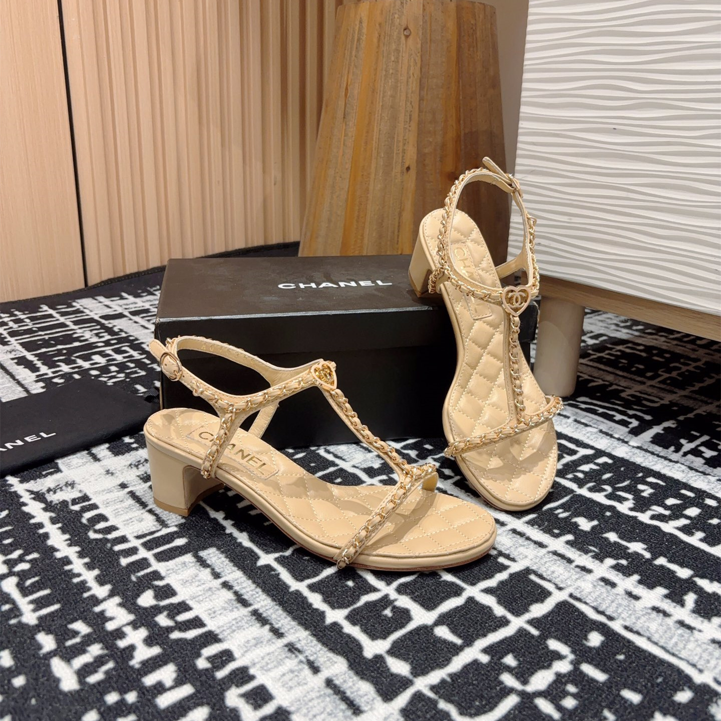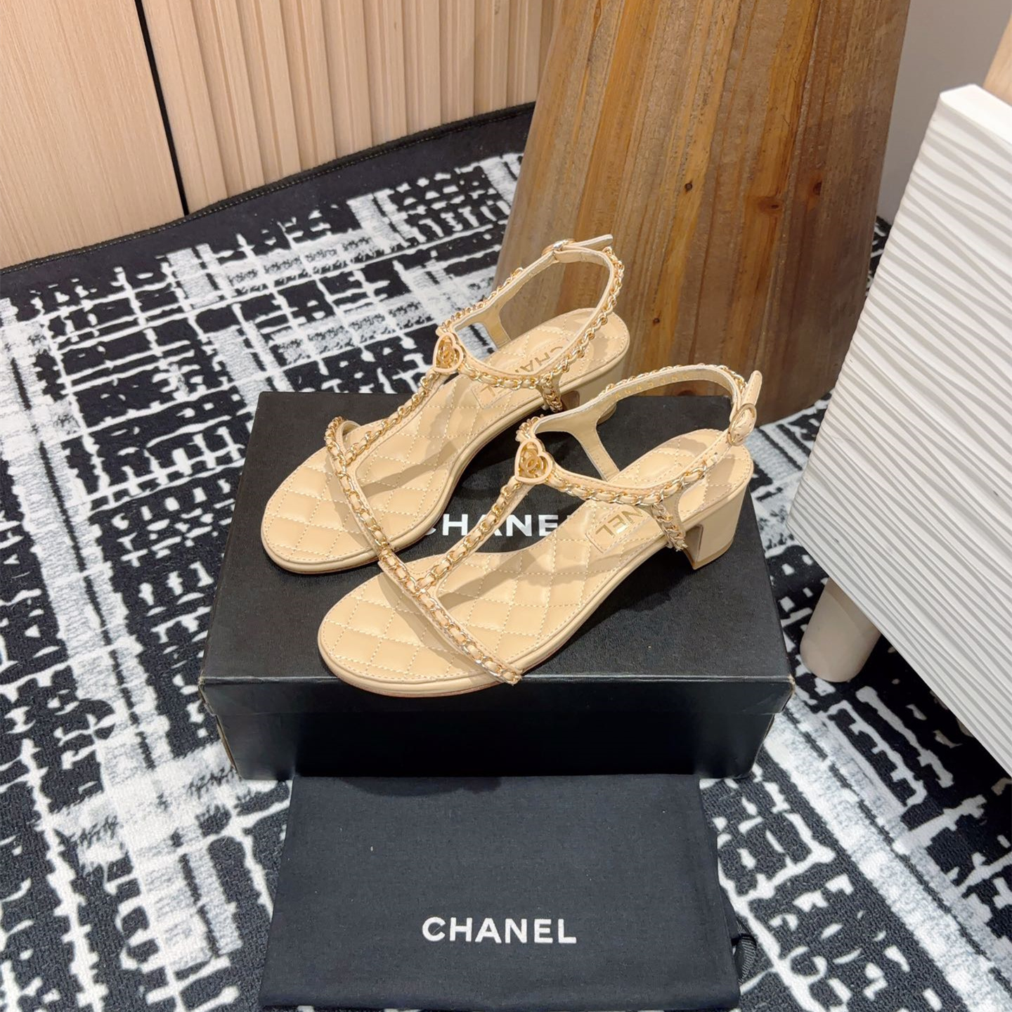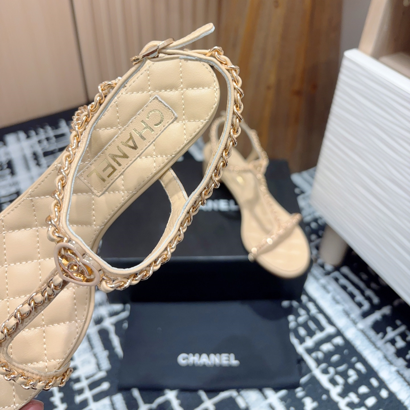 高仿Chanel小香2025春夏新款愛心鏈條涼鞋,平底/粗跟/高跟.