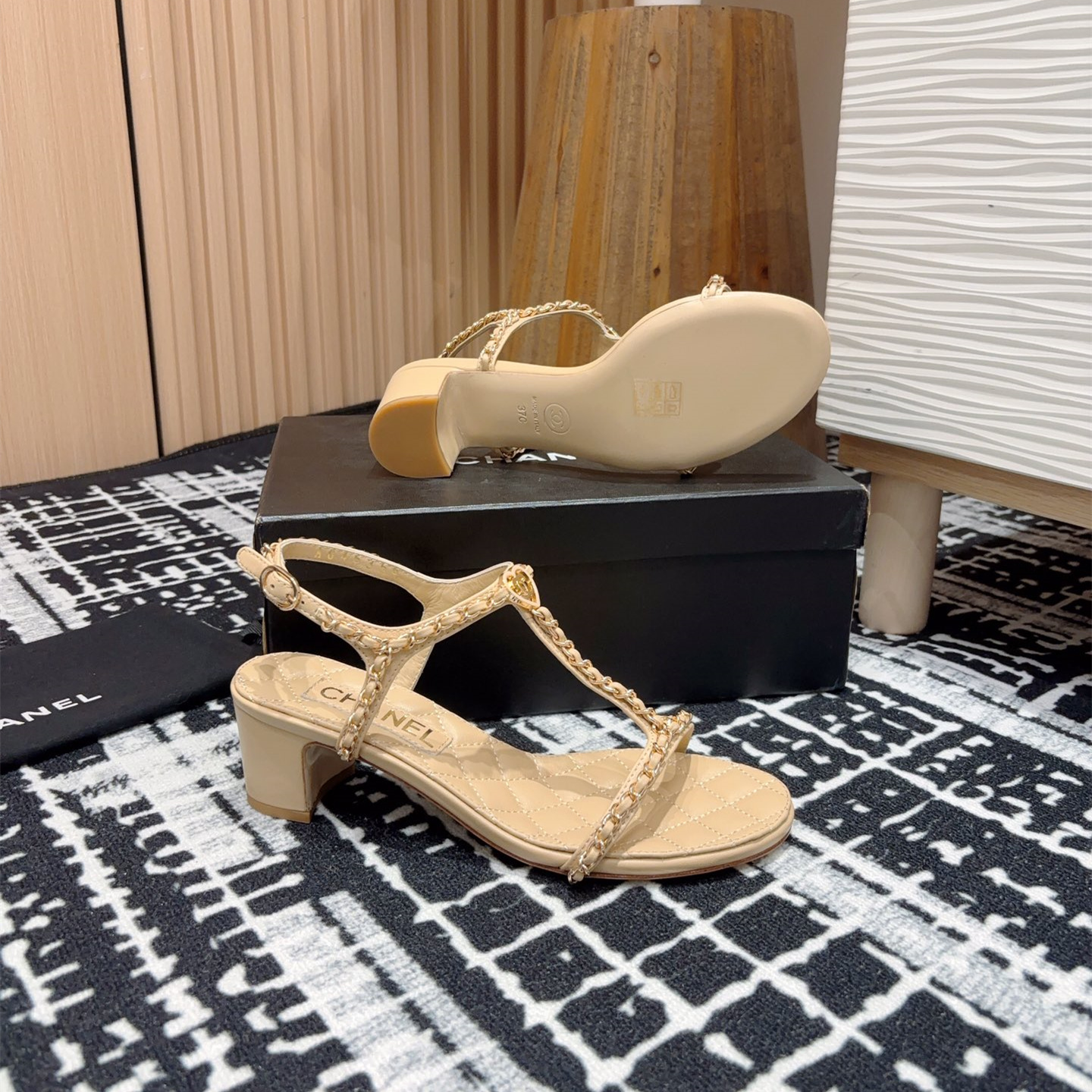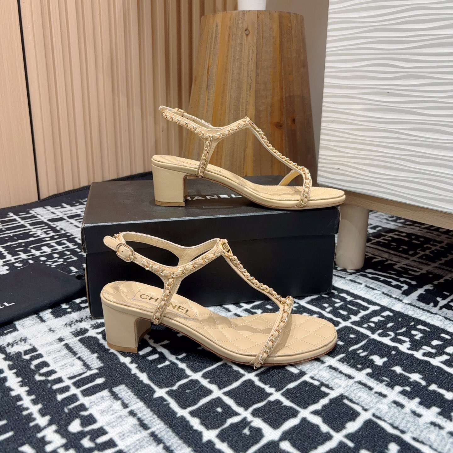 高仿Chanel*25C系列G36122B小羊皮中踭涼鞋米黃5CM免檢版
