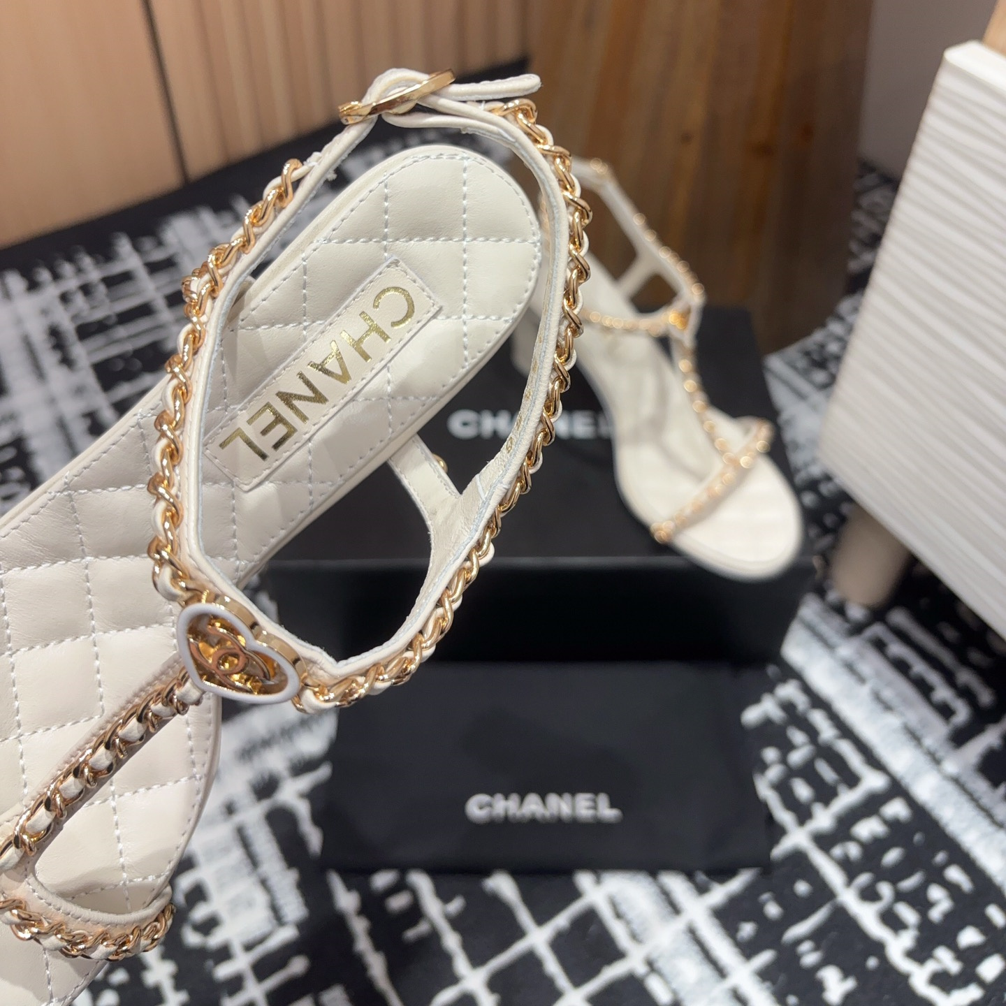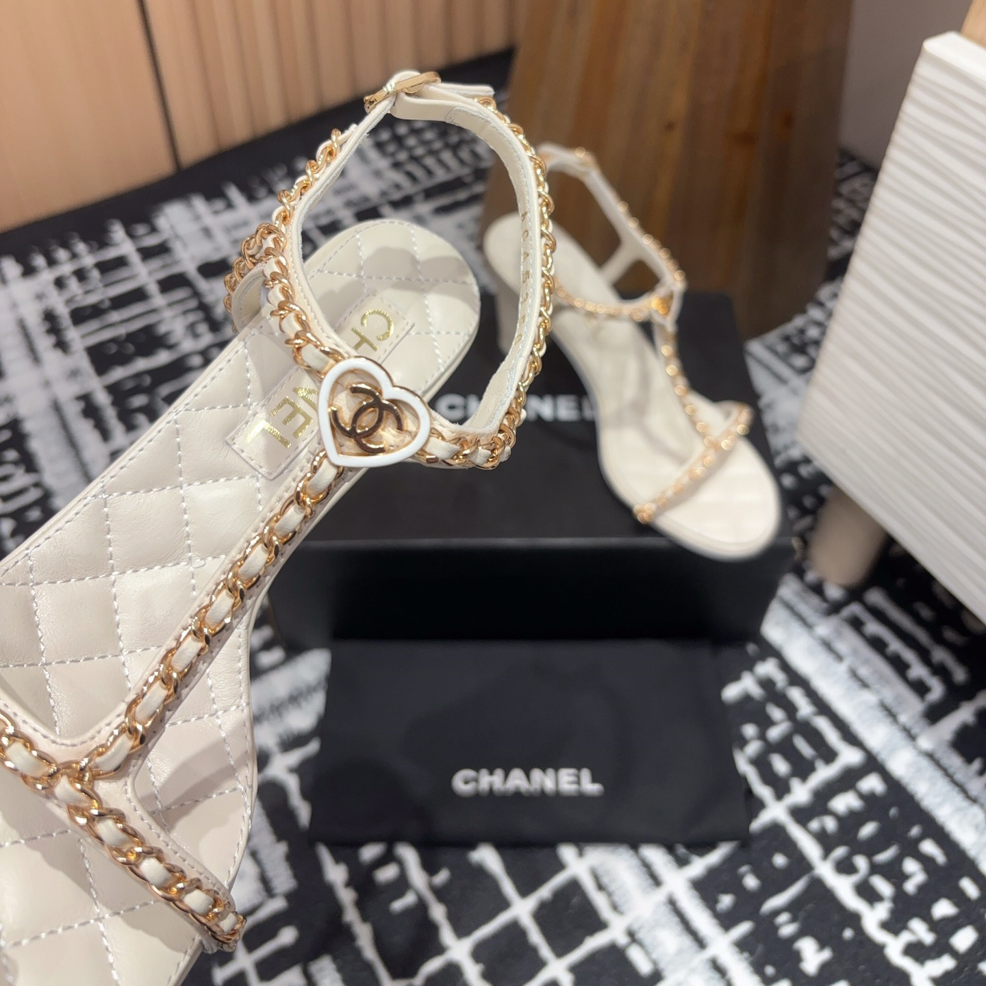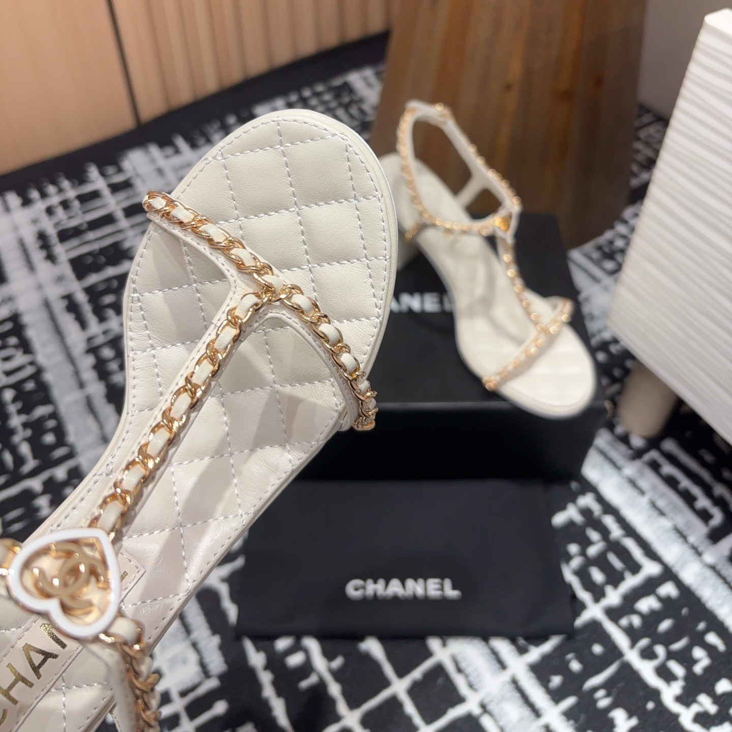 高仿Chanel小香2025春夏新款愛心鏈條涼鞋,平底/粗跟/高跟.