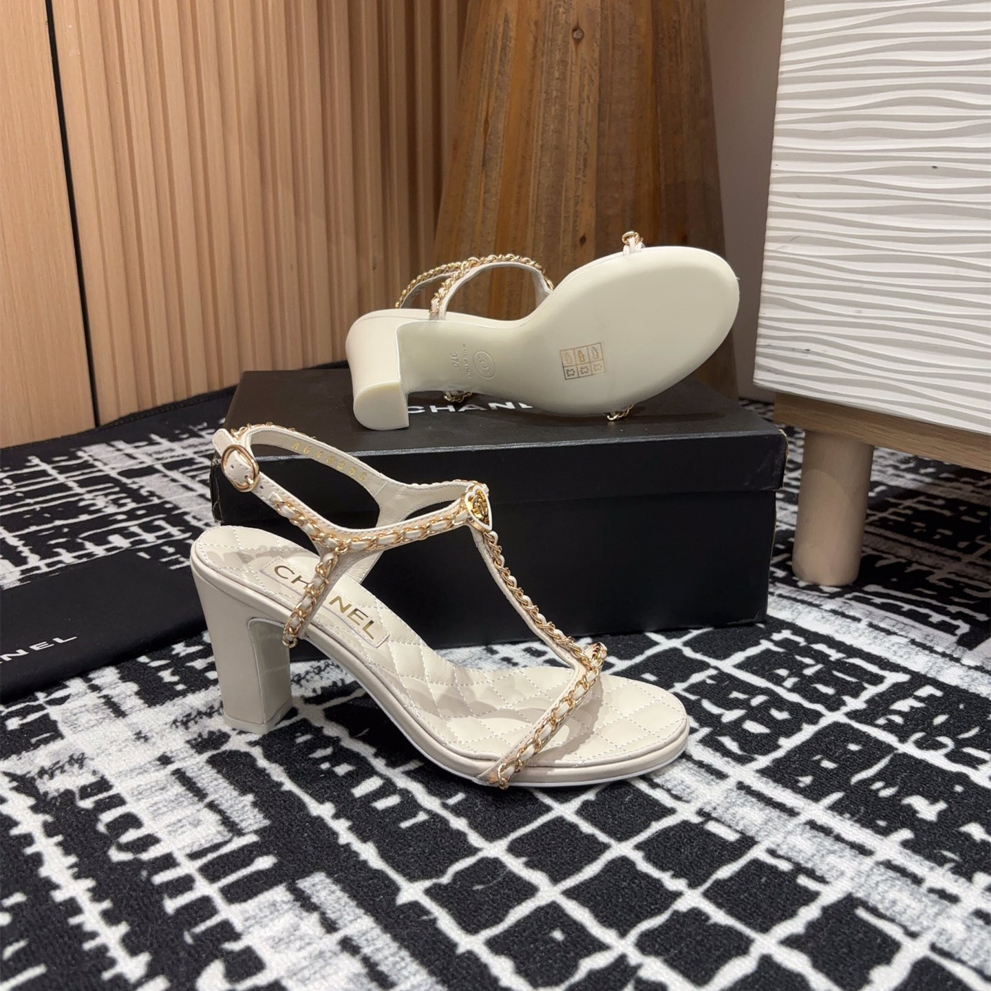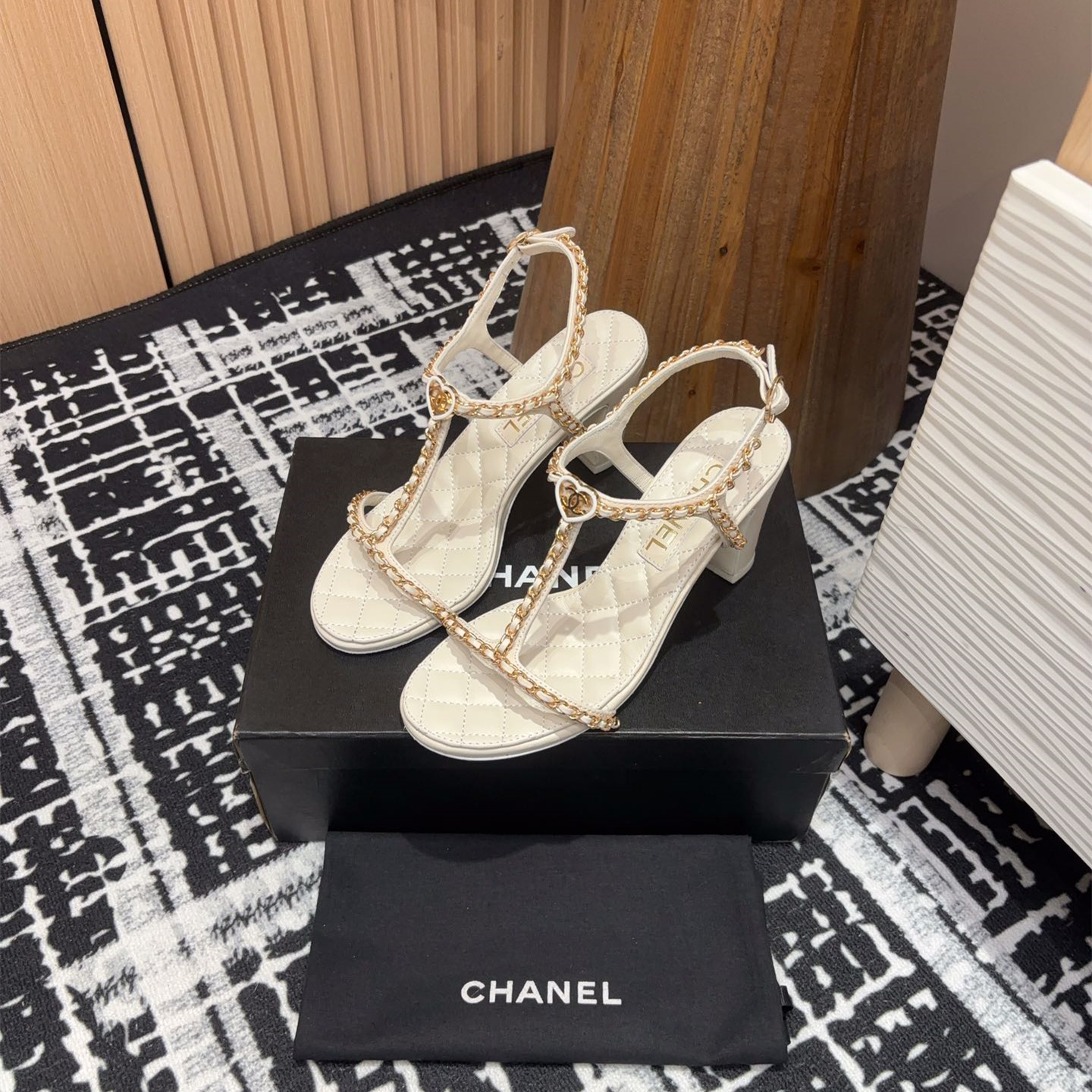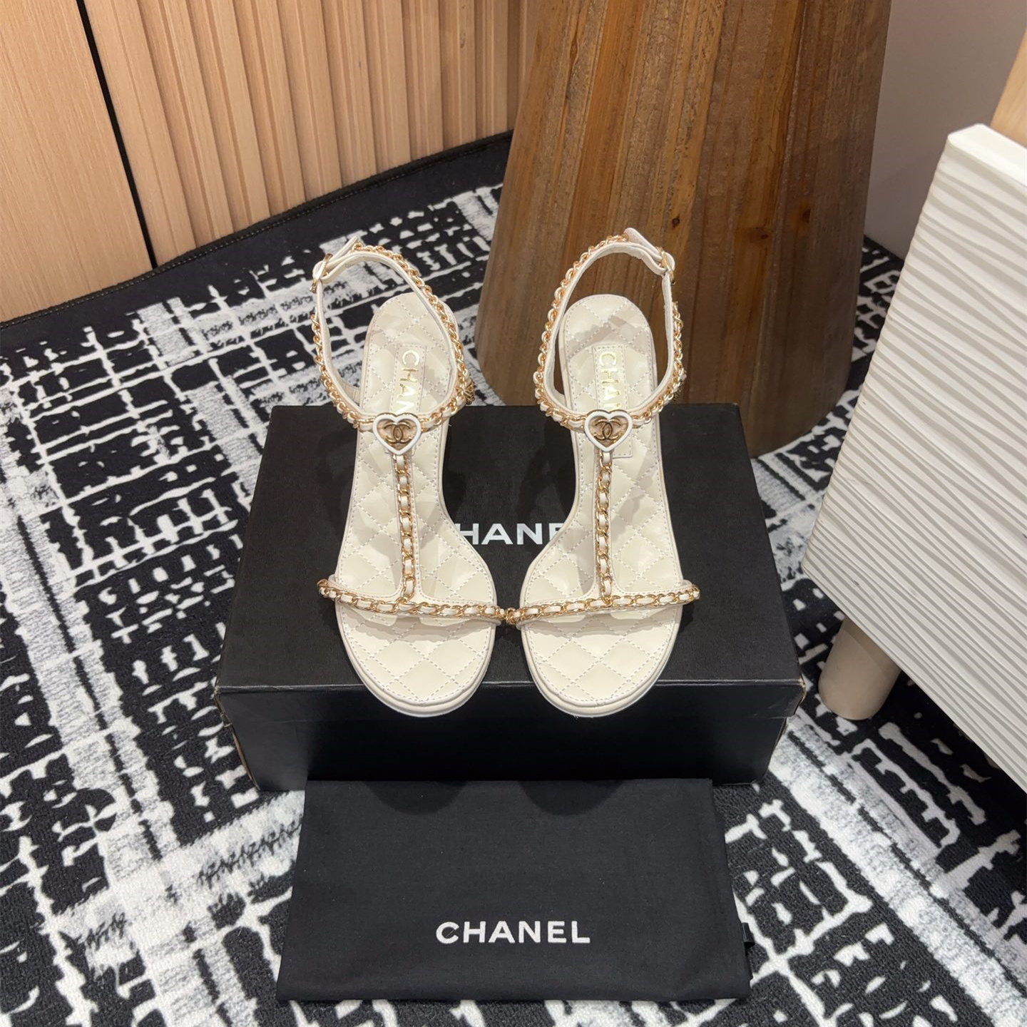 高仿Chanel小香2025春夏新款愛心鏈條涼鞋,平底/粗跟/高跟.