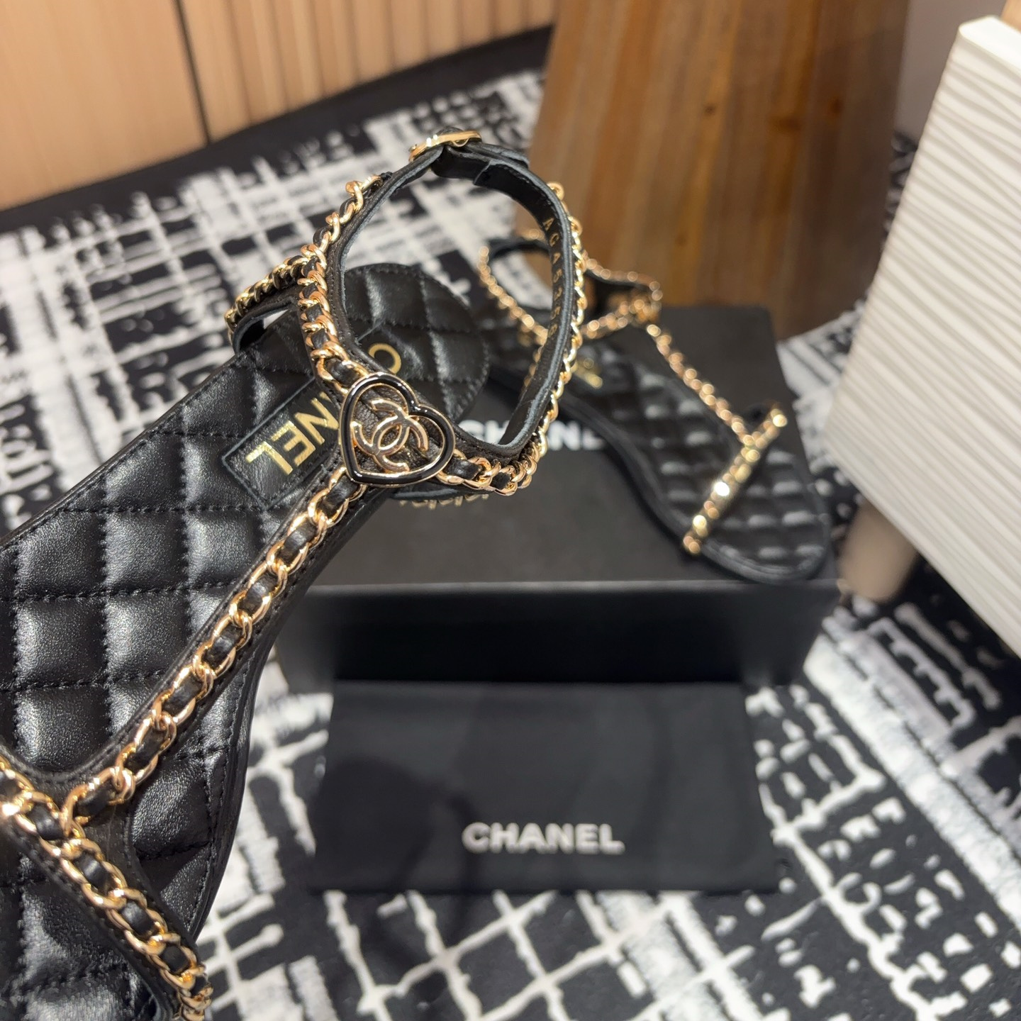 高仿Chanel小香2025春夏新款愛心鏈條涼鞋,平底/粗跟/高跟.