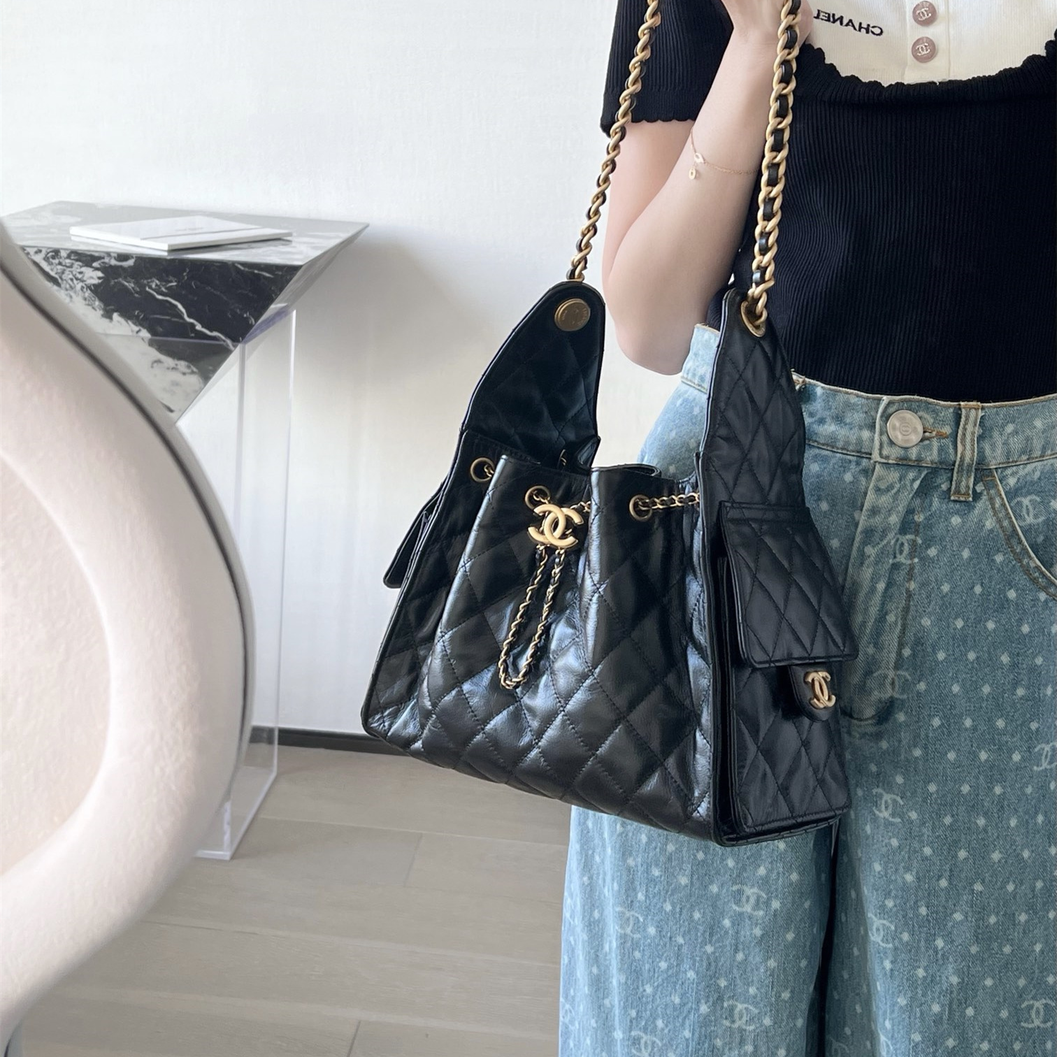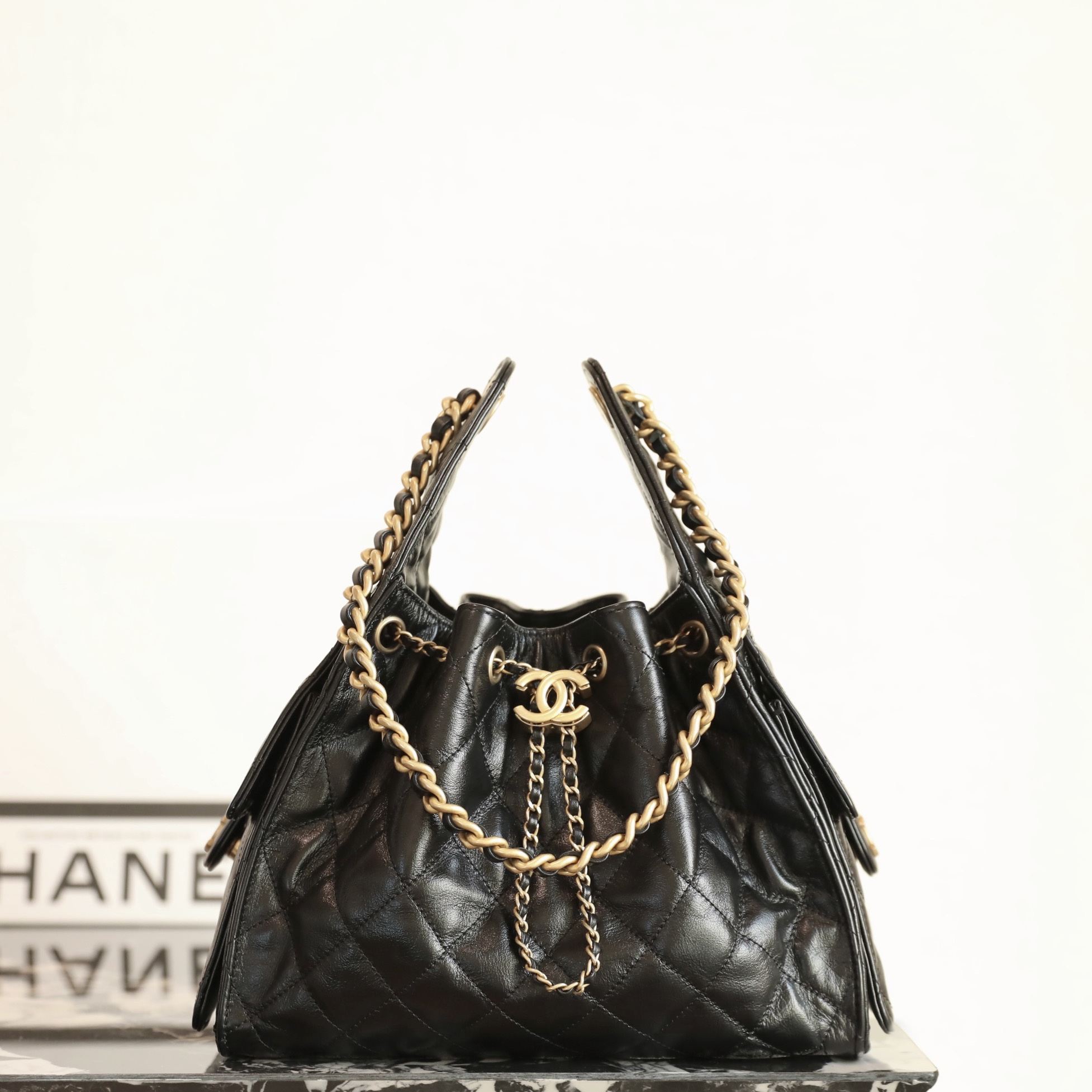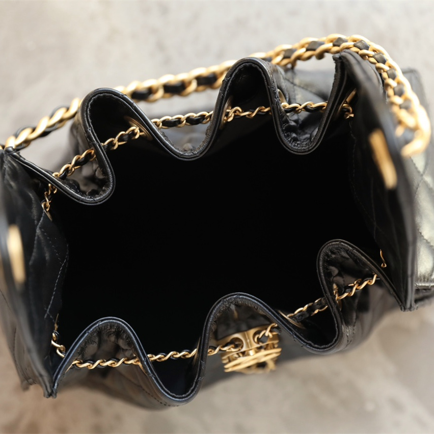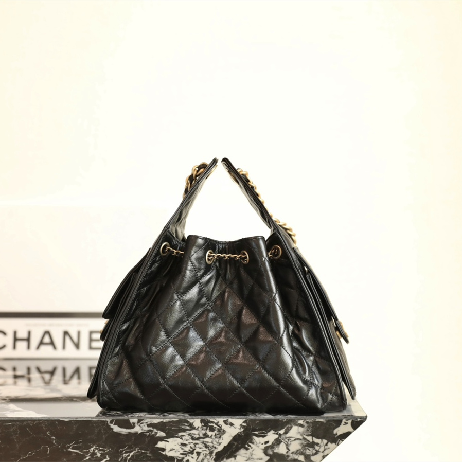 高仿Chanel*25P系列AS5293亮面牛皮單肩購物袋小號黑色免檢版