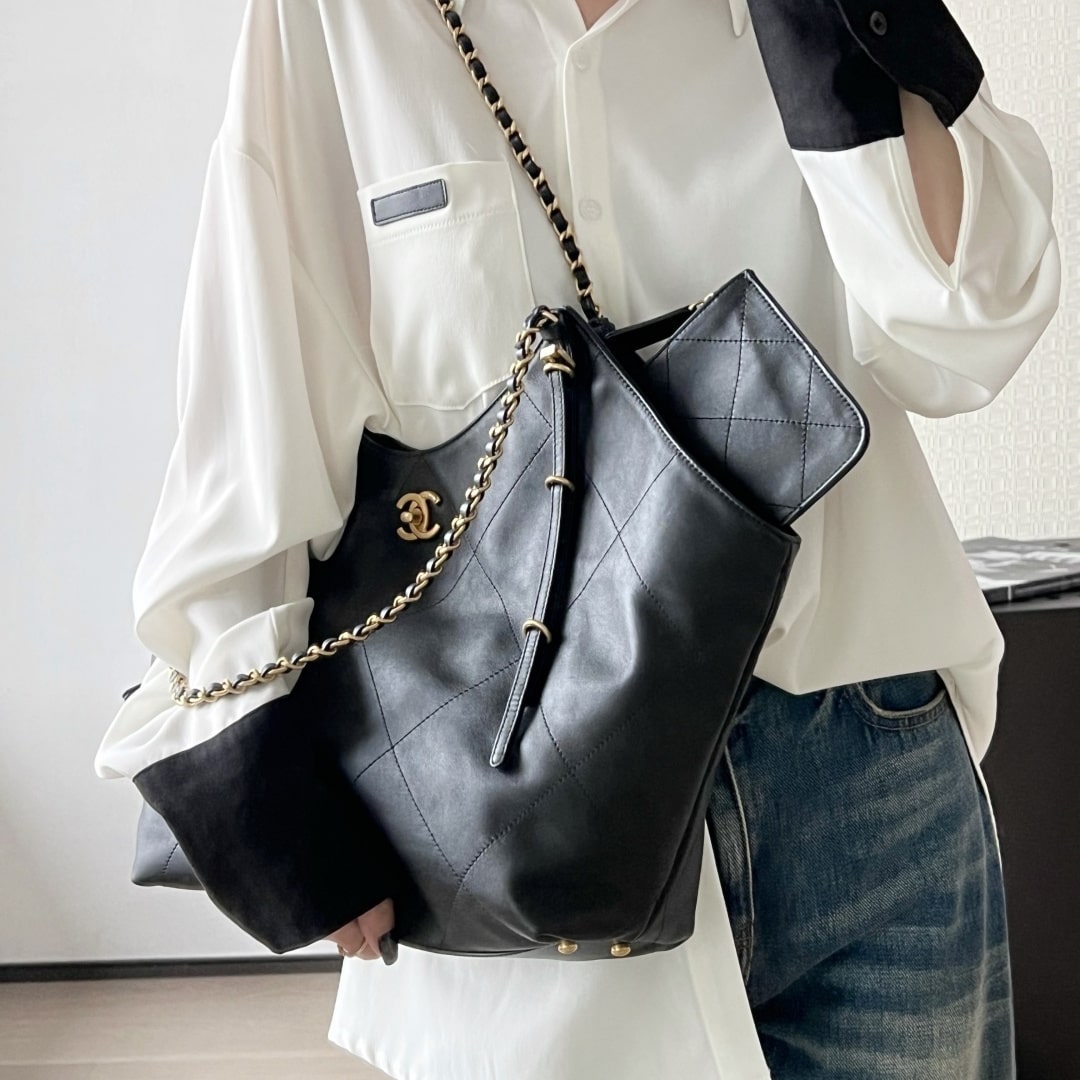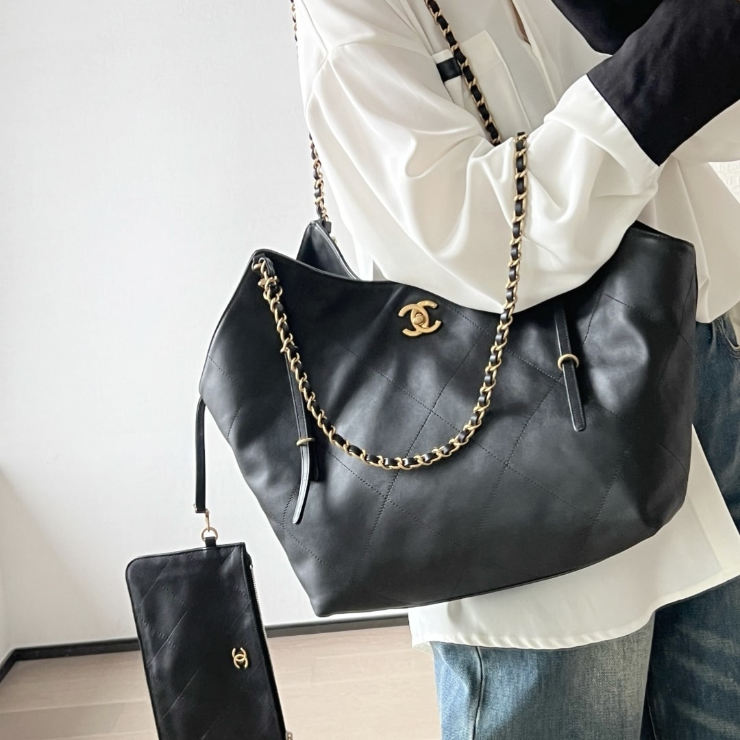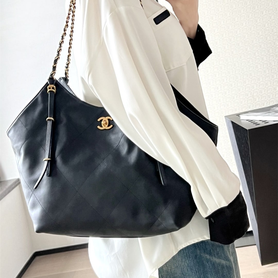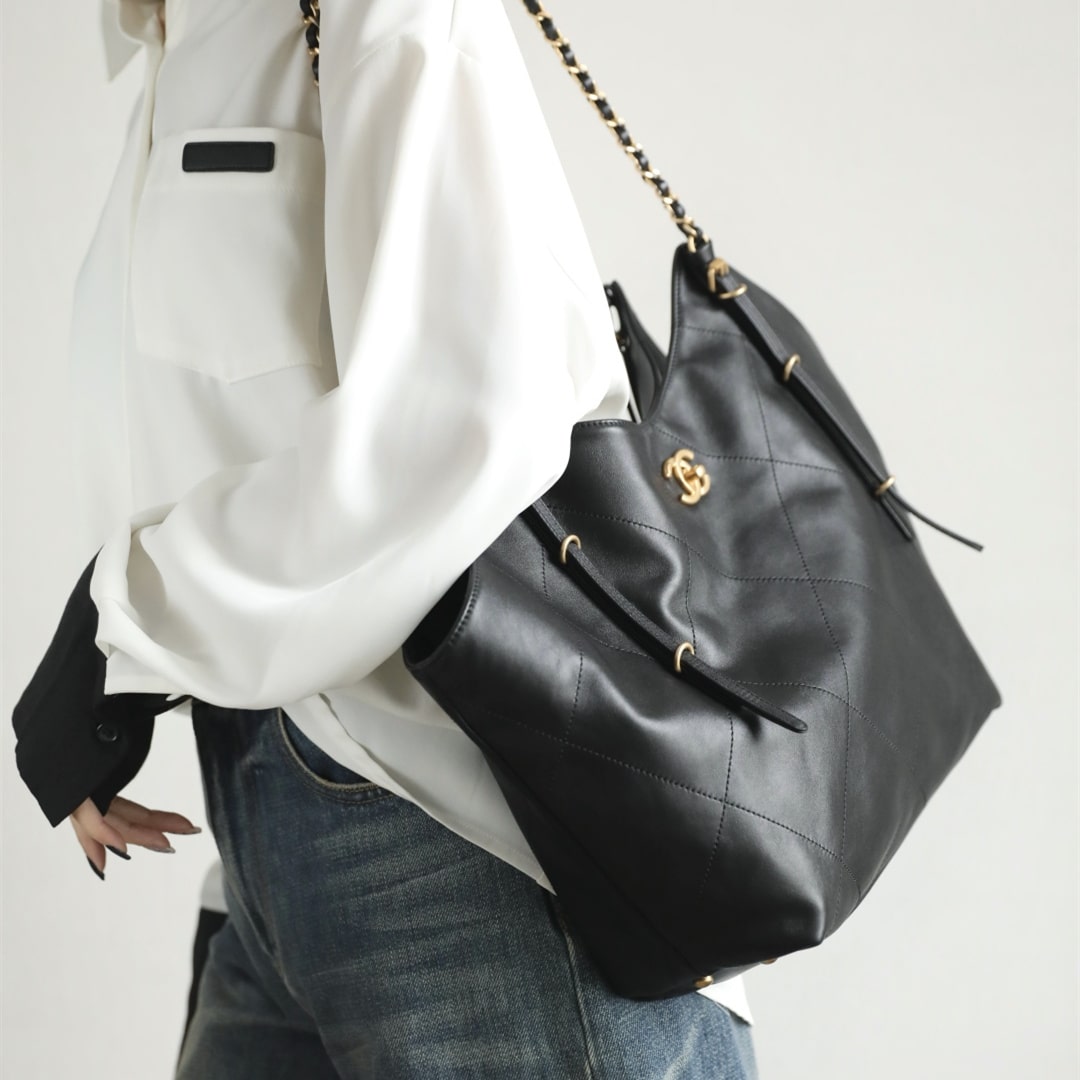 全新到貨Chanel 25S春夏蝙蝠購物包大號版本,火爆全網的 同款 來啦!手感細膩軟軟糯糯,簡直驚呆了,經典的大格子搭配復古金鏈子,隨手一拎就是大氣的高級濾鏡黑金百搭不挑人,通勤約會兩不誤!背上它,真的是氣場全開.