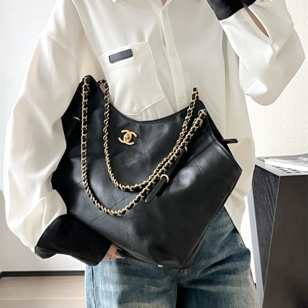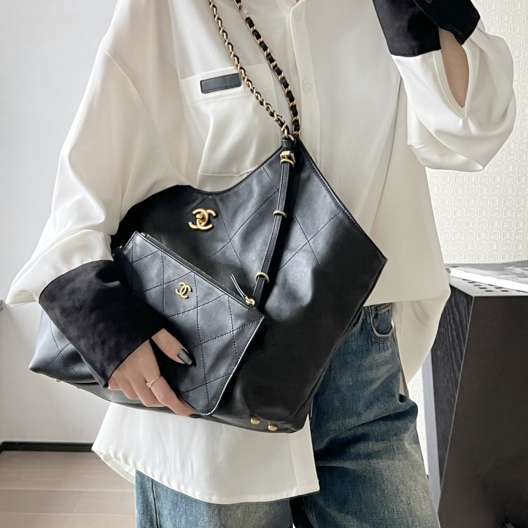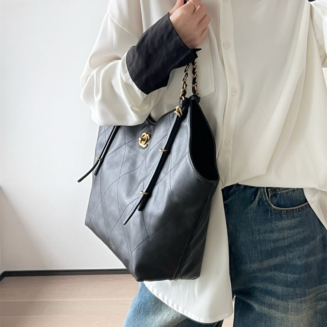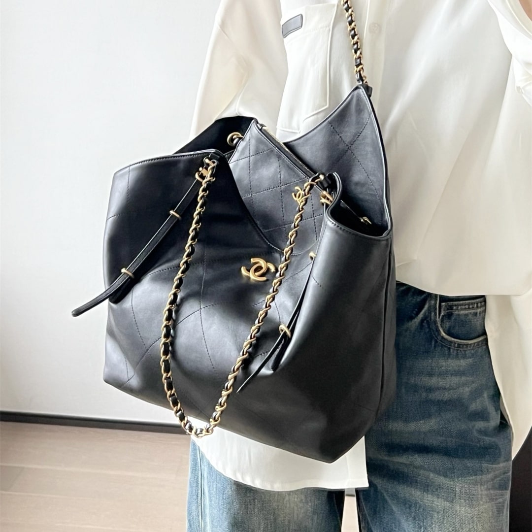全新到貨Chanel 25S春夏蝙蝠購物包大號版本,火爆全網的 同款 來啦!手感細膩軟軟糯糯,簡直驚呆了,經典的大格子搭配復古金鏈子,隨手一拎就是大氣的高級濾鏡黑金百搭不挑人,通勤約會兩不誤!背上它,真的是氣場全開.