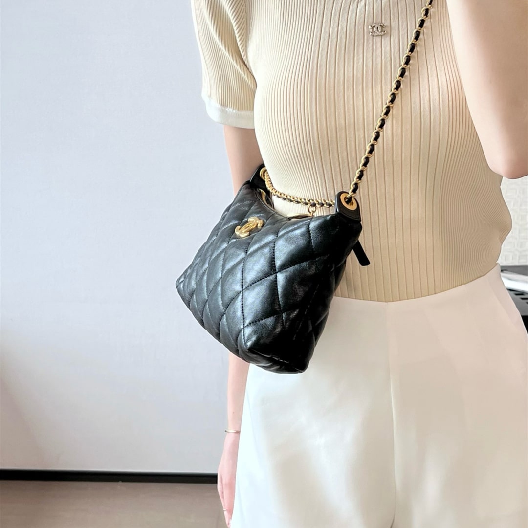 高仿Chanel*25S系列AS5528小羊皮腋下包黑色免檢版