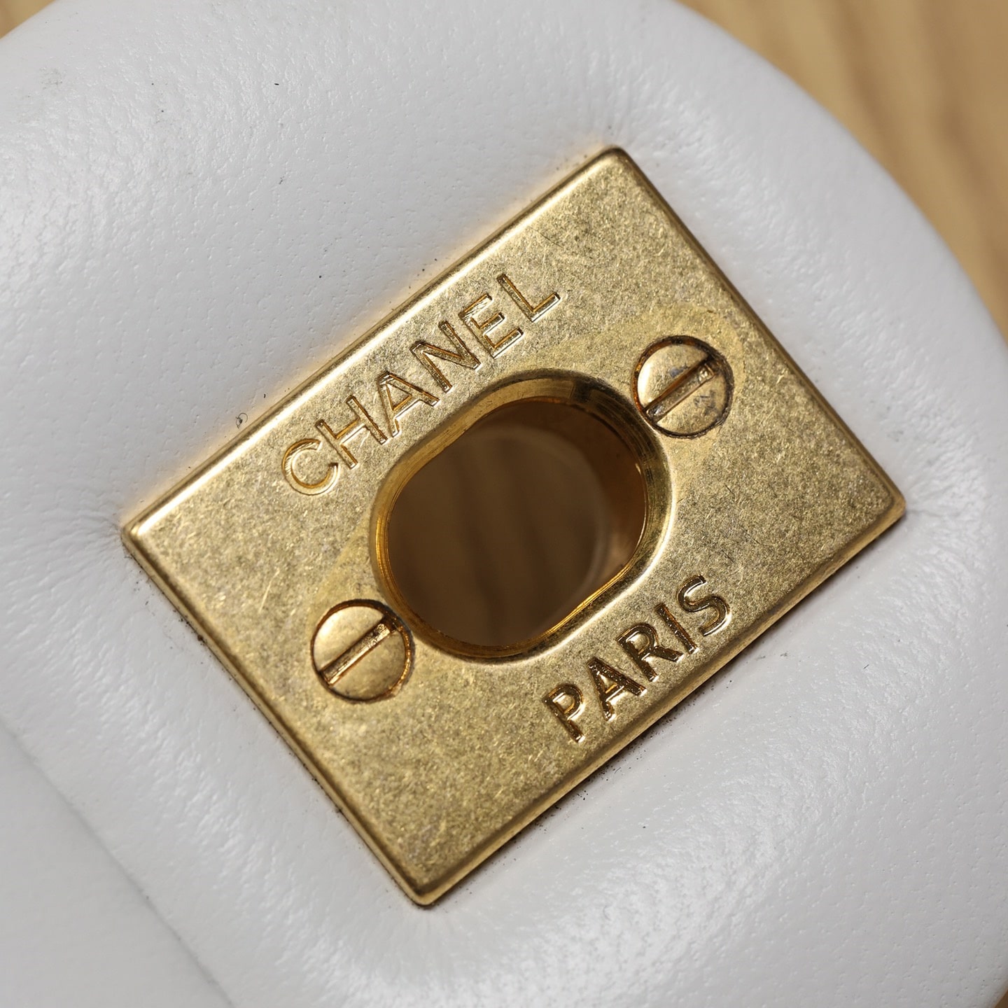 Chanel經典金球繫列白色歐洲獨家渠道貨純白色,純手工純原貨.蓋口包採用歐洲原產進口的羊皮和進口原廠純鋼頂級五金材質,內裏也是採用原廠進口的羊皮,所有托料都是原裝進口的,手感和專櫃的一模一樣.手感細膩,洋溢著正品質感嫩的如剛出生的嬰兒皮膚,性價比也是非常高簡單又大氣,每個女生都想擁有的一款心儀的包包,喜歡小香家的包入門級必買的bag.