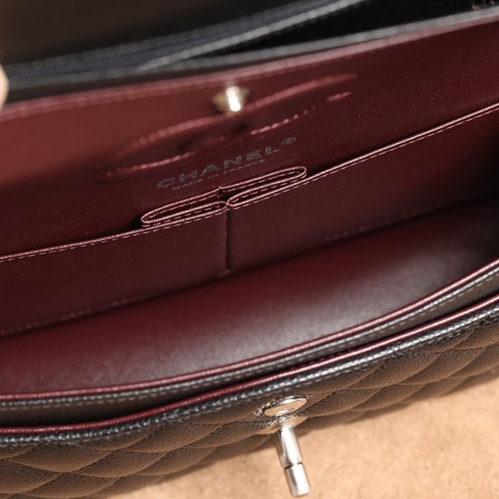 Flap芯片版全新推出,與其他口蓋包不一樣的是,此次根據原版正品開模,從皮革上選用進口Hssa魚子醬牛皮材質,這種皮革所呈現出密集顆粒感,小香高仿全面包裹出精緻絕美的視覺感.顆粒紋路清晰,粗細明顯,類似和鱷魚皮差不多的手感.