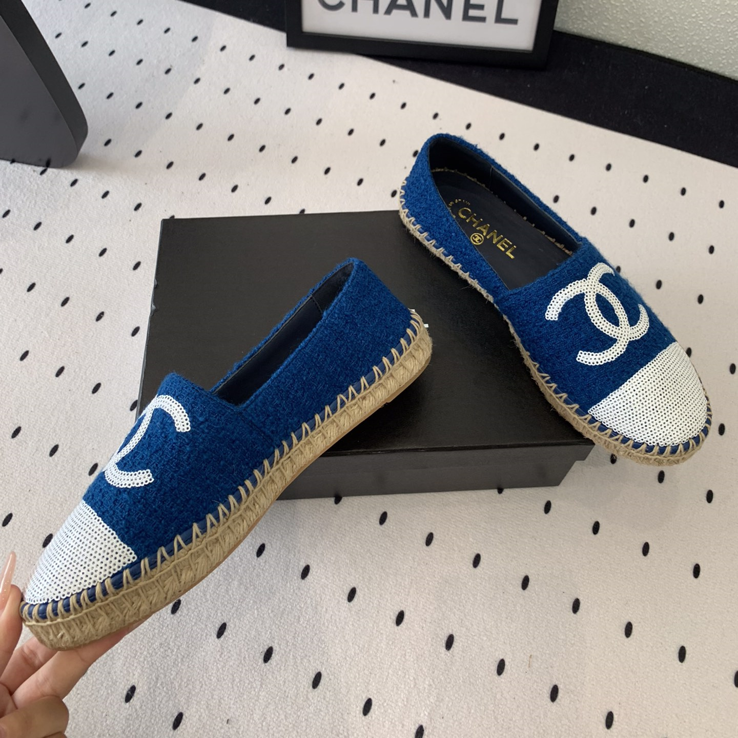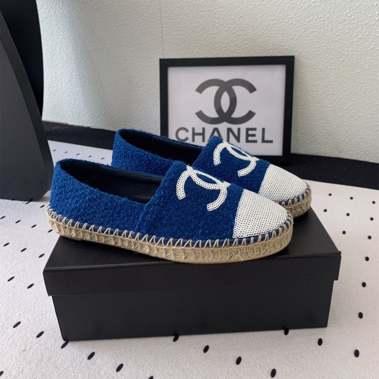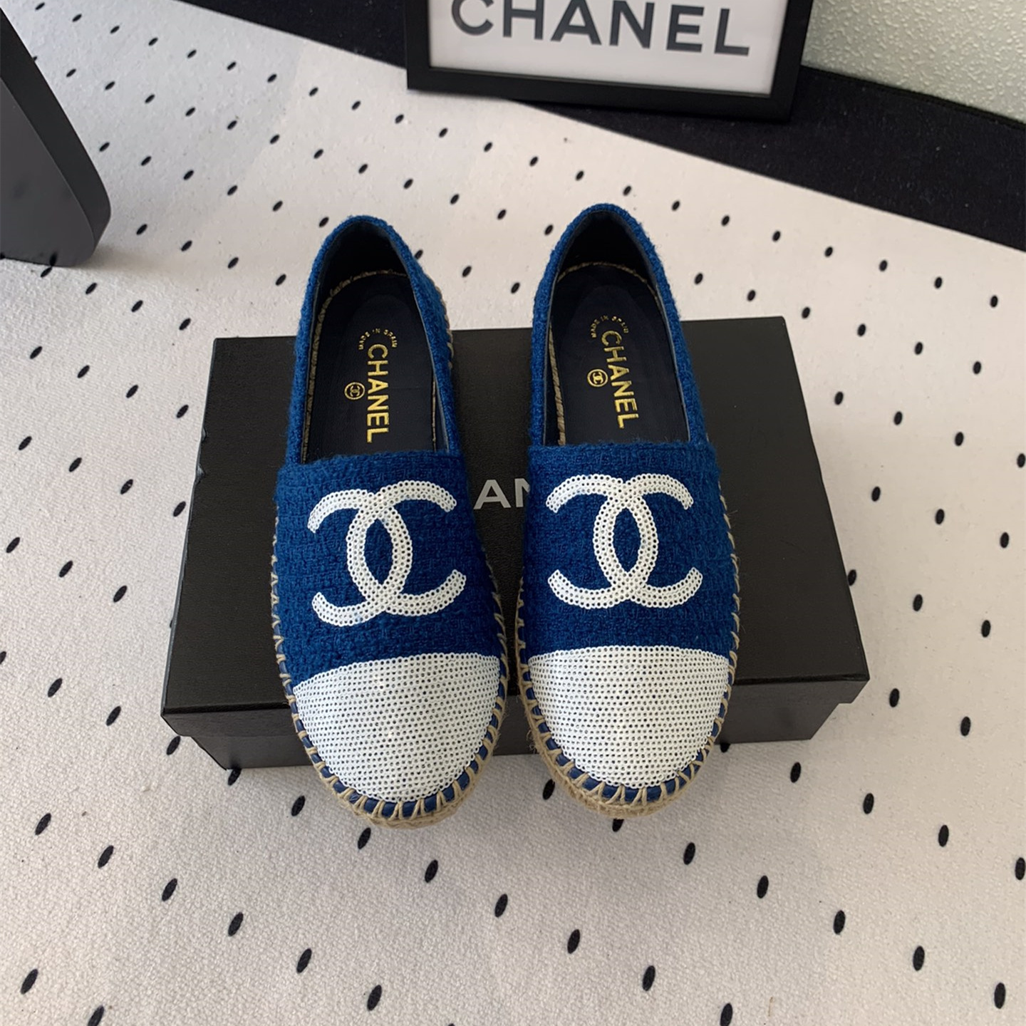 高仿Chanel*G45602C編織底漁夫鞋深藍色免檢版