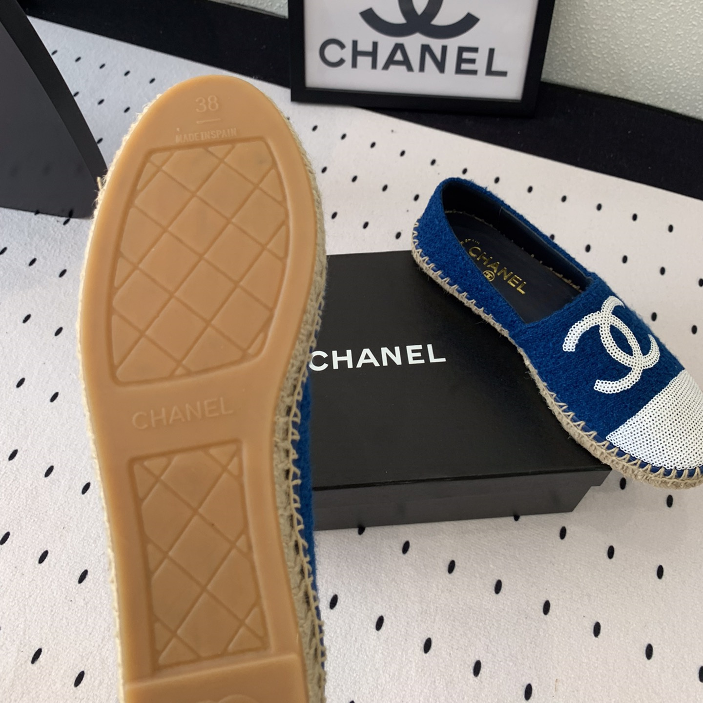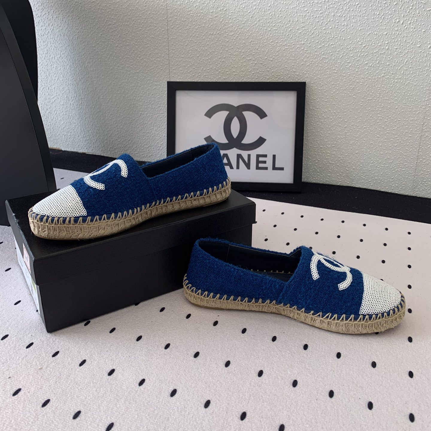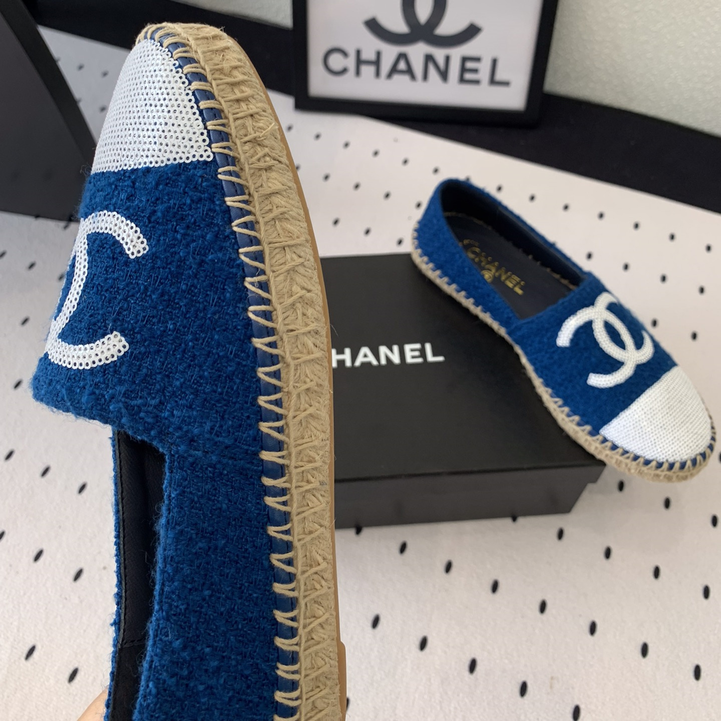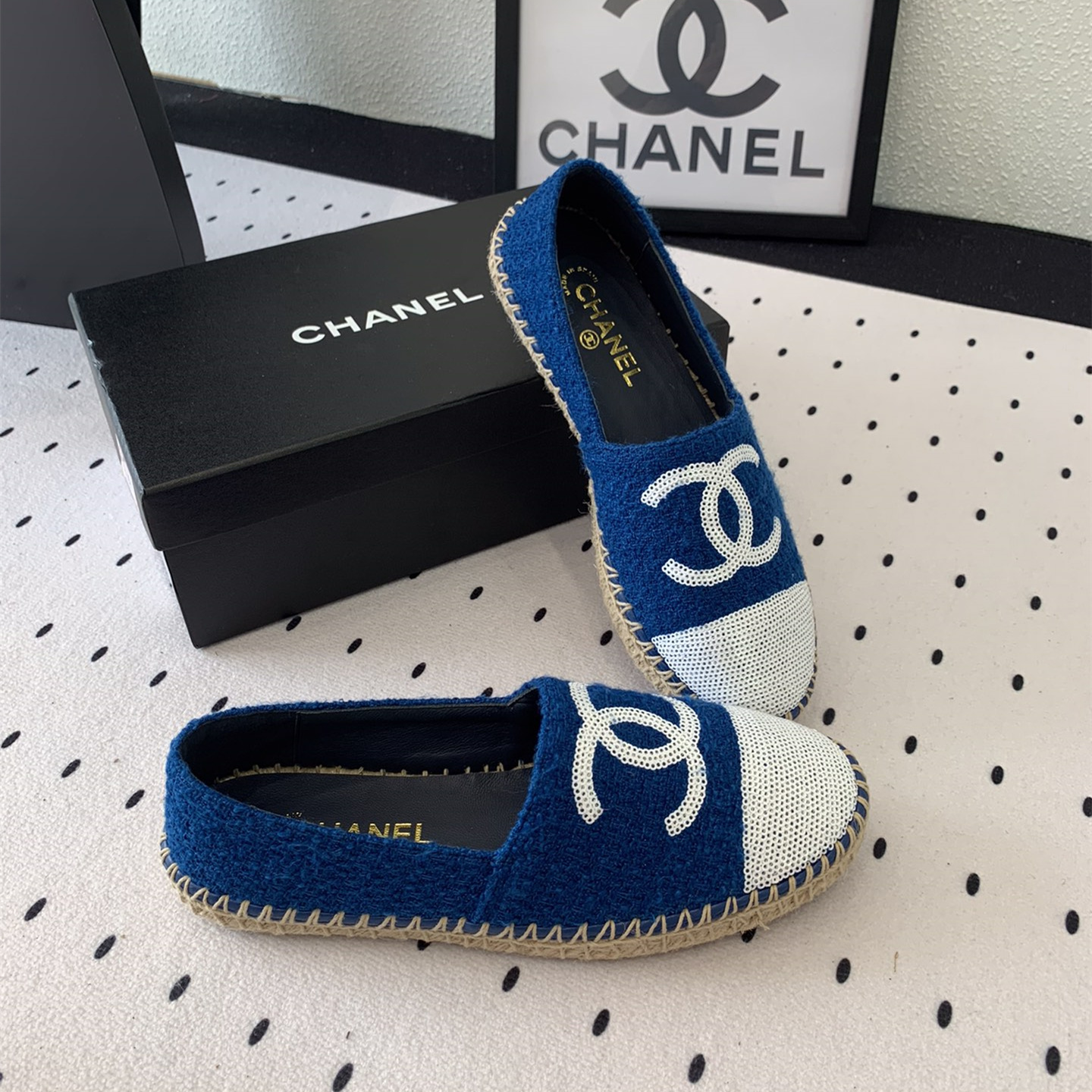 高仿Chanel*G45602C編織底漁夫鞋深藍色免檢版