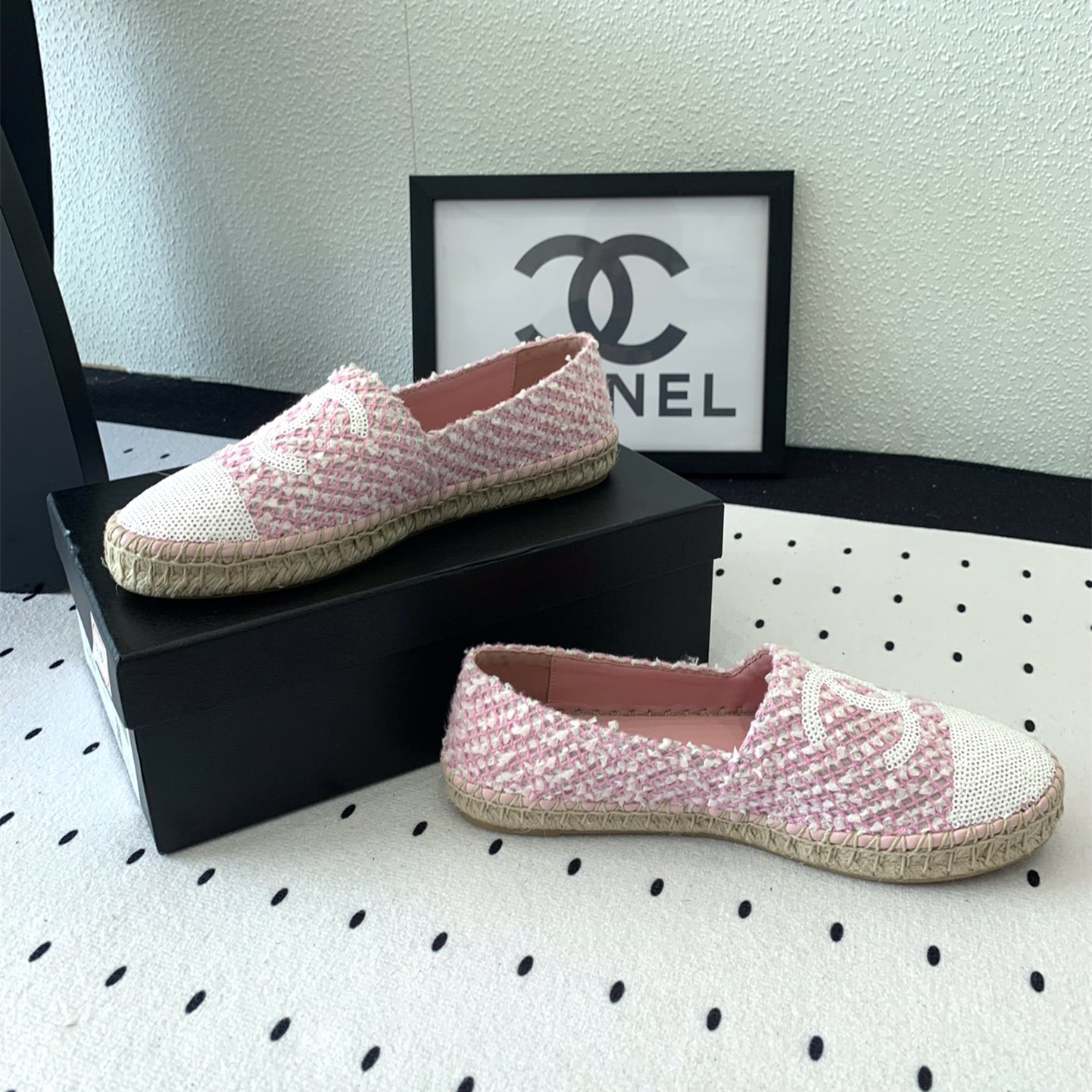 高仿Chanel*G45602E編織底漁夫鞋粉色免檢版