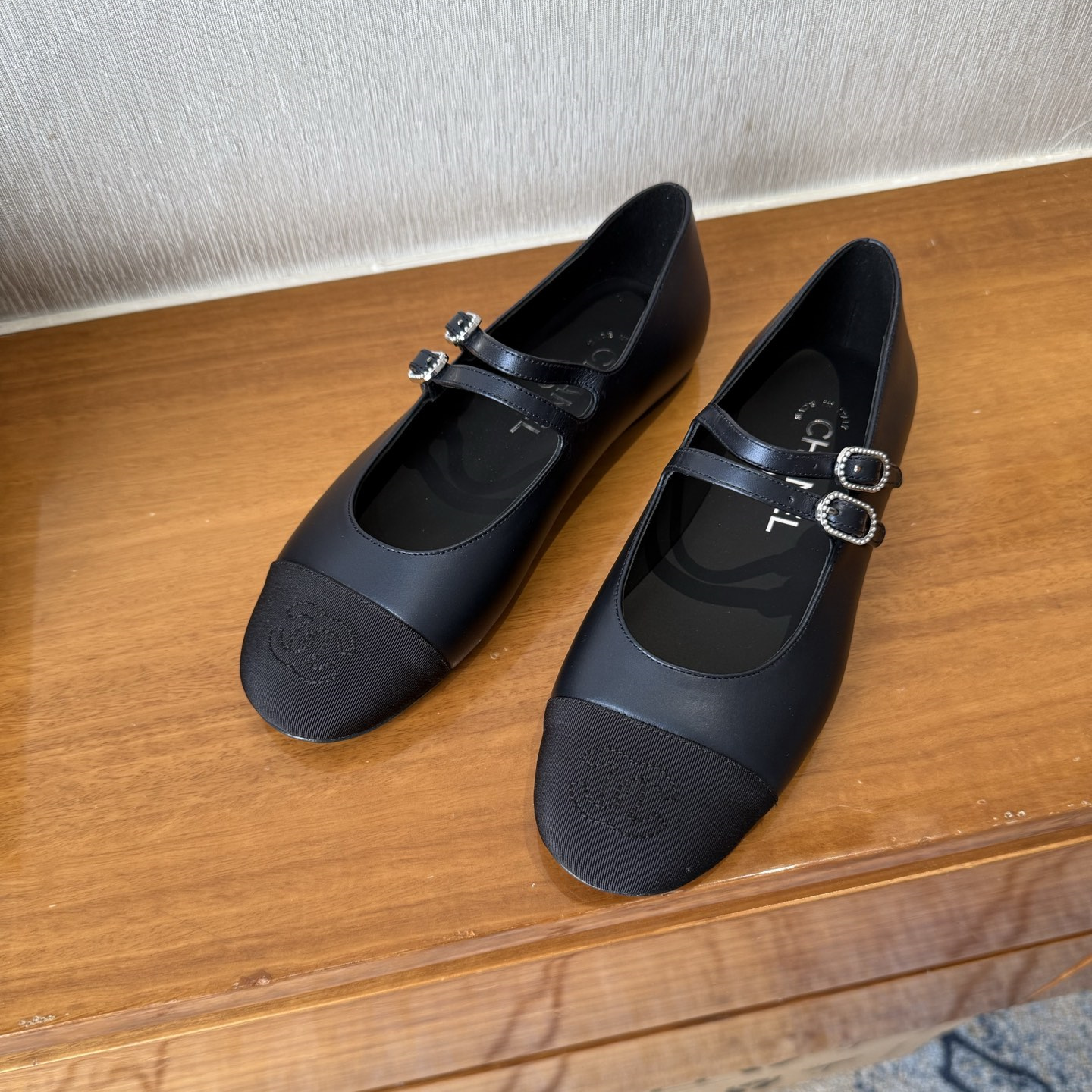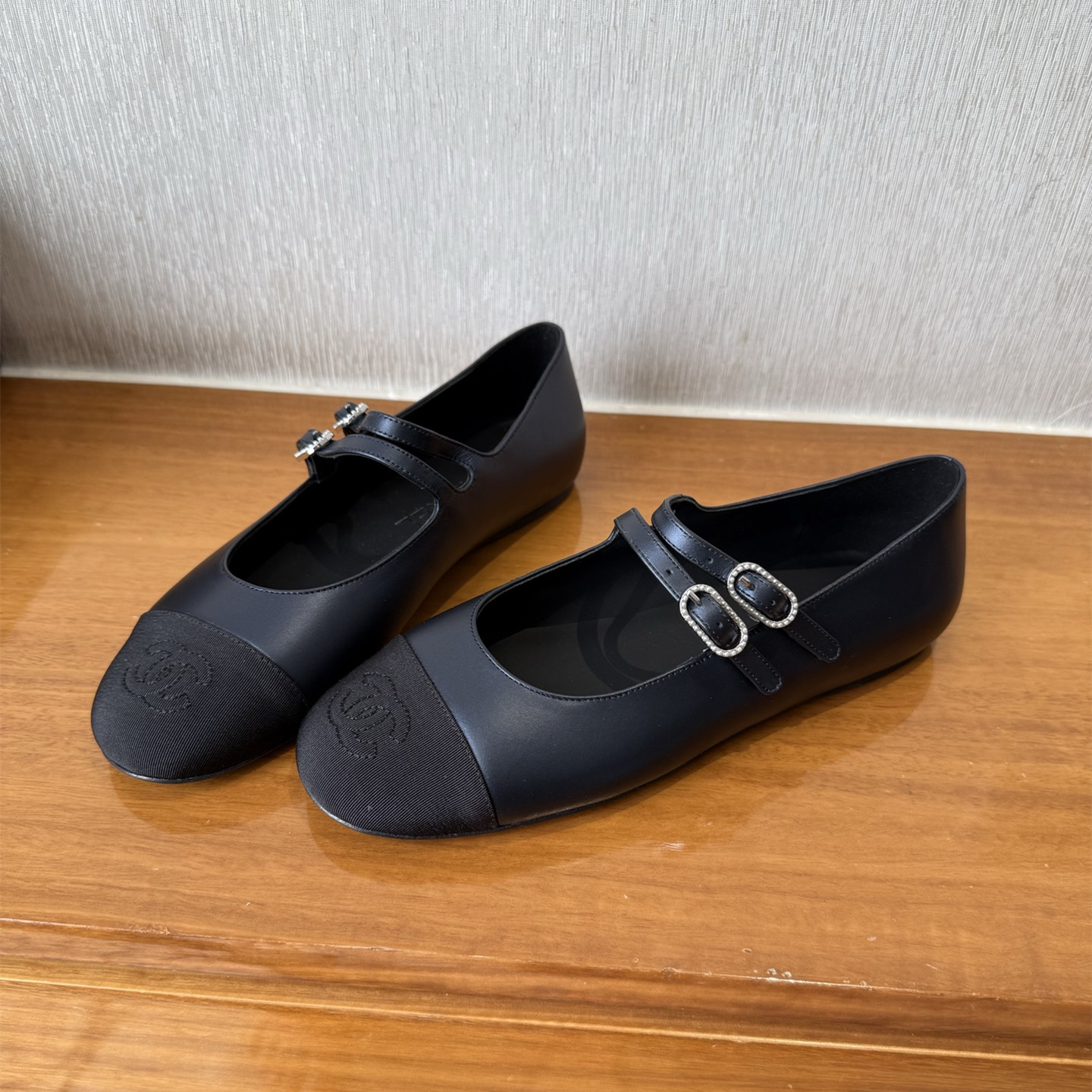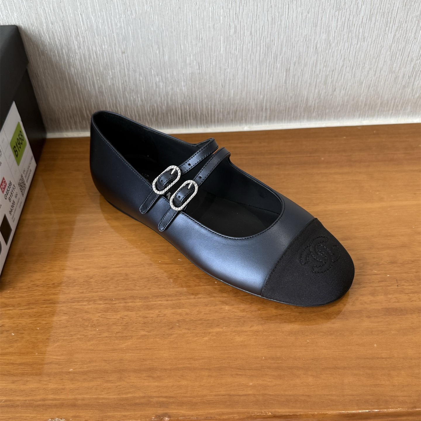 高仿Chanel*G45698圓頭塔扣平底鞋黑色免檢版