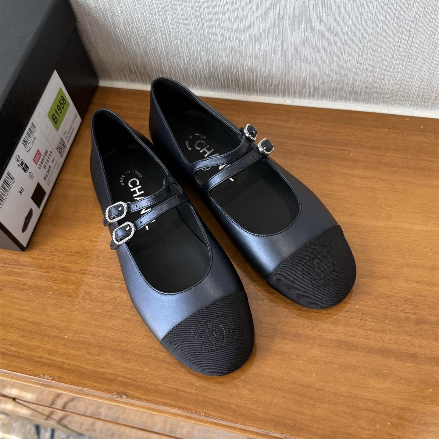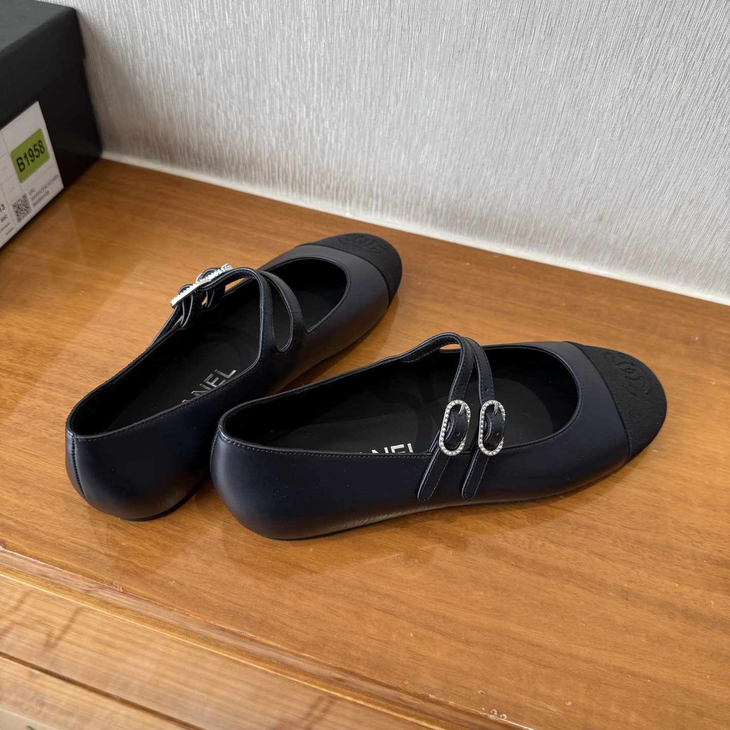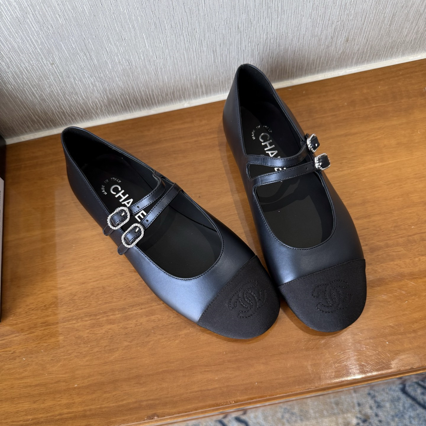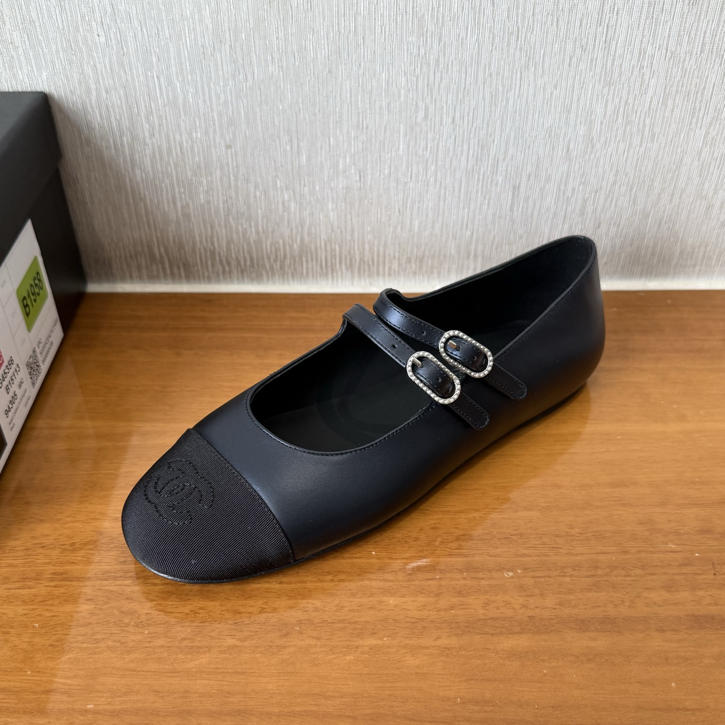 高仿Chanel*G45698圓頭塔扣平底鞋黑色免檢版