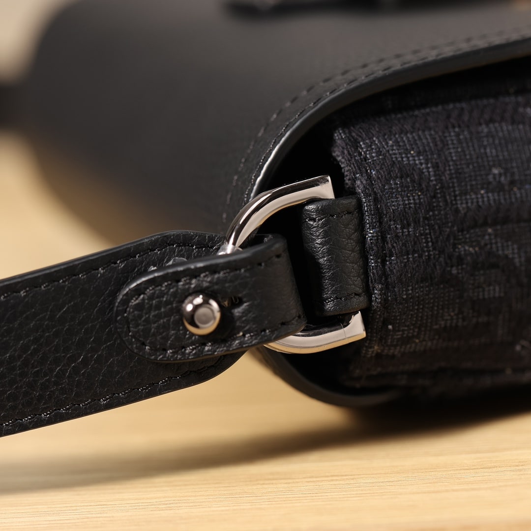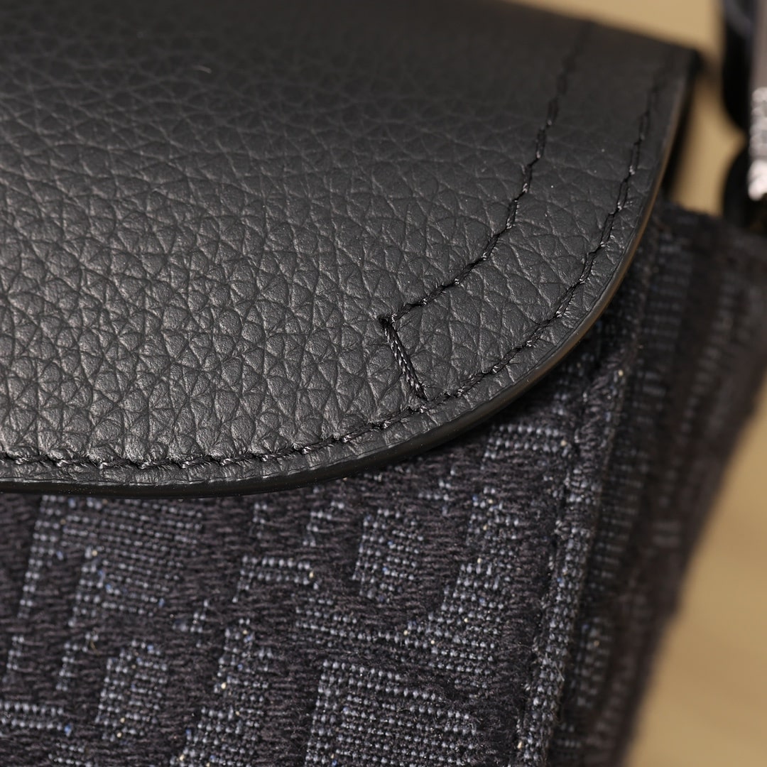 高仿Dior推出一款以皮革與黑色Oblique印花結合所打造的單肩包款,外觀的設計具有馬鞍包款和郵差包的元素,黑色小牛皮革與帆布之間的配合形成了一種經典鑄造.而皮革的裁剪類似於馬鞍包的羊毛,非常適合男士背戴,完全不挑任何穿搭,內置空間可放置各類單品.