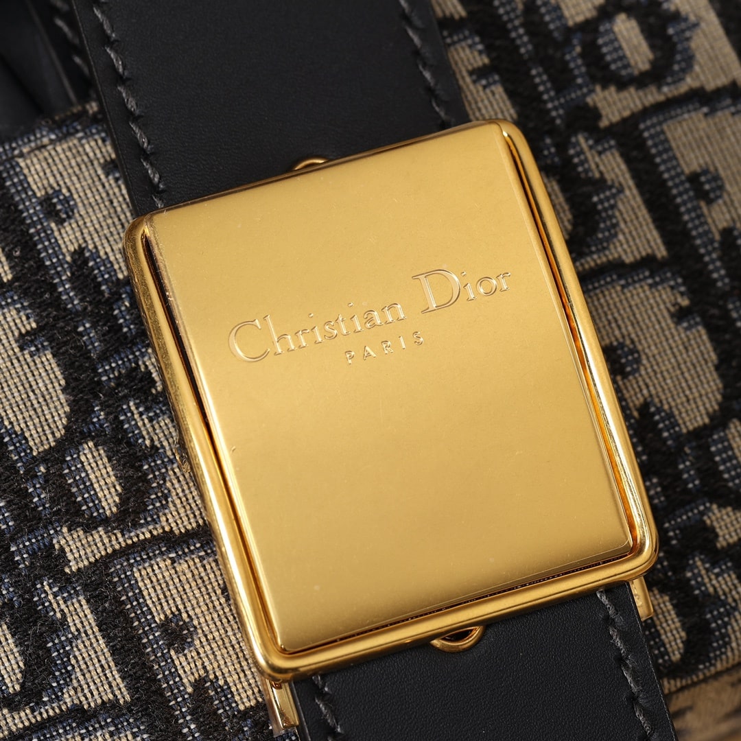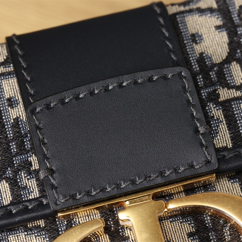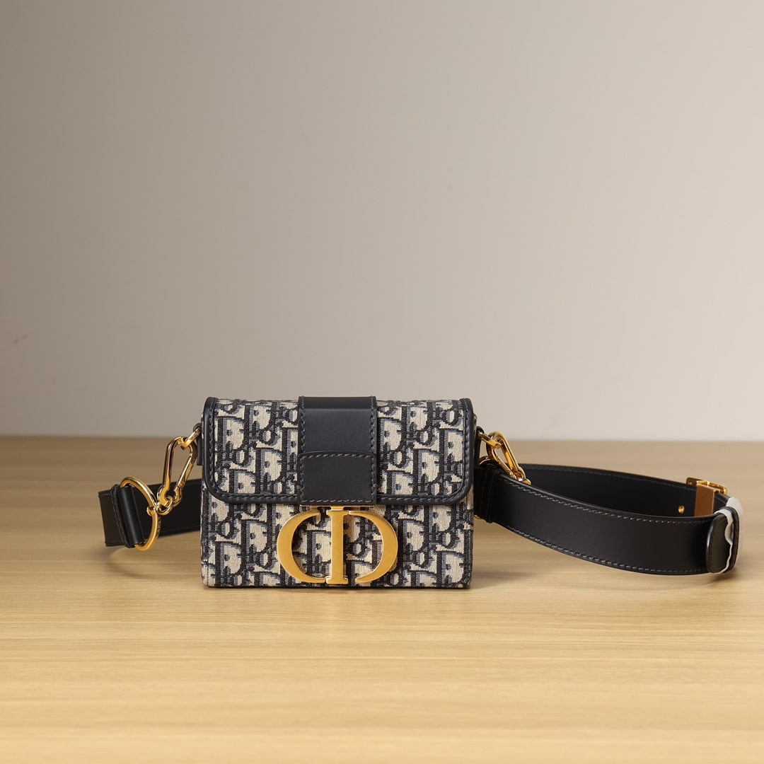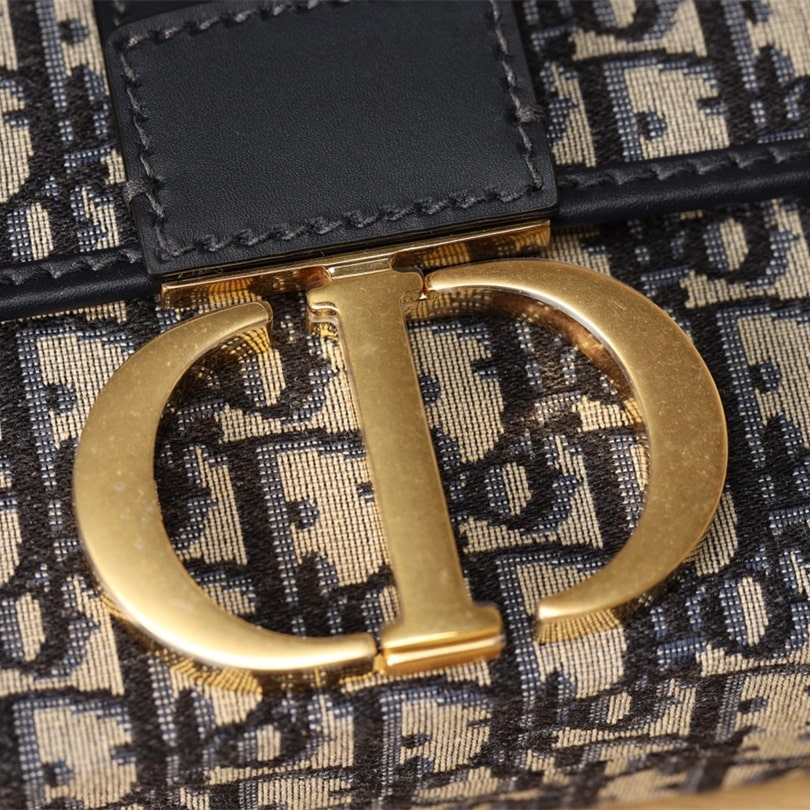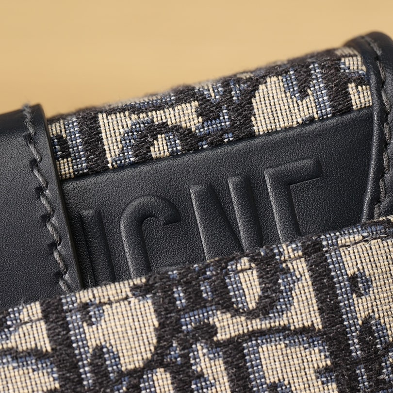 Dior品牌的標誌性風格.這款精巧的手袋採用藍色提花Oblique印花精心裝飾,打造優雅時尚的造型.翻蓋飾以復古金色飾面金屬“CD”扣環,源自ChristianDior香水瓶的封口.