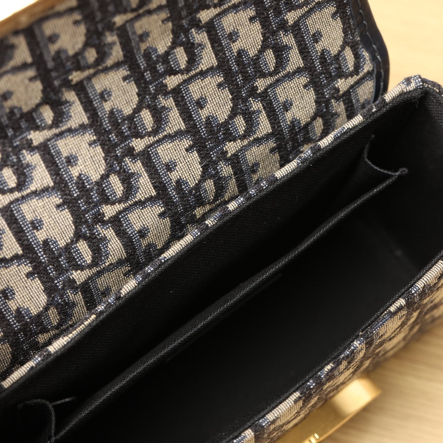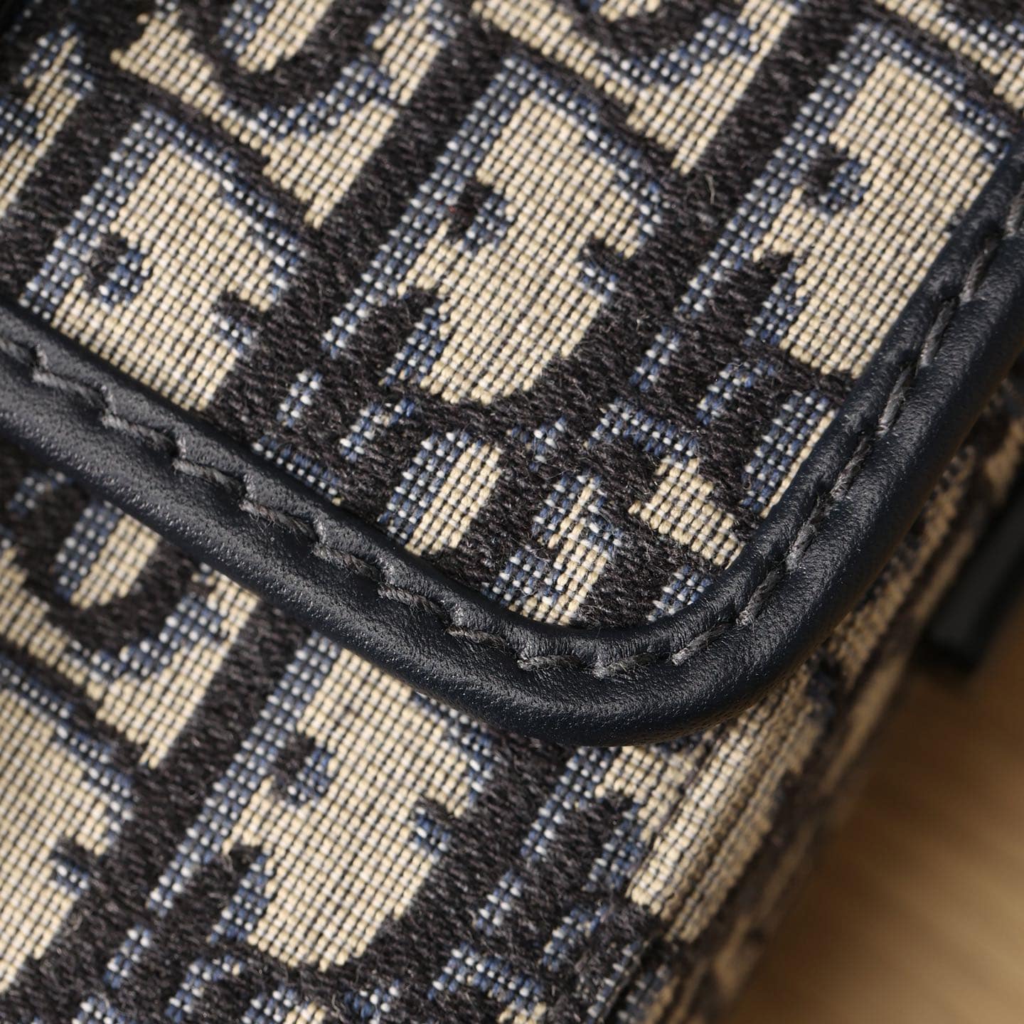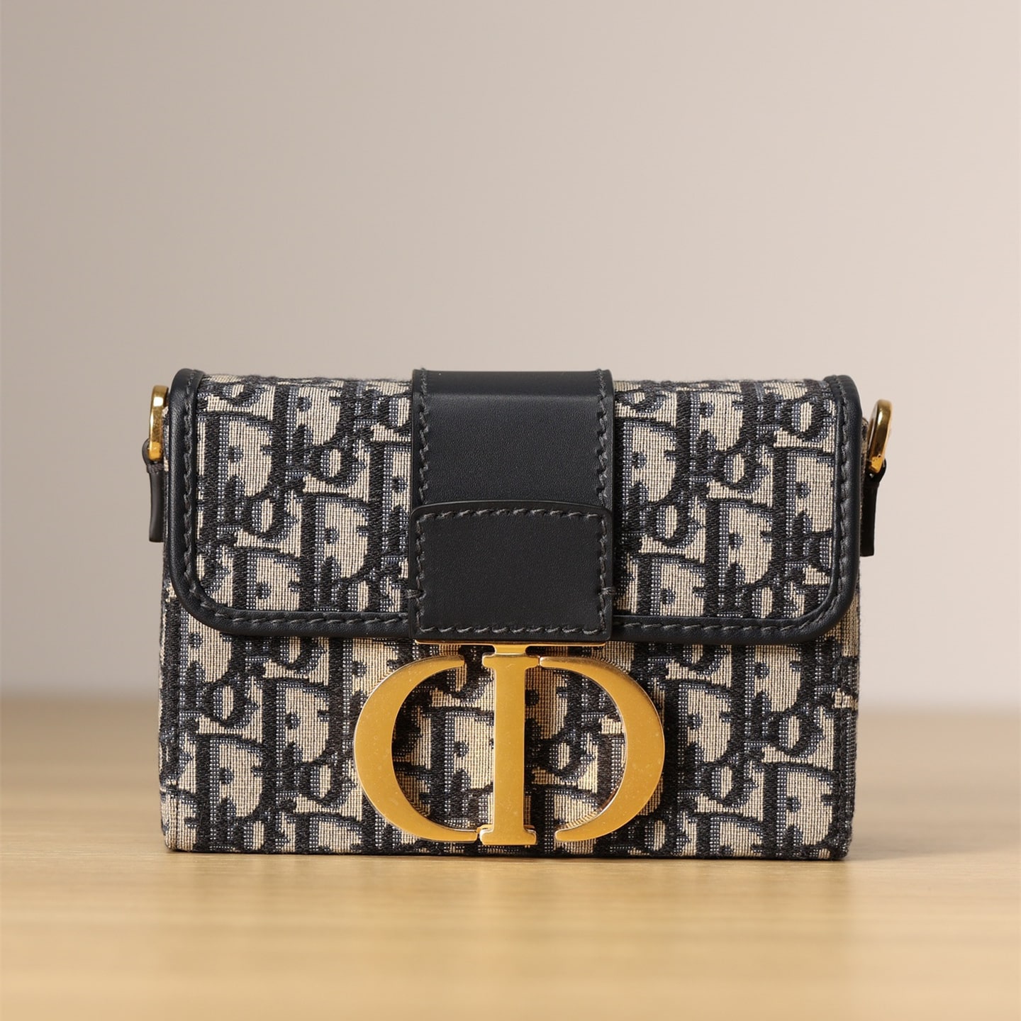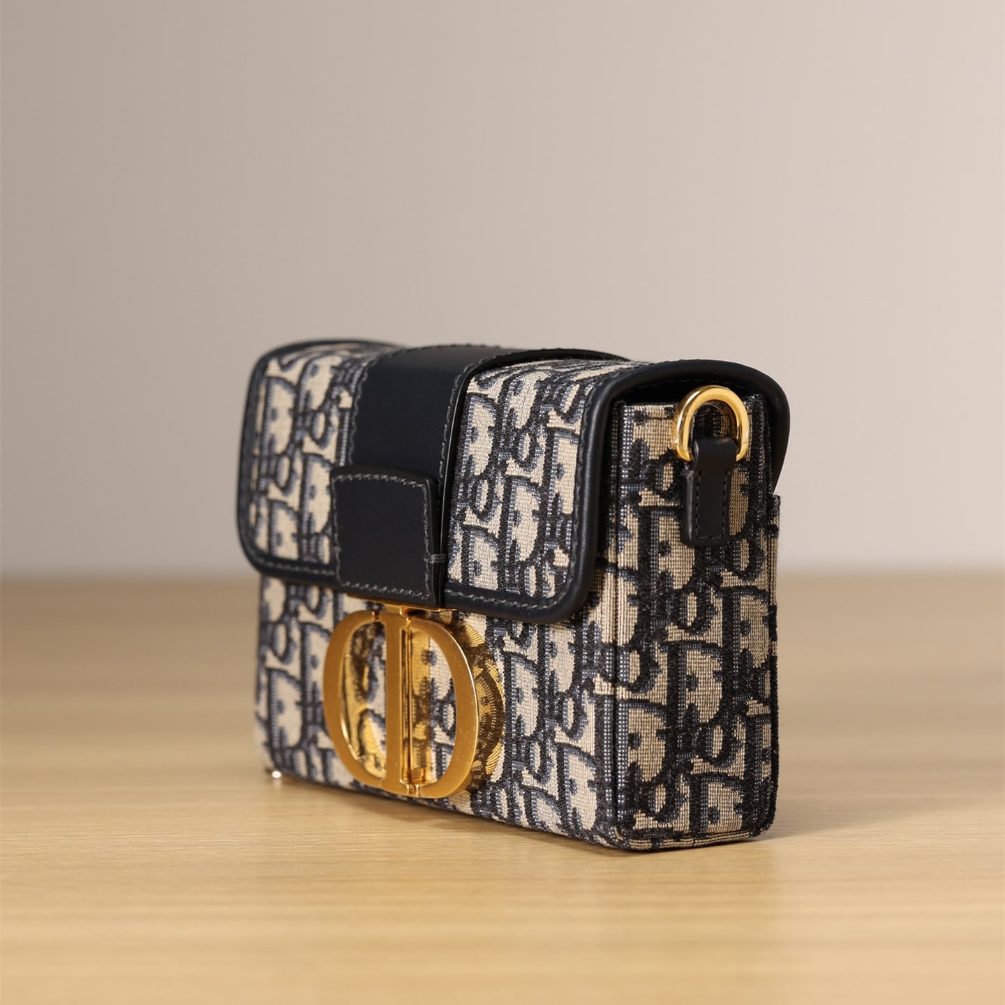Dior品牌的標誌性風格.這款精巧的手袋採用藍色提花Oblique印花精心裝飾,打造優雅時尚的造型.翻蓋飾以復古金色飾面金屬“CD”扣環,源自ChristianDior香水瓶的封口.