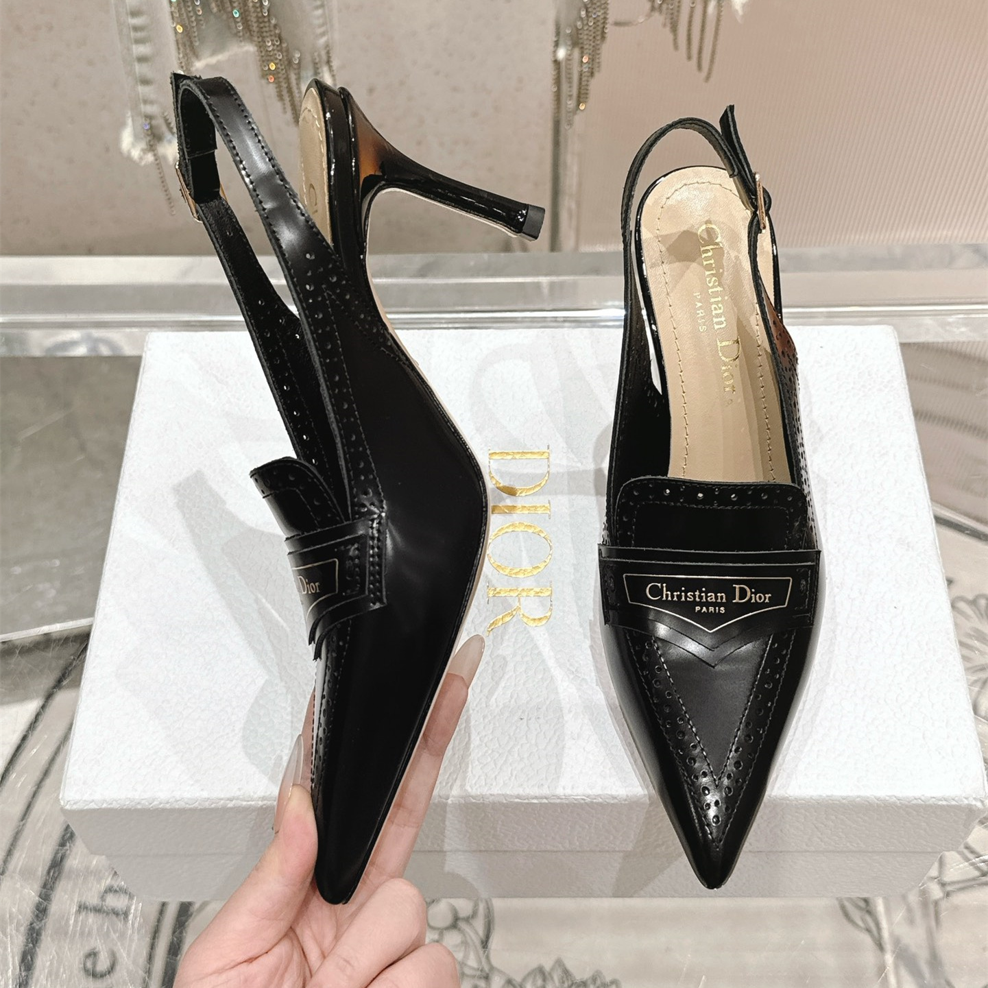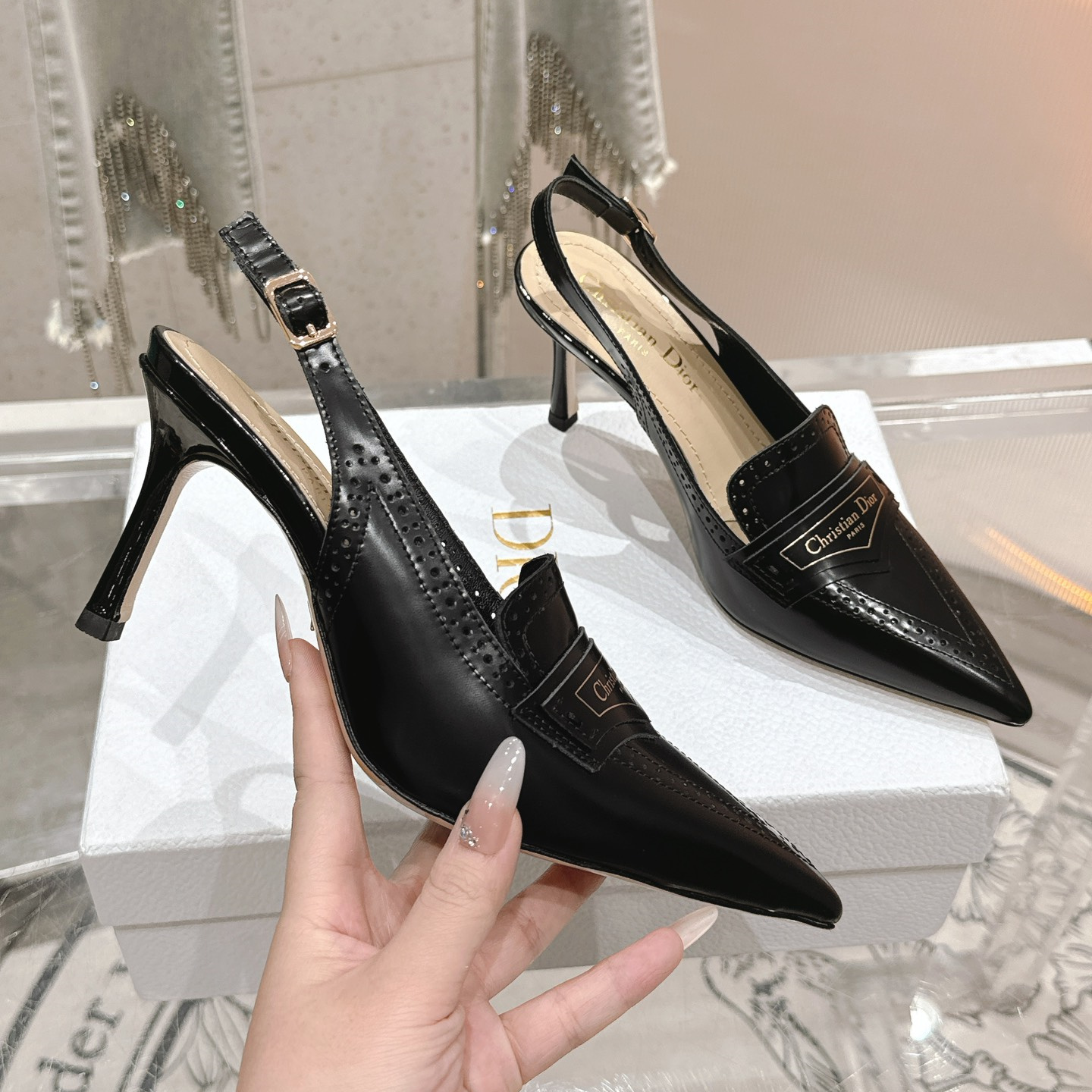 高仿Dior*Boy系列KCV180走秀款尖頭高踭單鞋8CM黑色免檢版