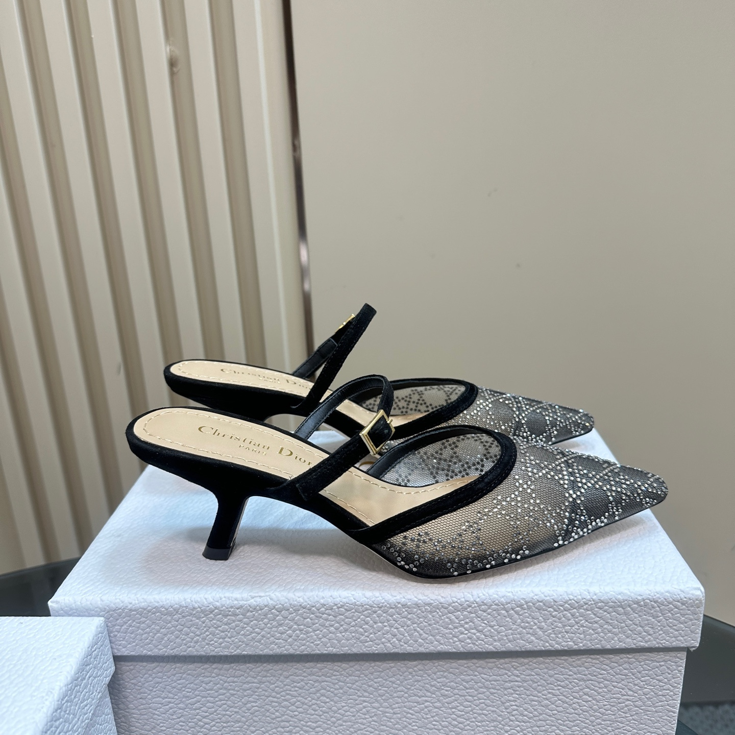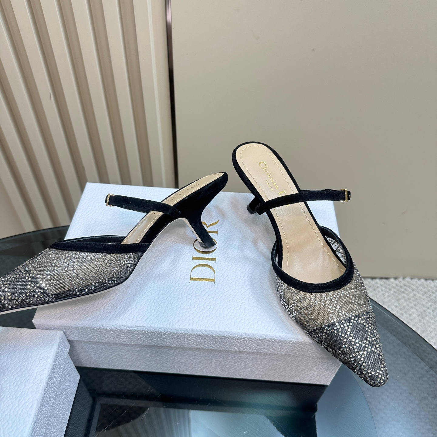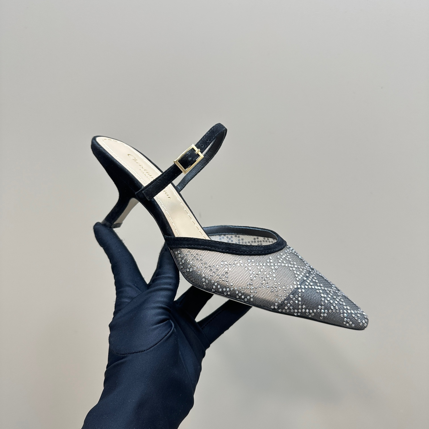 高仿Dior*Capture系列KCV300尖頭塔扣高踭鞋6.5CM黑色免檢版