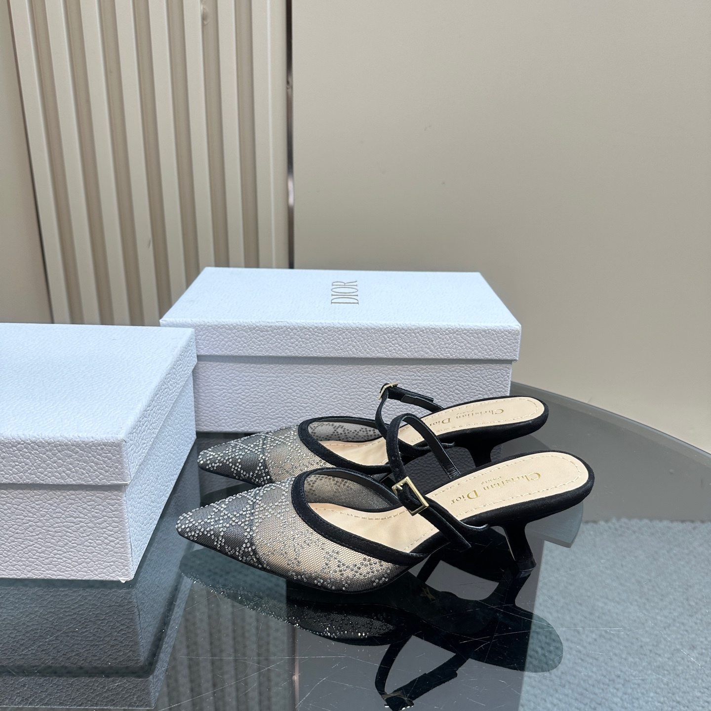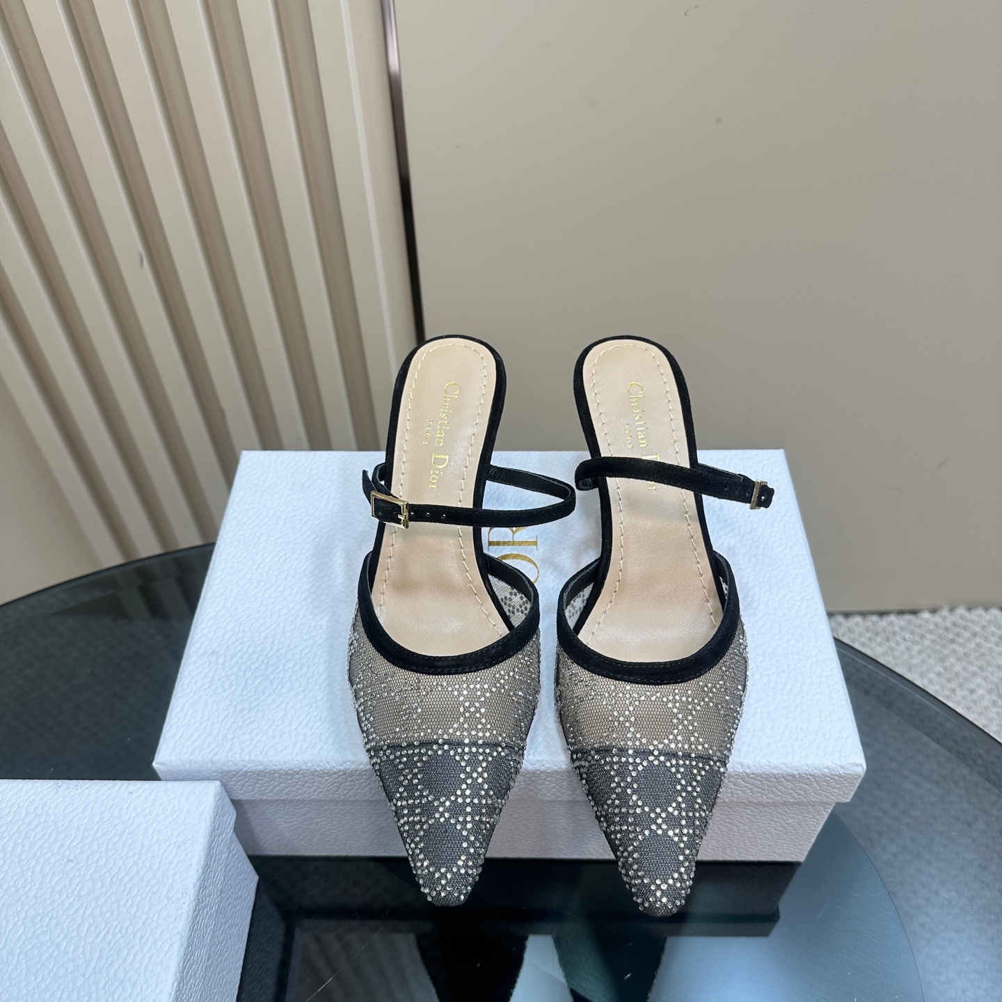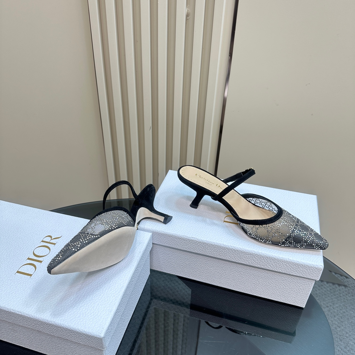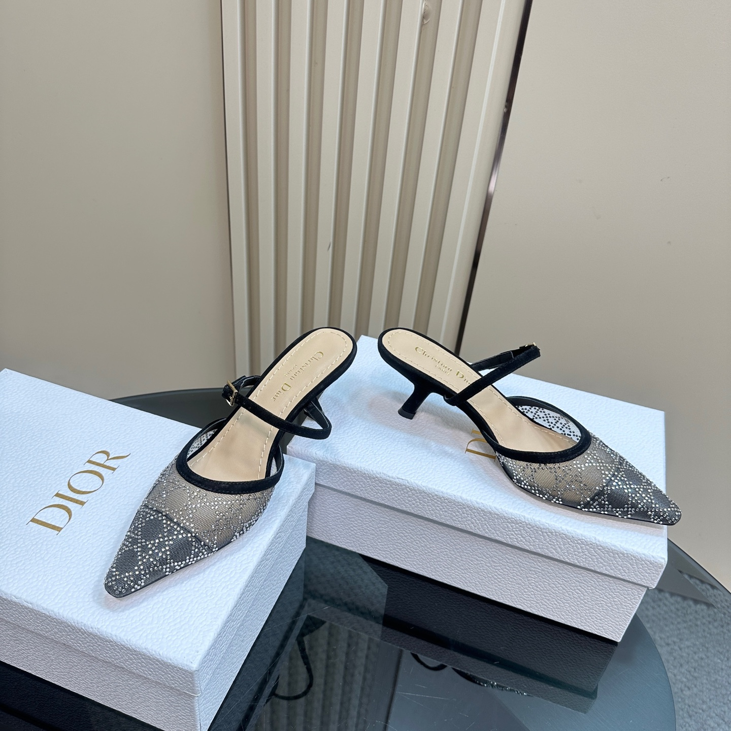 高仿Dior*Capture系列KCV300尖頭塔扣高踭鞋6.5CM黑色免檢版