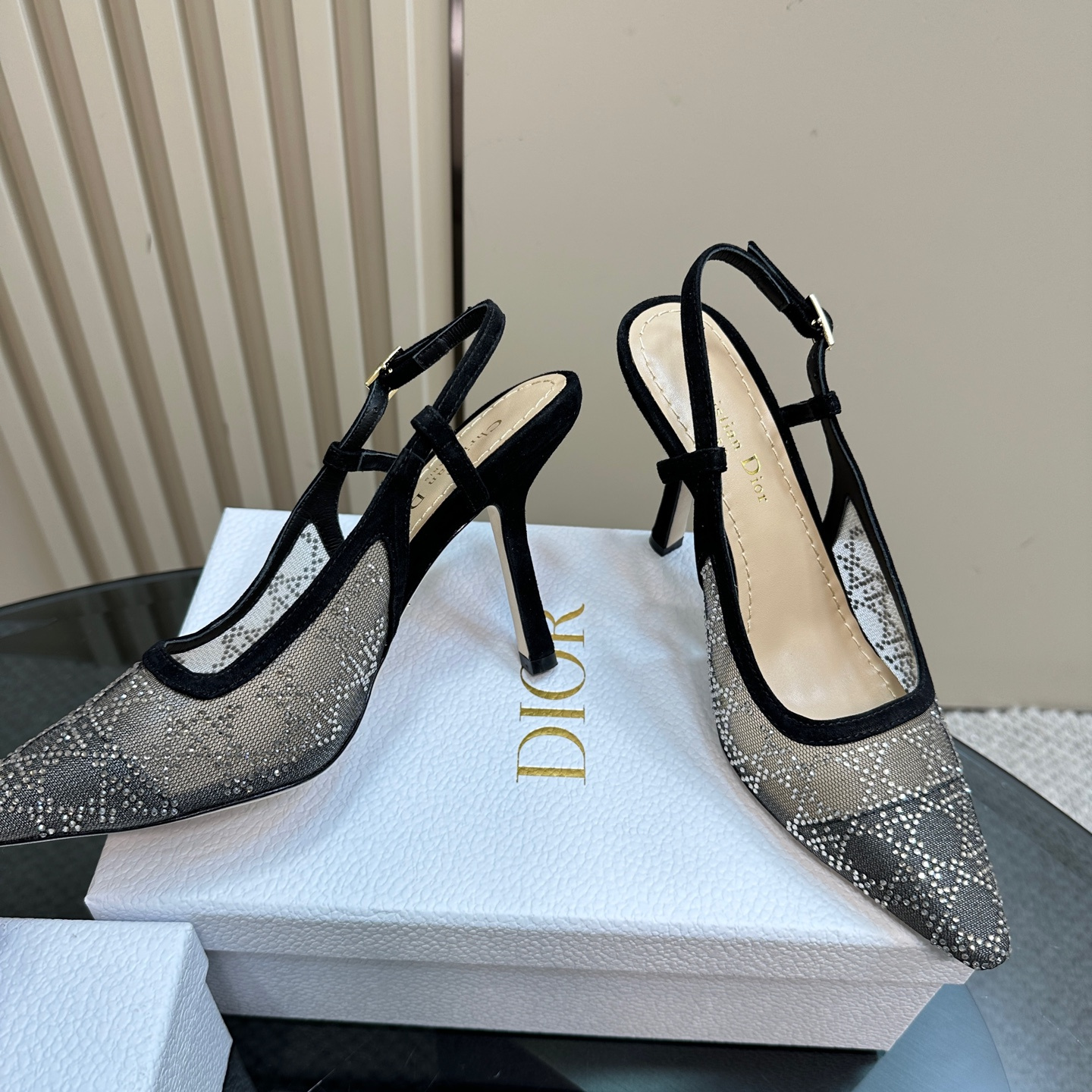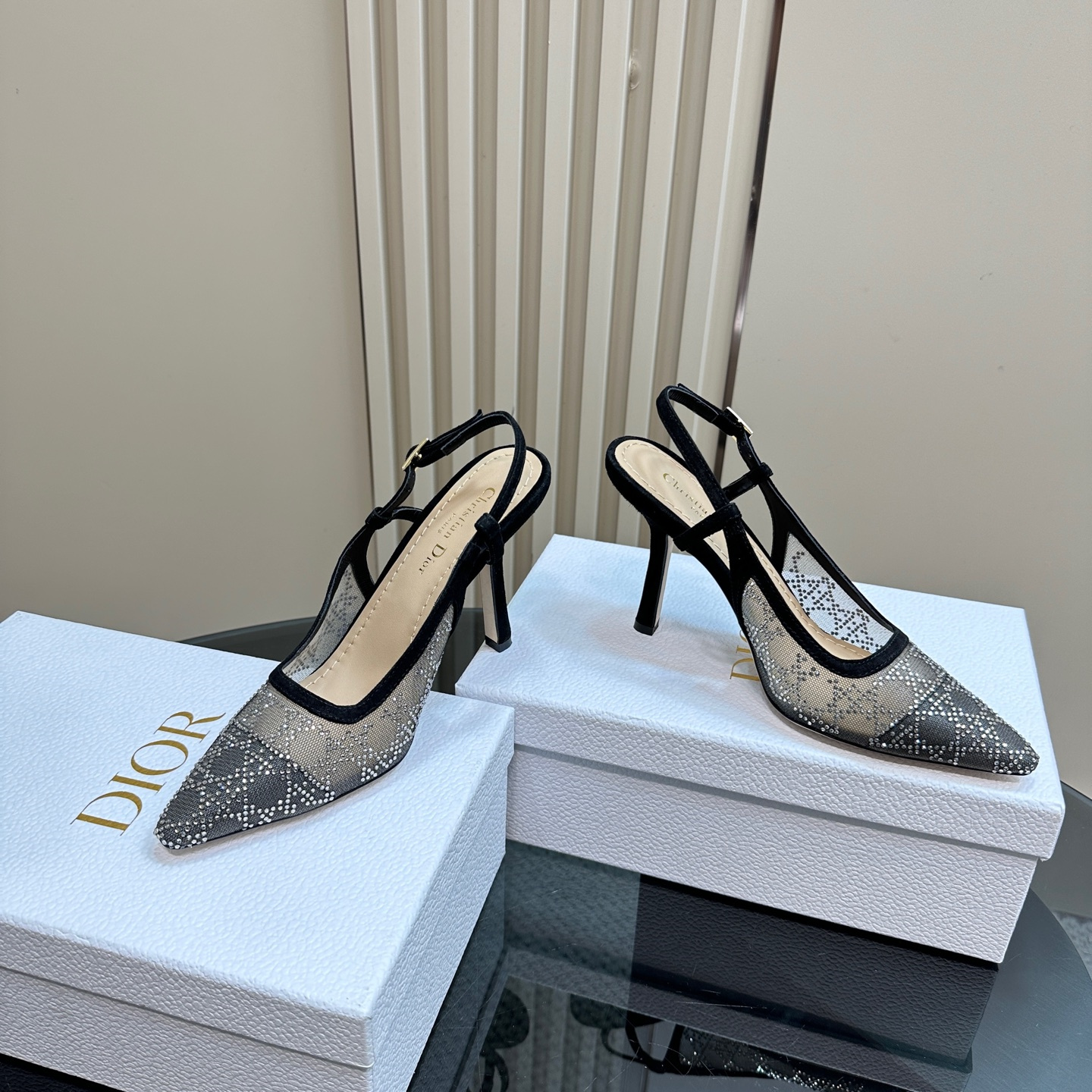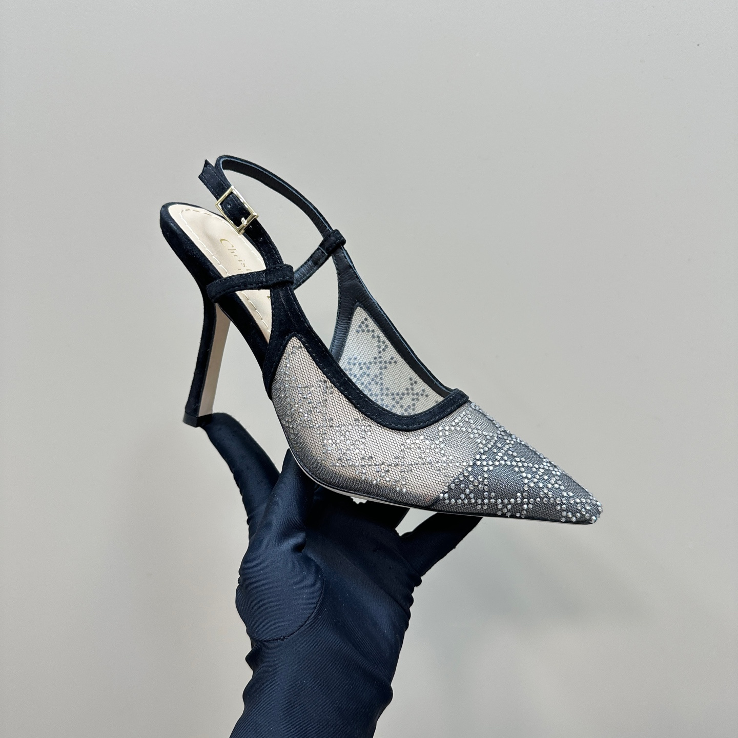 高仿Dior*Capture系列KCV303網鑽細高踭鞋10CM黑色免檢版