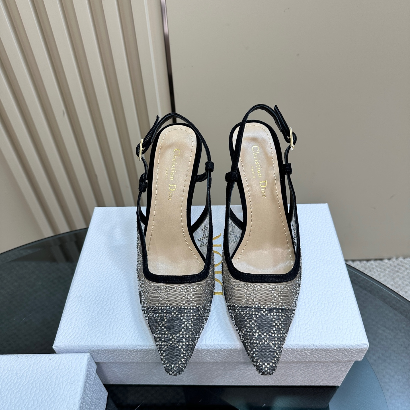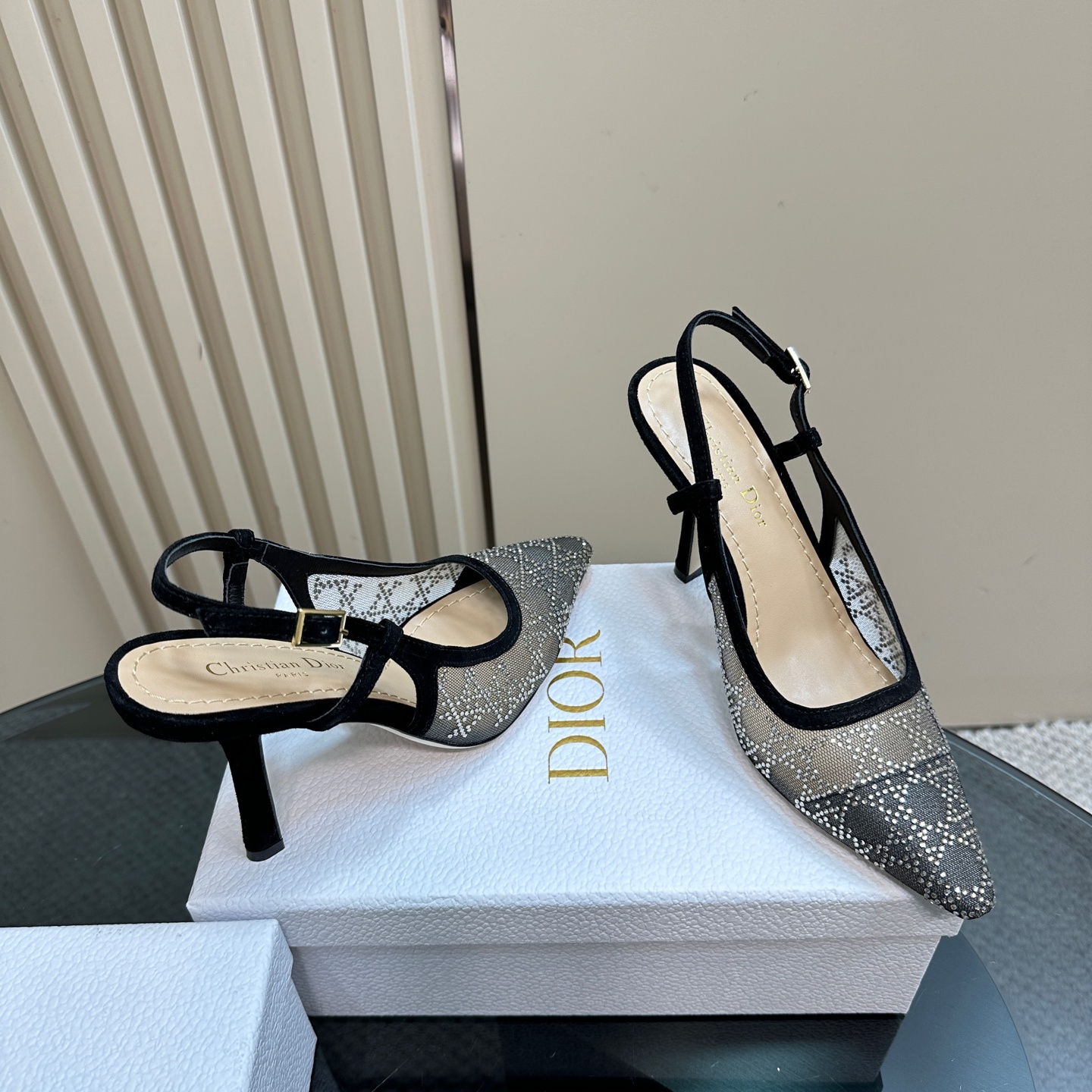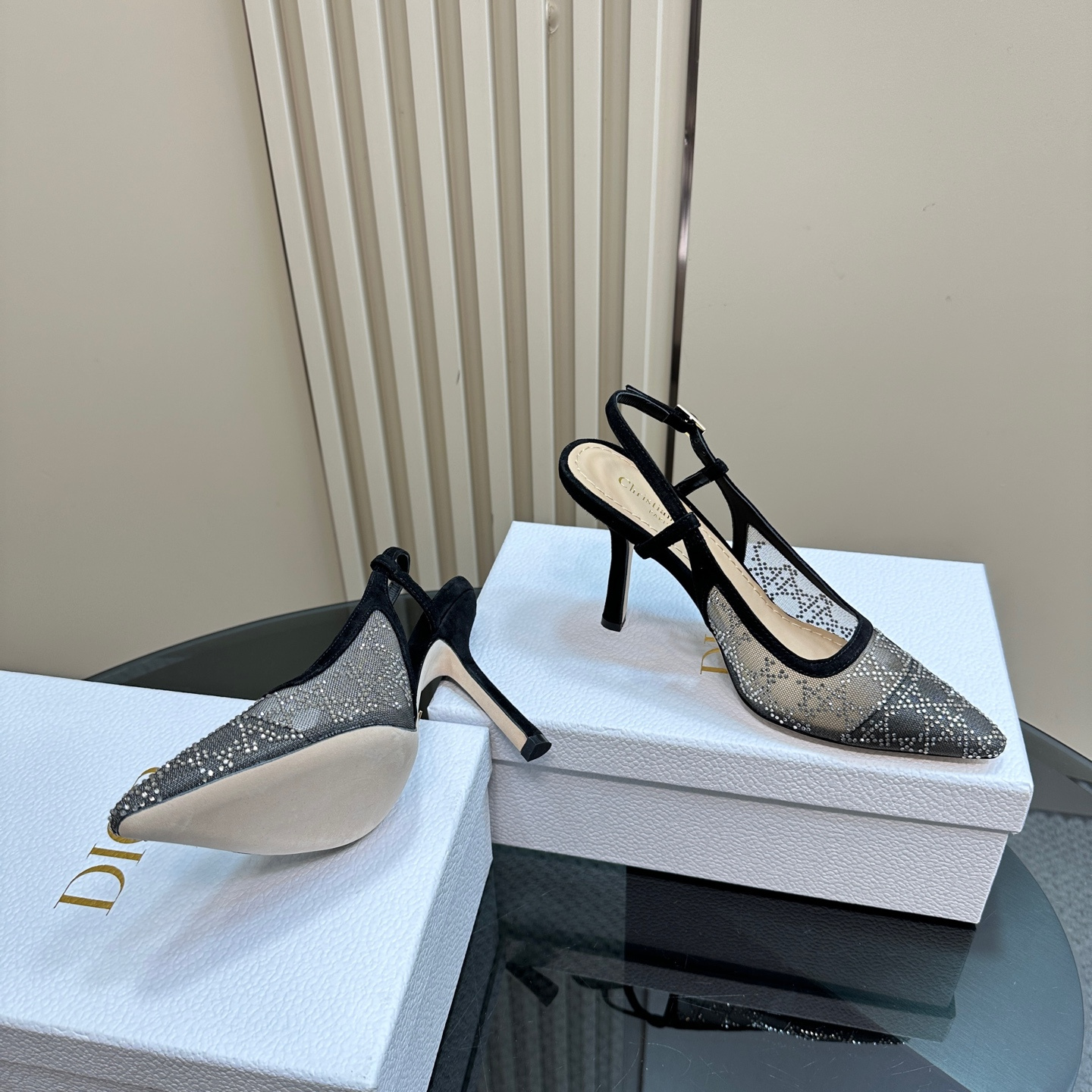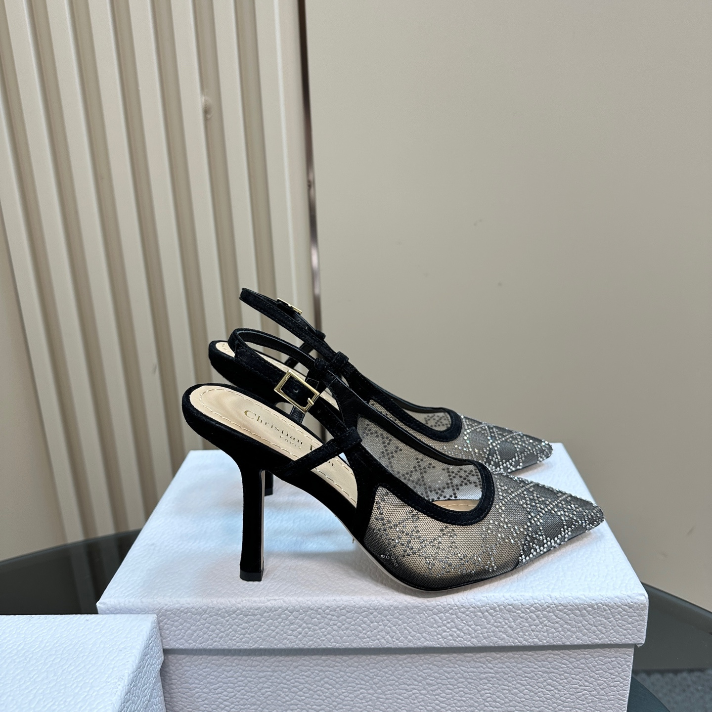 高仿Dior*Capture系列KCV303網鑽細高踭鞋10CM黑色免檢版