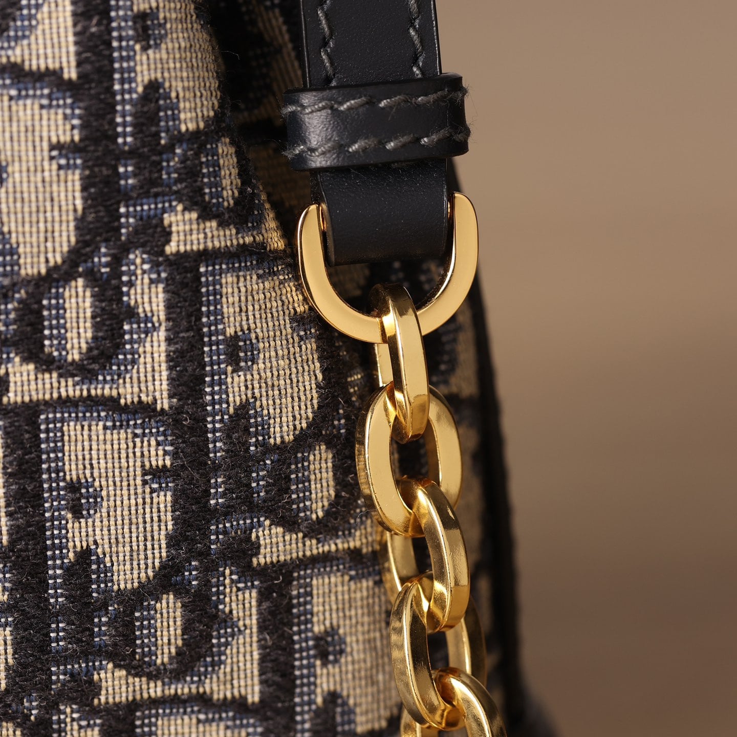 高仿版本是復刻了2023年官方推出的秋季新款,材質部分是使用到Oblique印花帆布,與原裝正品是百分百同一種材質.以字面D為LOGO辨識度,協調性與重合角度都堪稱完美極致.配備了手提肩帶與單肩鏈條肩帶,即可實現多用途包款,專屬打造1:1頂級復刻.