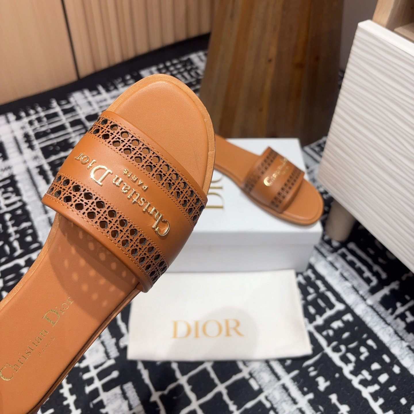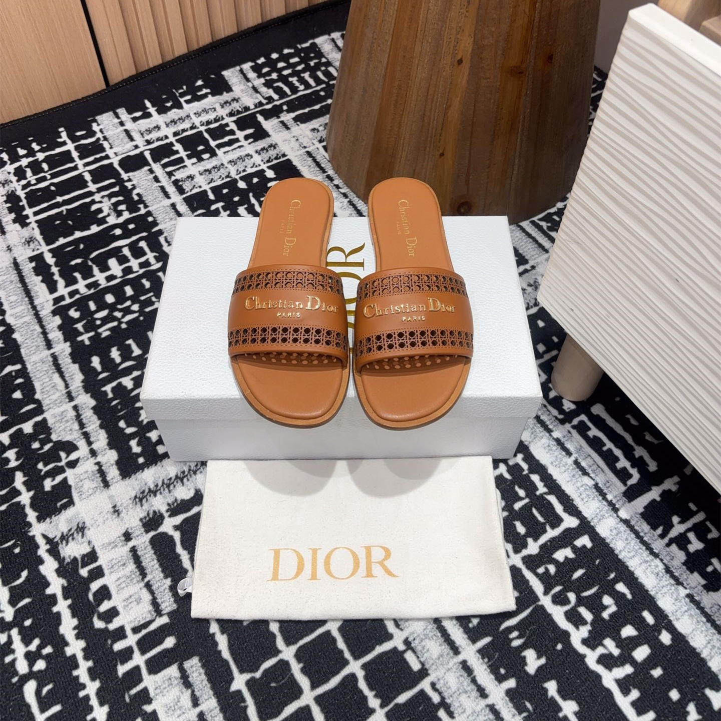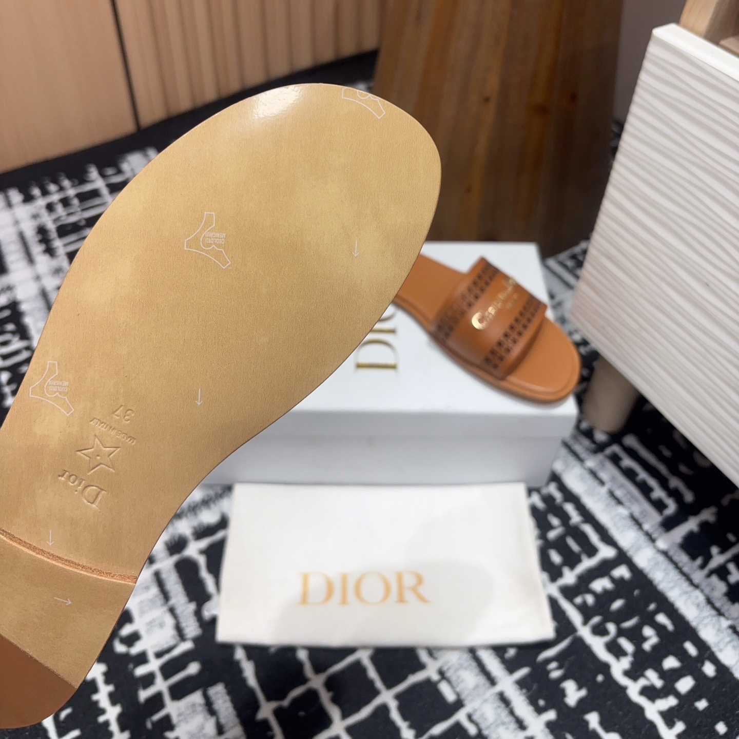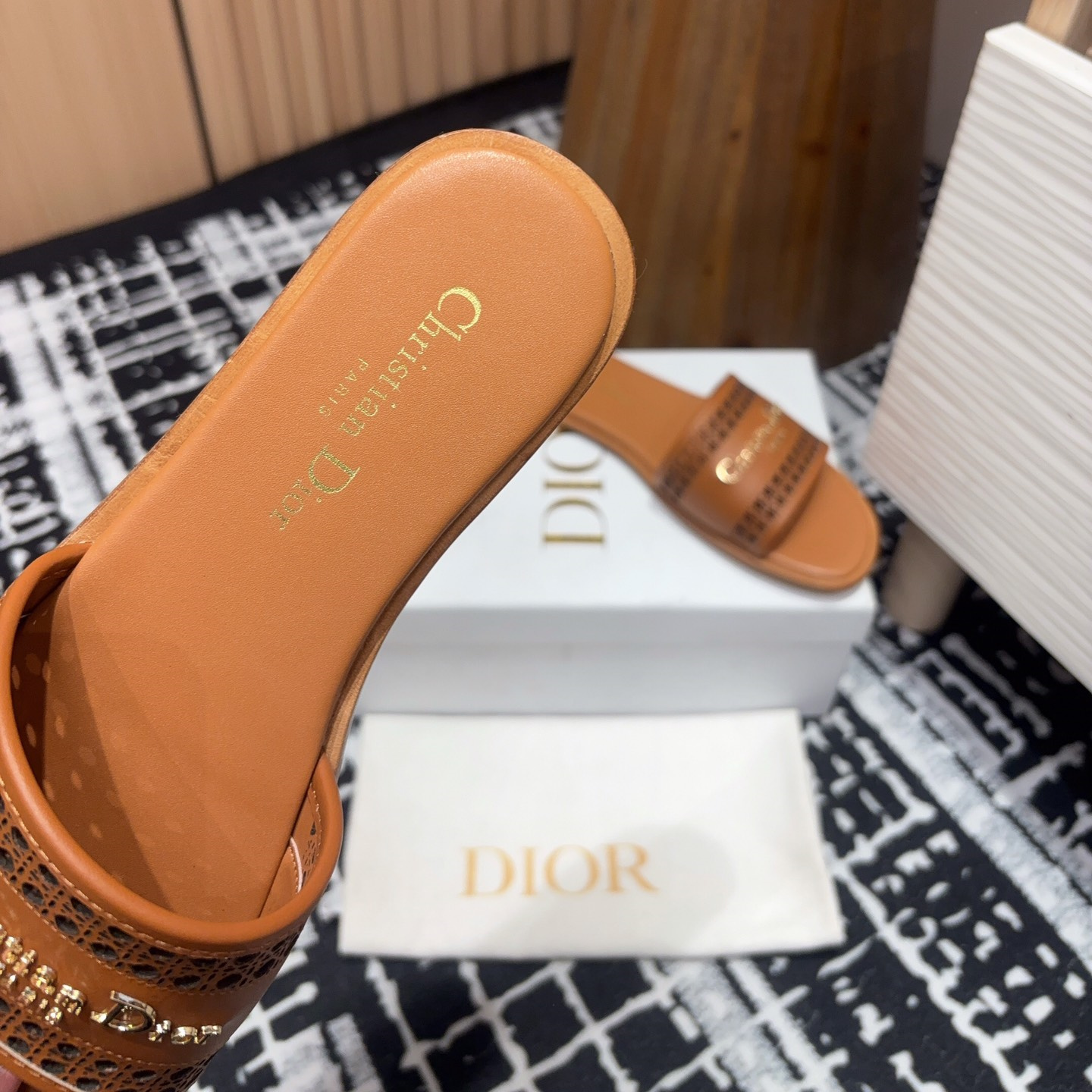 高仿Dior*D-Lane系列KCO157圓頭套腳一字拖鞋棕色免檢版