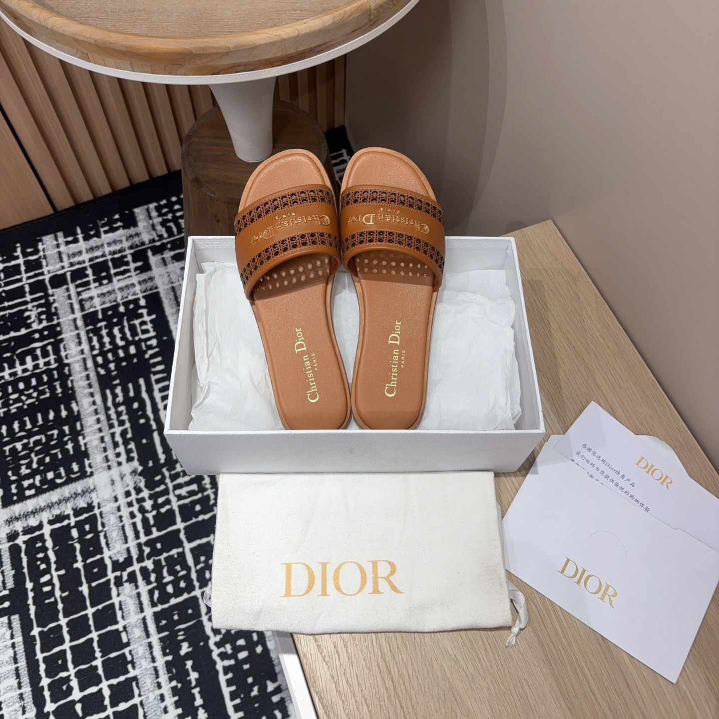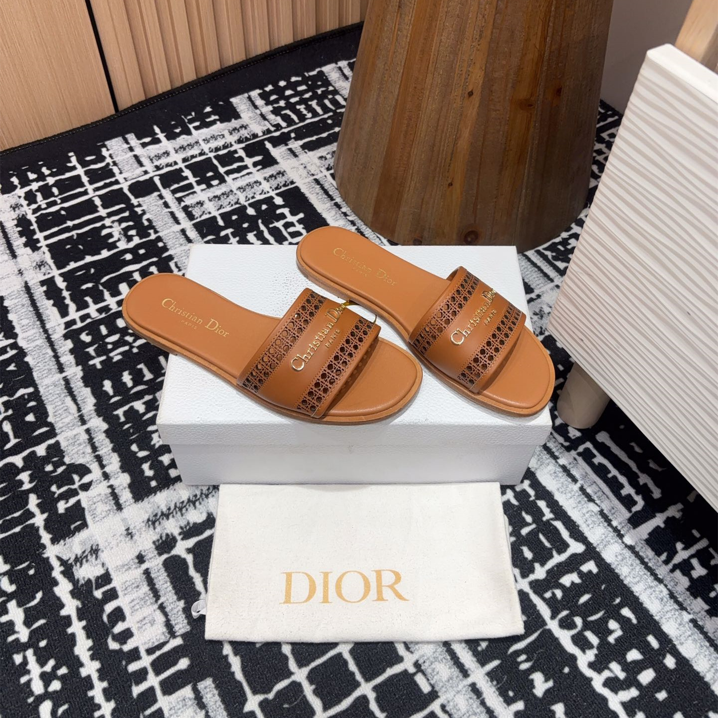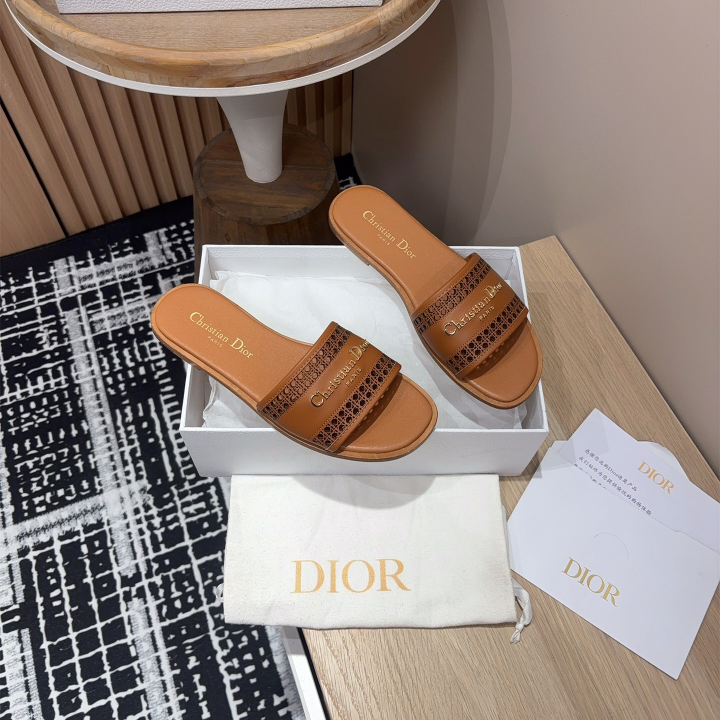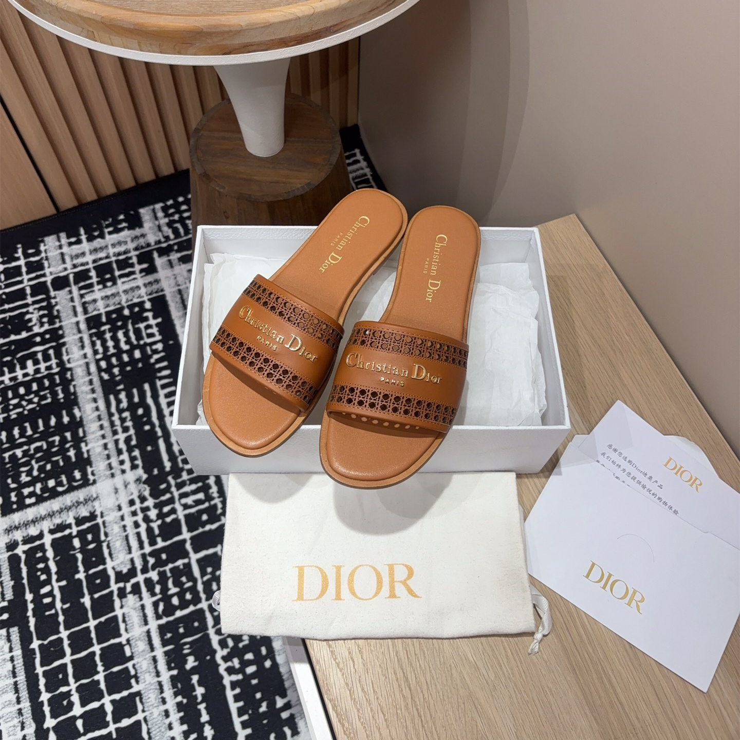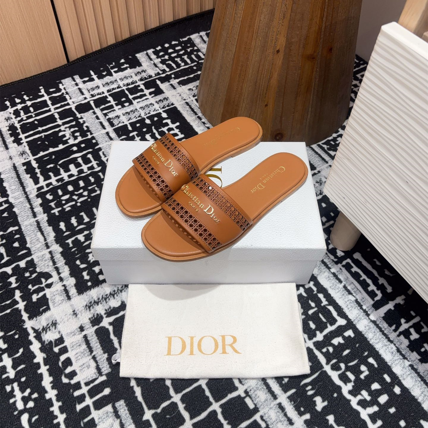 高仿Dior*D-Lane系列KCO157圓頭套腳一字拖鞋棕色免檢版