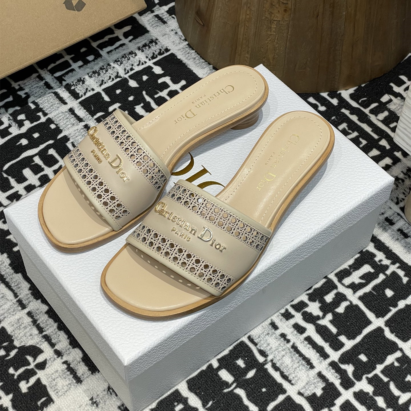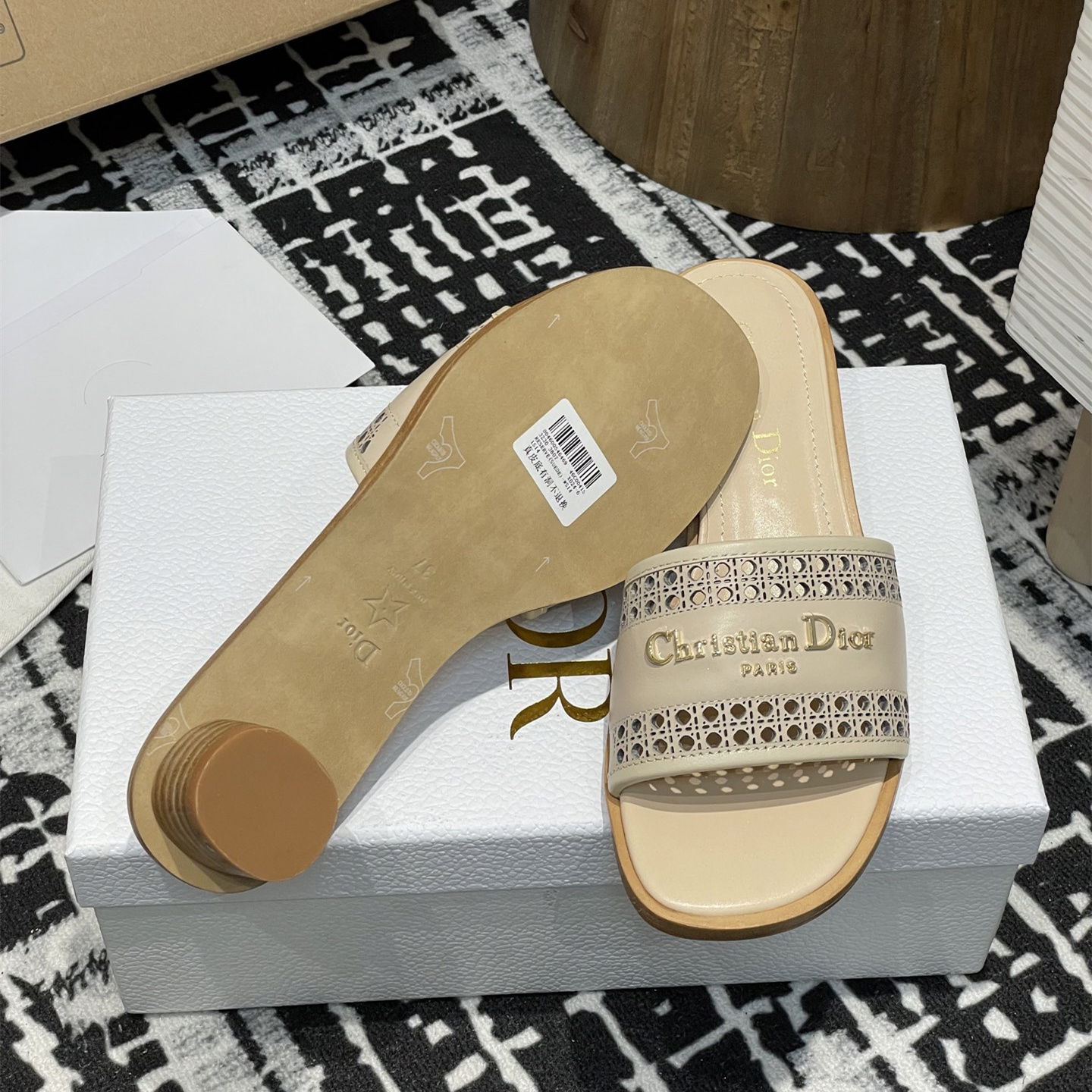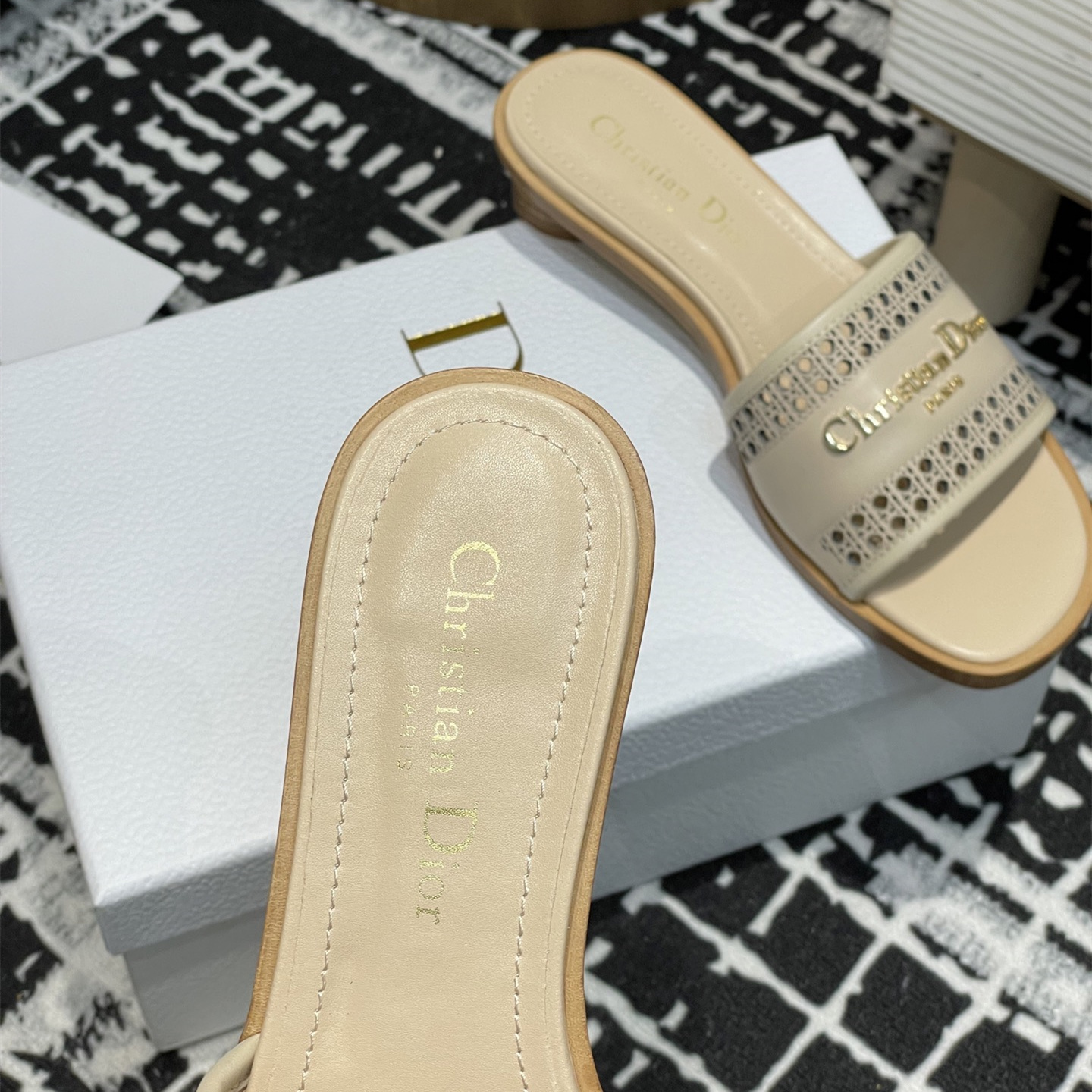 2025春夏新款高仿Dior D-Lane涼拖小圓跟一字鏤空拖鞋