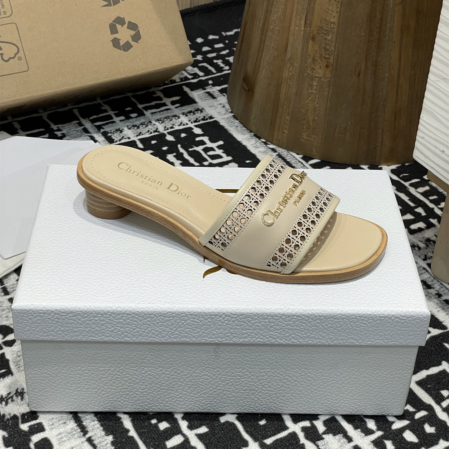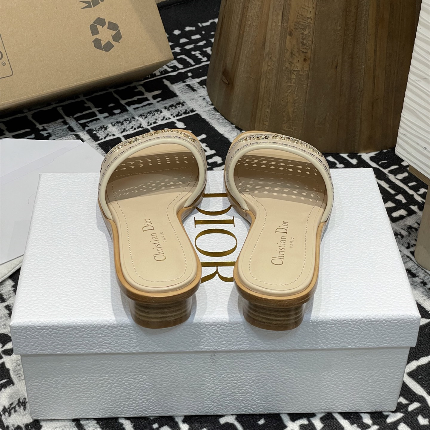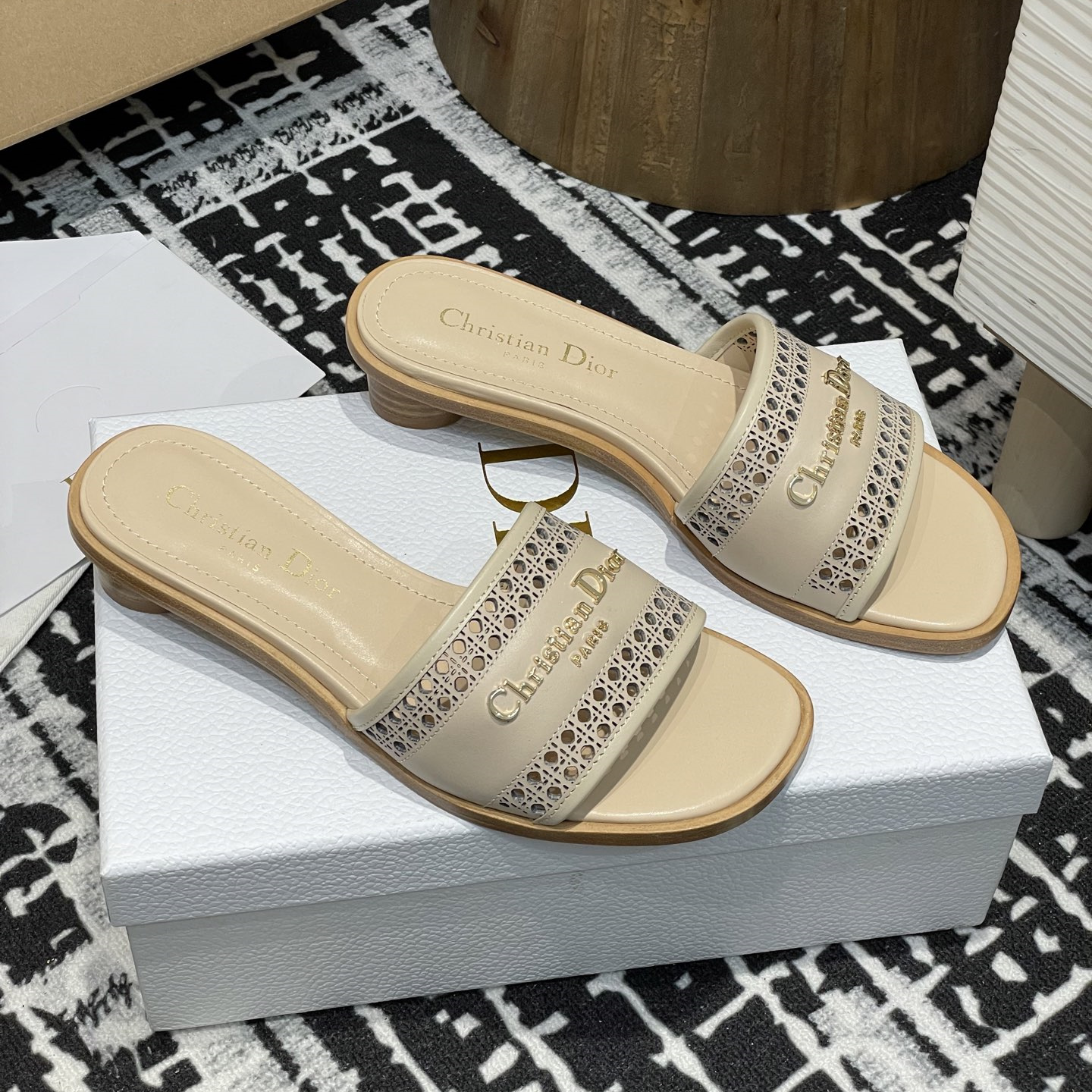 2025春夏新款高仿Dior D-Lane涼拖小圓跟一字鏤空拖鞋