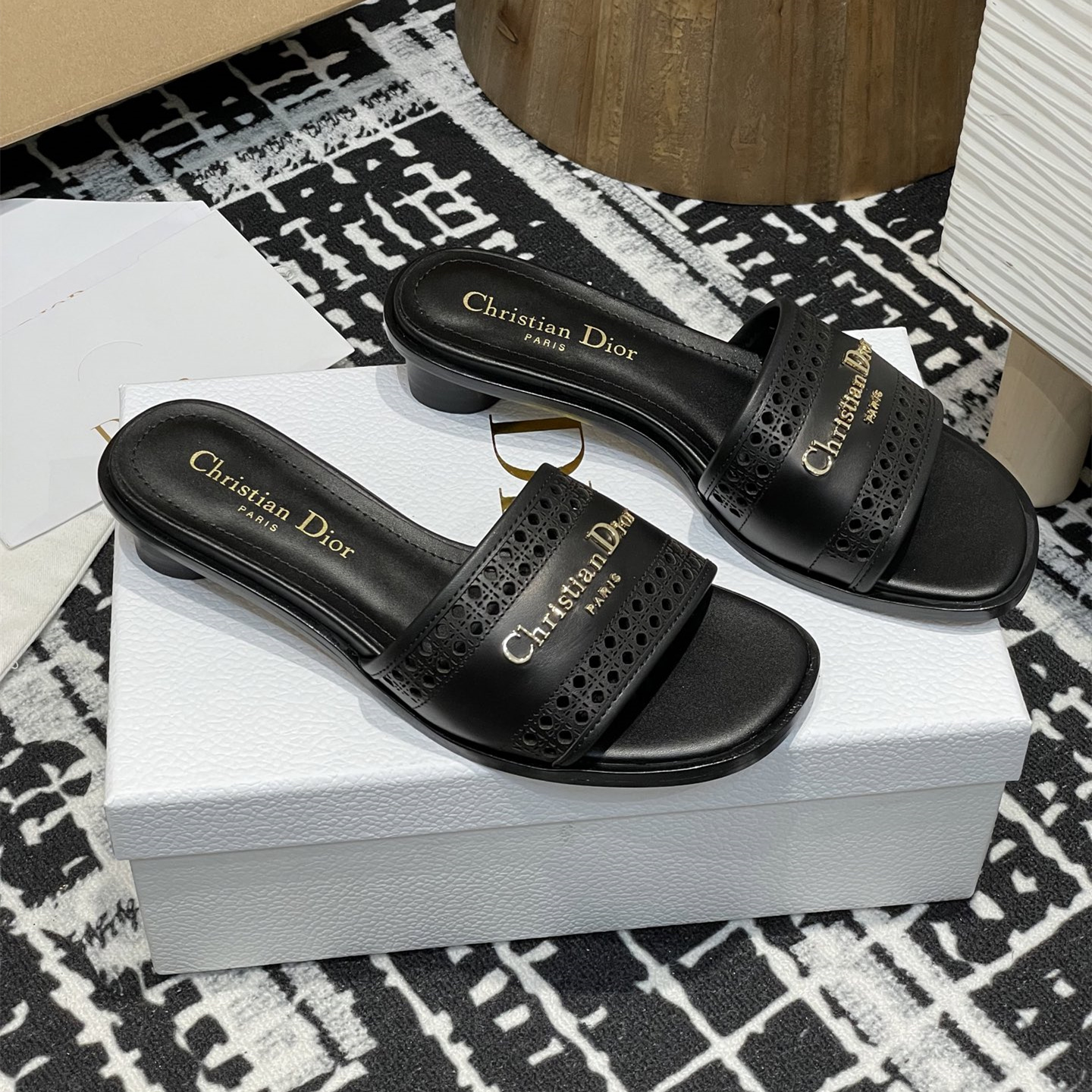 2025春夏新款高仿Dior D-Lane涼拖小圓跟一字鏤空拖鞋