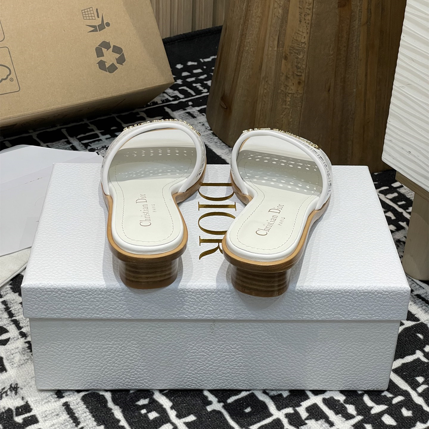 高仿Dior*D-Lane系列KCO207圓頭套腳拖鞋短踭白色免檢版
