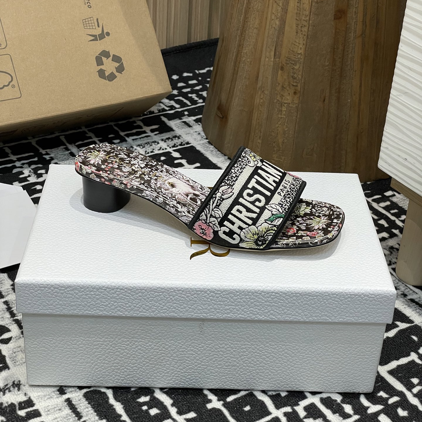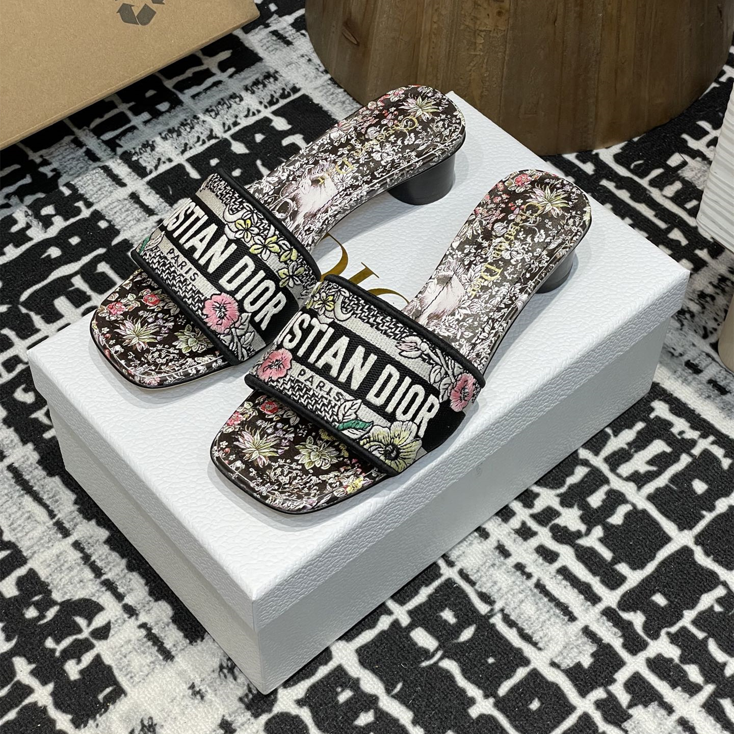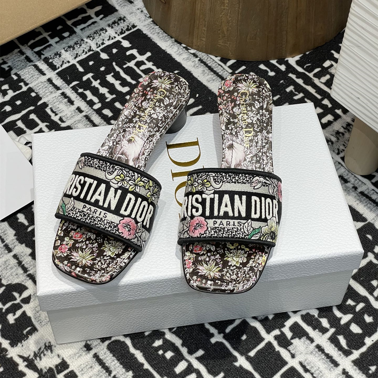 高仿Dior2025夏季新款Dway系列粗跟電繡一字涼拖鞋最新配色.這款Dway帶跟涼拖是一款歷久彌新的經典單品,飾以彼得羅·魯福(Pietro