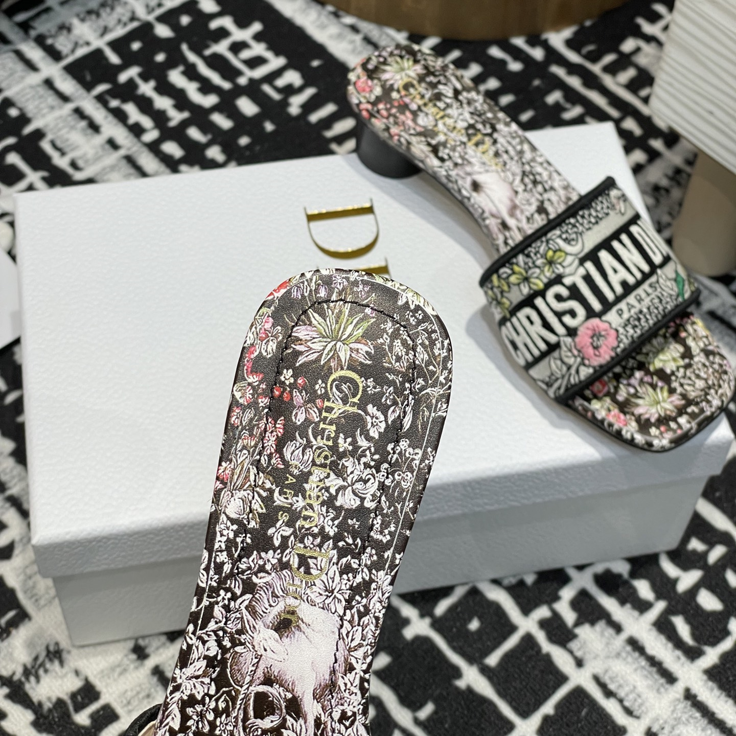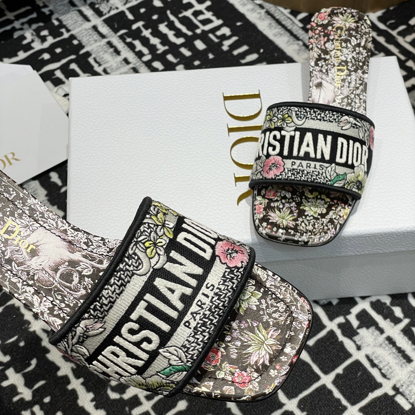 Ruffo)設計的白色底色多色Papillon茹伊印花,以優雅而夢幻的設計演繹精致的蝴蝶和花卉圖案.棉質鞋面,飾以Christian Dior