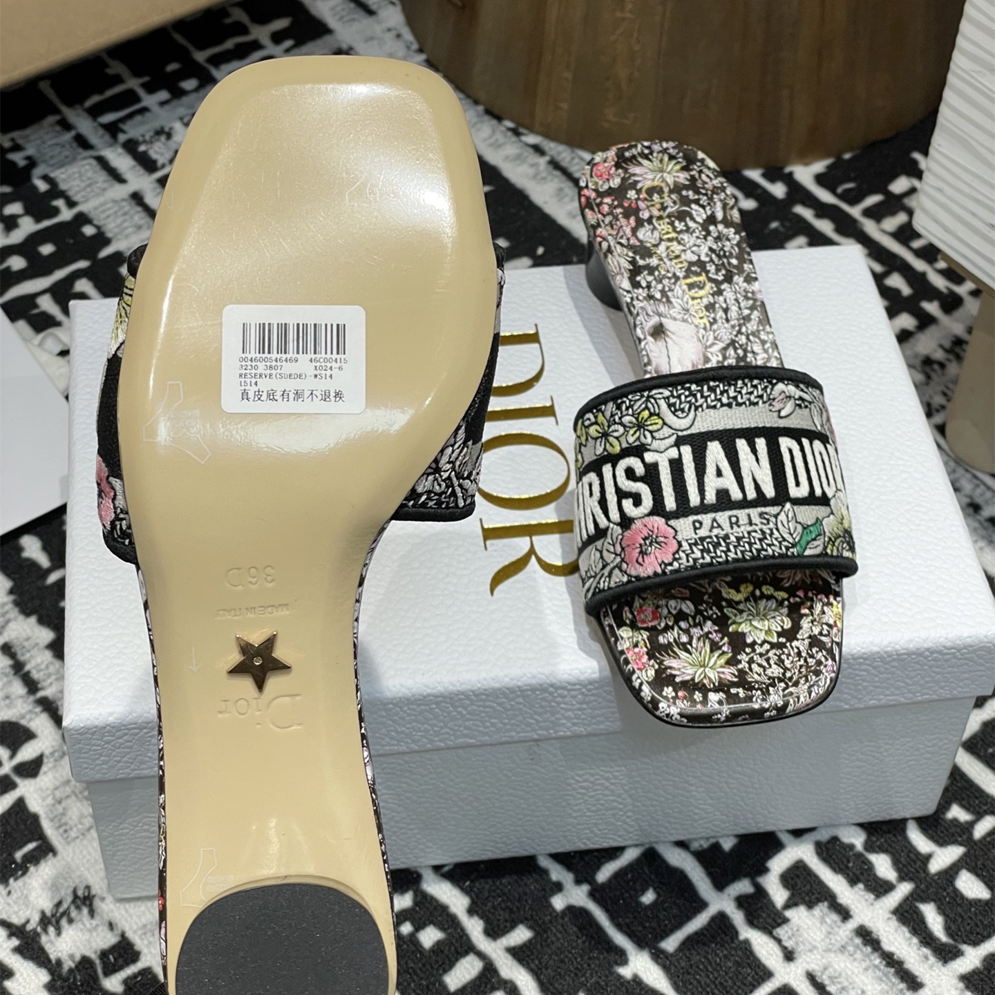 Paris標誌刺繡Papillon茹伊印花皮革內底牛皮革鞋底鐫刻有Christian Dior的幸運星符號意大利製造.